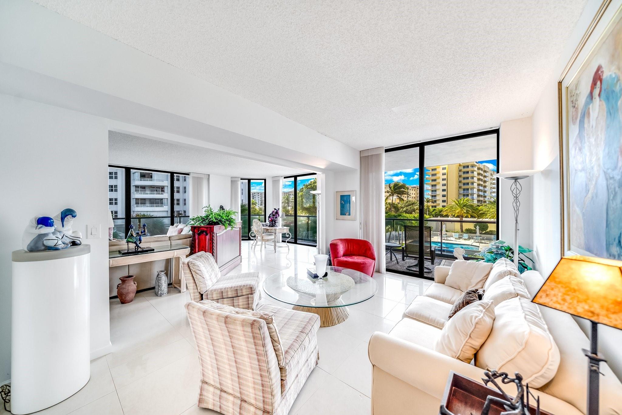 This large 3-bedroom, 3-bath corner unit condo offers almost 3200 sq ft of living including a wraparound balcony with glass railings and two patios for outdoor living. Great ocean and pool views. The unit features a split floorplan, formal dining room, granite counters, stainless steel appliances, foyer entry, laundry room, 9-ft. tall ceilings, walk-in closets, extra storage and hurricane impact glass. The third bedroom currently being used as a den. The Criterion is a boutique building only 46 units with top-notch amenities, including a fitness center, party room with bar and dance floor, billiards, sauna, private conference room, garage parking, and guest parking. Small pets okay. 40 year certification complete. Enjoy everything beautiful Pompano Beach has to offer.