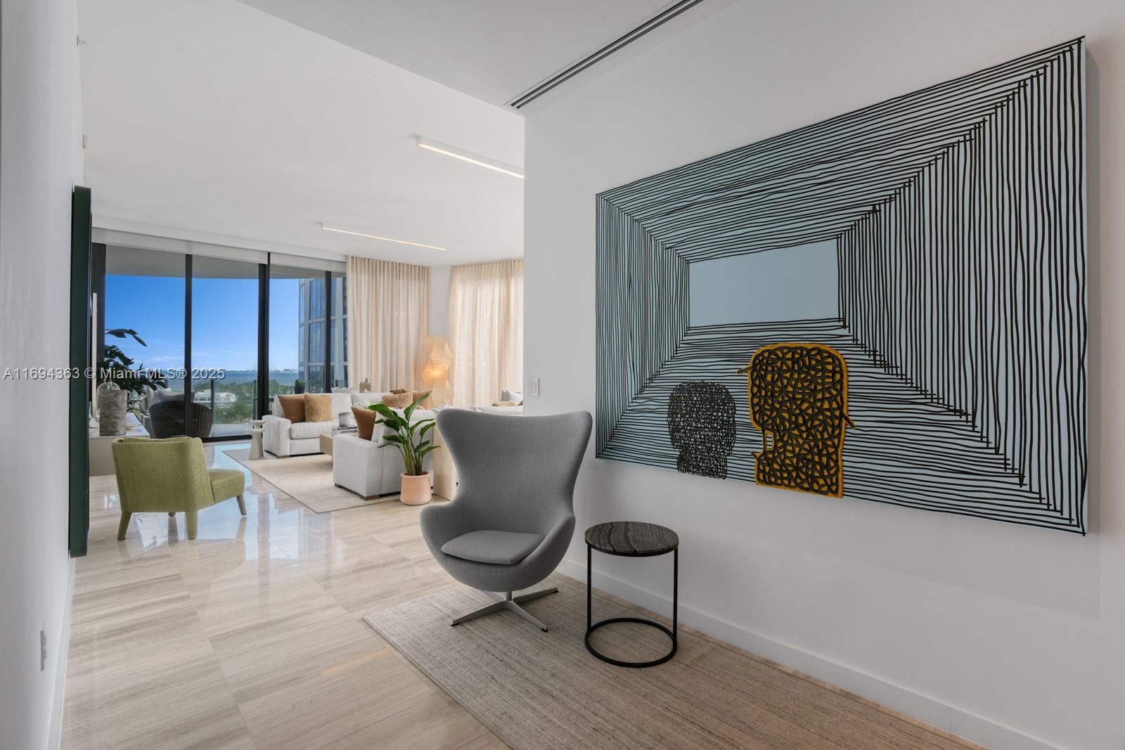 Rarely available A line at the highly coveted Park Grove. Stunning 4bd/4.5ba corner unit offers the pinnacle of elegance w breathtaking upgraded finishes & a priv elevator entry for the utmost exclusivity. Soaring 12' floor-to-ceiling windows, wood paneling, textured walls & oversized terrace to take in the mesmerizing sea views, relax or entertain. Priv office, library, custom closets, elegant window treatments & Lutron lighting/shades. Gourmet kitchen w top-of-the-line appliances, leathered marble countertops & wood cabinetry. Unparalleled amenities: concierge, 24-hr valet, state-of-the-art fitness center, signature spa, children's play room. Don't miss this rare opportunity to experience the epitome of luxury living in the heart of Miami's most sought-after neighborhood, Coconut Grove.
