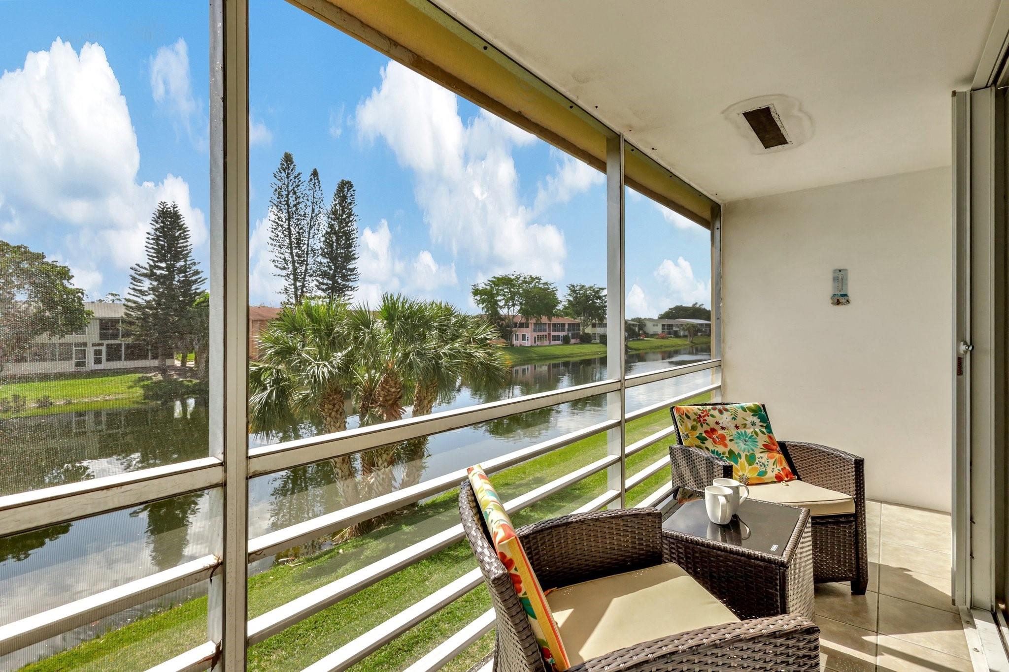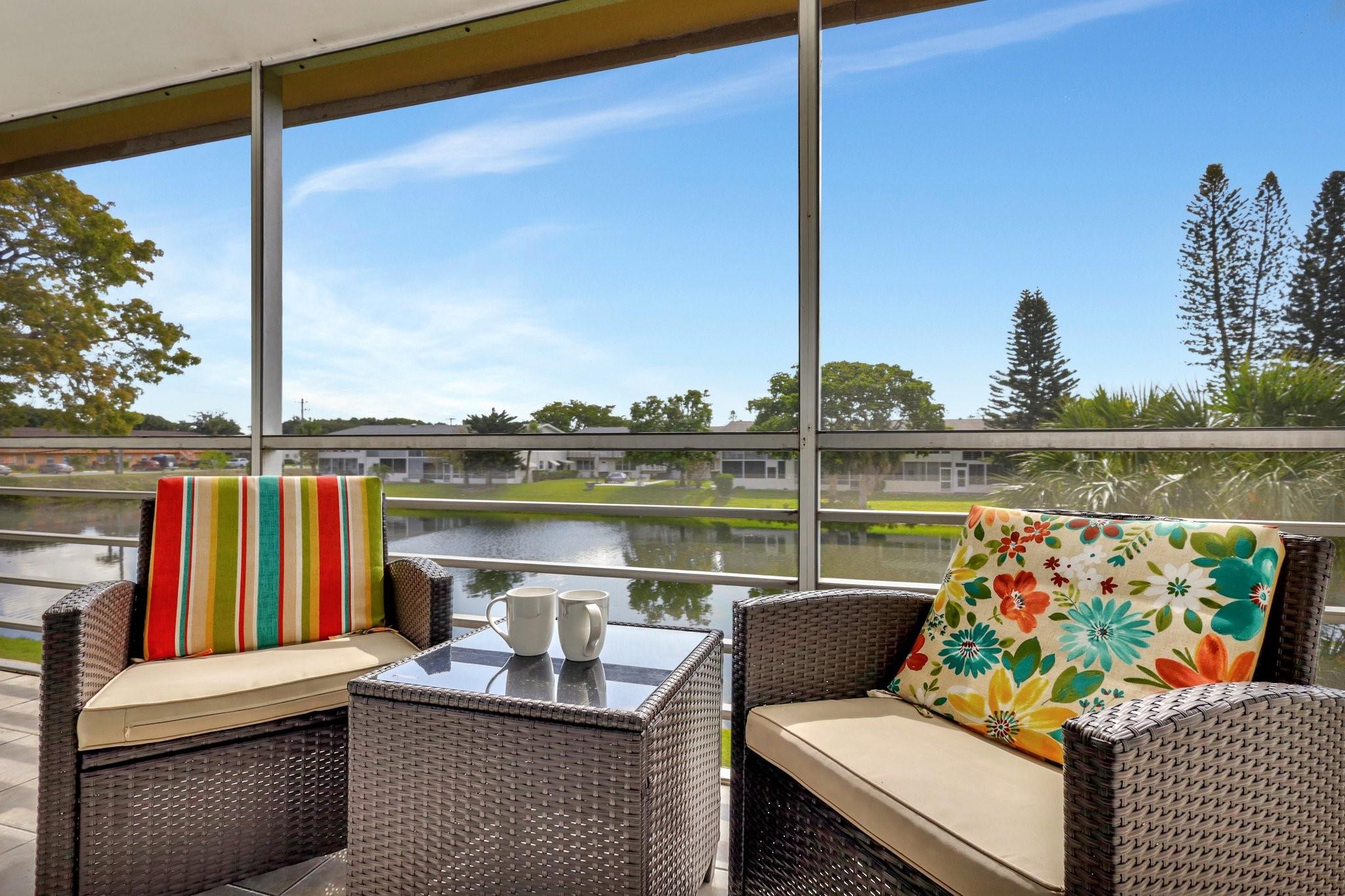 Enjoy uour morning coffee in this peaceful water view in the florida room. Fully furnished, turn key with brand new furniture, including a murphy bed for guests. Cul de sac building, steps to the pool and very close to the fitness center and amenities. Tile floor, 2 AC units, hurricane shutters in the front and in the back. Enjoy buses to go to the clubhouse, watch entertainement at the theater, card games, billar rooms, bungo, music, library, yoga, pilates and dance classes. Also pratice your favorite sports: tennis, pickleball, bocce ball, sailboat rentals, shuffleboard. This is a very safe 55 and plus community with gards at the gate. Close to shopping centers, restaurants and medical facilities. Move in ready ! Easy to show !