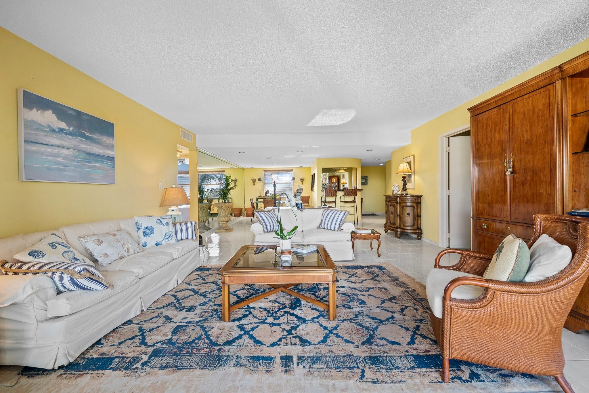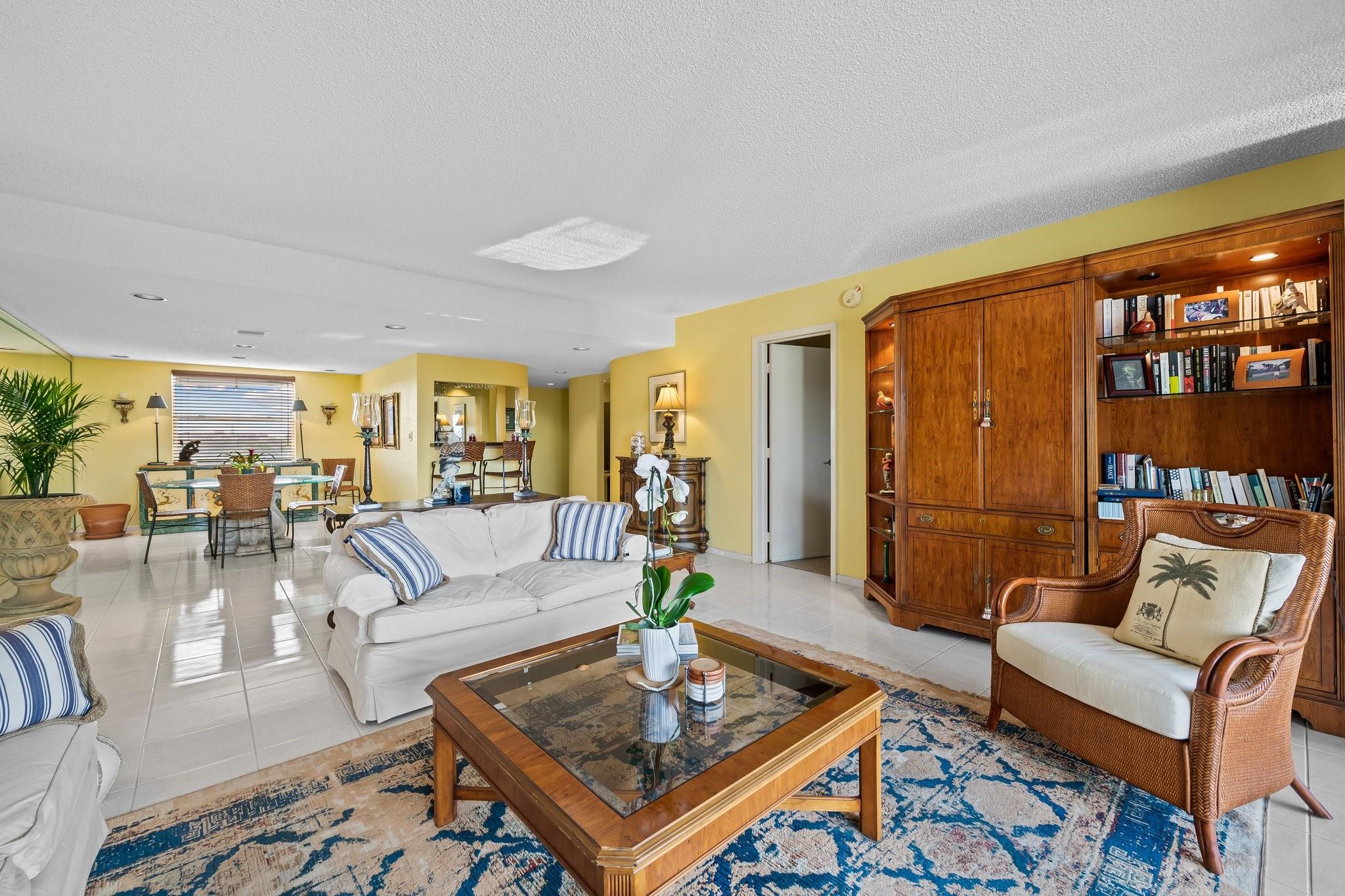 Welcome to The 18th Hole! Your dream home, Unit 608D, awaits! This Fully-Furnished corner unit offers 3 spacious bedrooms and 2.5 beautifully renovated bathrooms within 1,760 square feet of tastefully updated living space. Enjoy the modern comforts of an in-unit washer/dryer and renovated kitchen with granite countertops and attractive backsplash. The inviting living area features recessed lighting and tile floors, while the bedrooms boast cozy carpet. Step out onto your private balcony and experience breathtaking pool views or enjoy the community's extensive amenities, including heated pool, gym, tennis court & more. With on-site parking, manned security gate, & all furnishings included—from fine china to bedroom sets—this home is move-in ready. It's time to start living your best life!