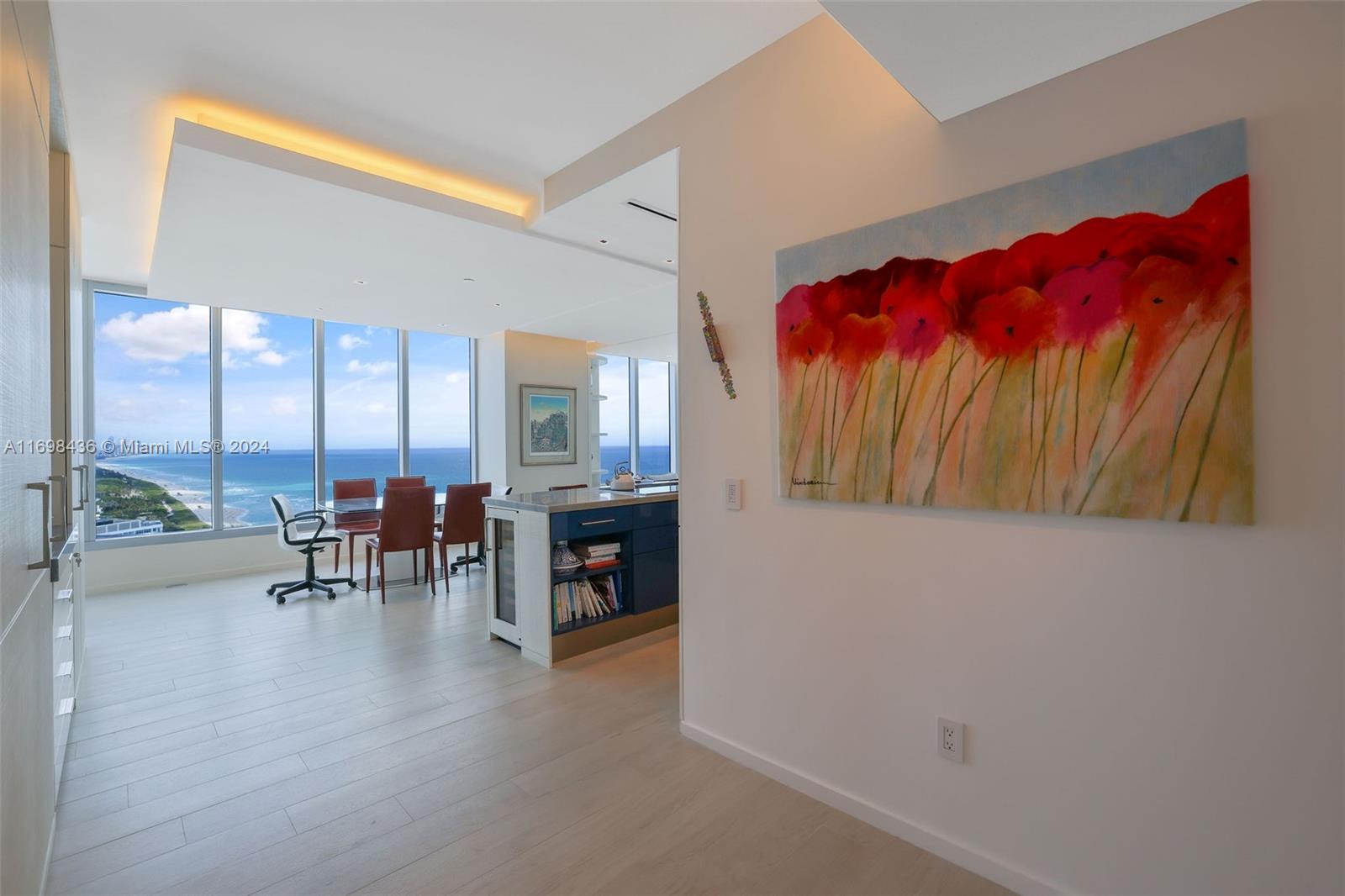 One-of-a-kind spectacular flow thru corner 3 bed 2 1/2 bath unit at Carillon Miami Wellness Resort, a premier oceanfront luxury property. Numerous designer upgrades, meticulous details sparing no expense, including induction oven. Unobstructed, dramatic view of ocean & beach to Ft. Lauderdale. West-facing rooms deliver stunning city, bay, & sunset views. Offered furnished (with exceptions). Full use of 70,000 sq ft fitness & spa center & classes 7 days a week from morning until evening. Luxuriate in a myriad of wet therapies to relax your mind, body, & soul. Restaurant, 4 pools, poolside café, beach service, boutique, wellness staff, 24-hour security, valet. (Only cash offers considered.) Walking neighborhood with all conveniences. Now is the time to live your very best life!