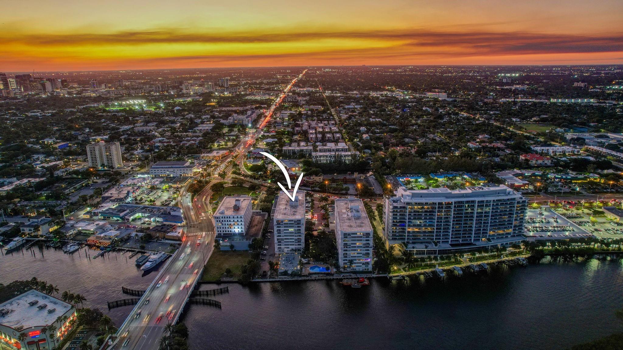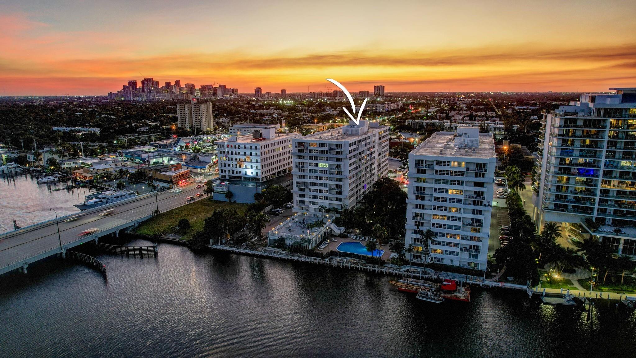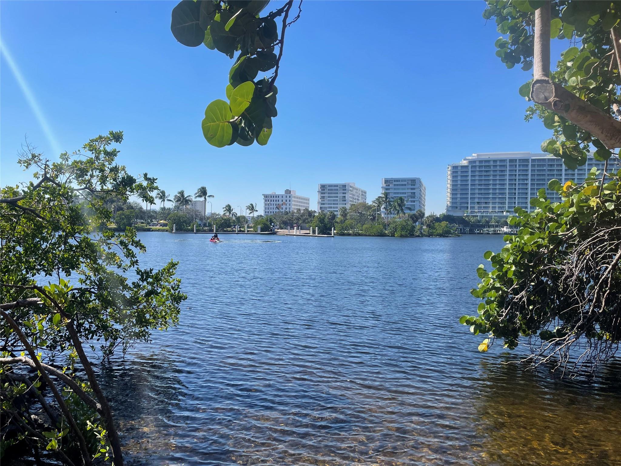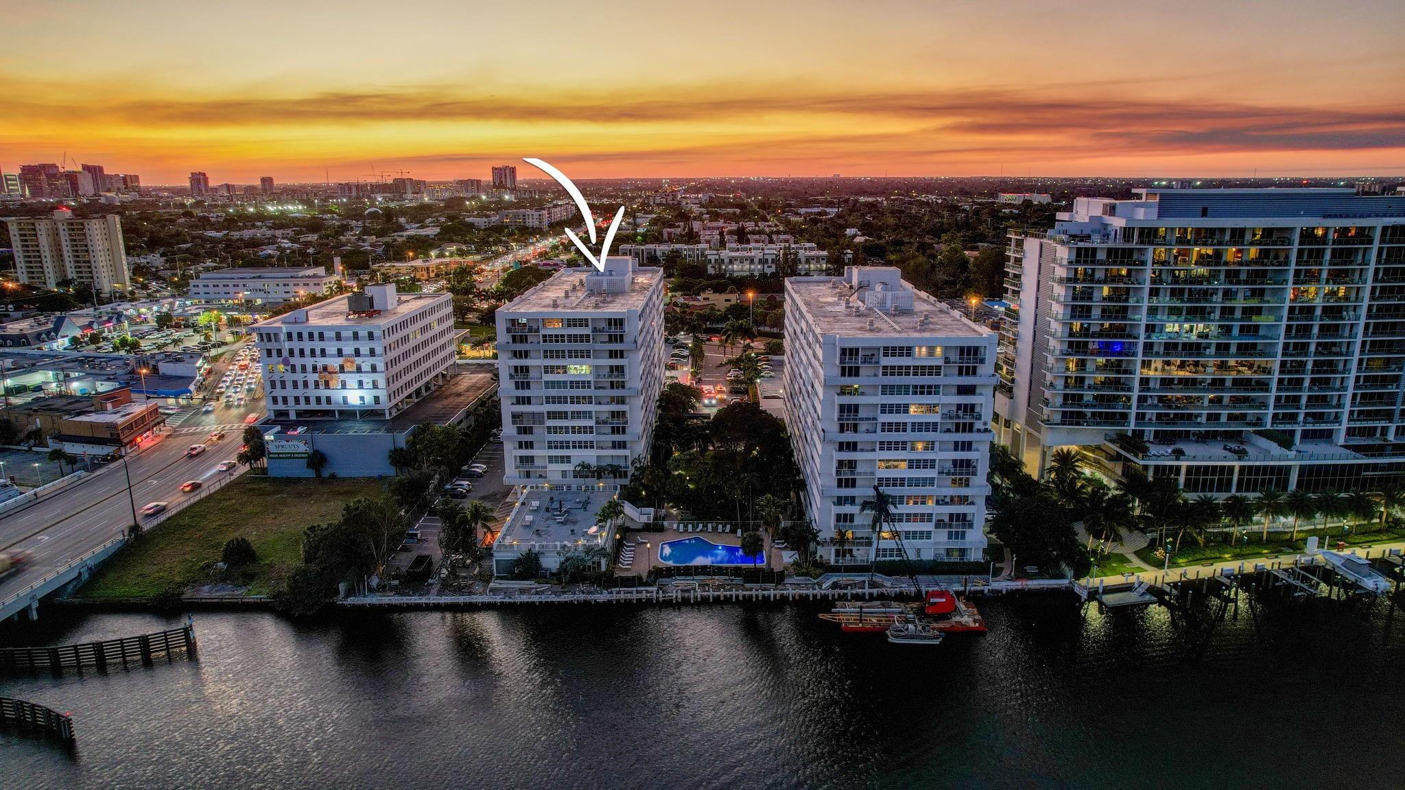 Discover this elegant 2-bedroom, 2-bathroom corner unit in a prime location. Bright and spacious, the unit features impact windows and sliding doors, freshly painted interiors, crown moldings, and a private balcony offering breathtaking sunsets. The oversized primary suite boasts a custom walk-in closet and stylishly updated bathrooms. Amenities include a saltwater pool overlooking Middle River, an updated gym and clubroom, a nearly finished seawall, and plans for a kayak area and dog path. Enjoy covered parking, grilling by the water, and access to nearby parks, beaches, a boat ramp, Galleria Mall, fine dining, and Whole Foods. This vibrant community offers the ultimate waterfront lifestyle. Call today for your private tour!