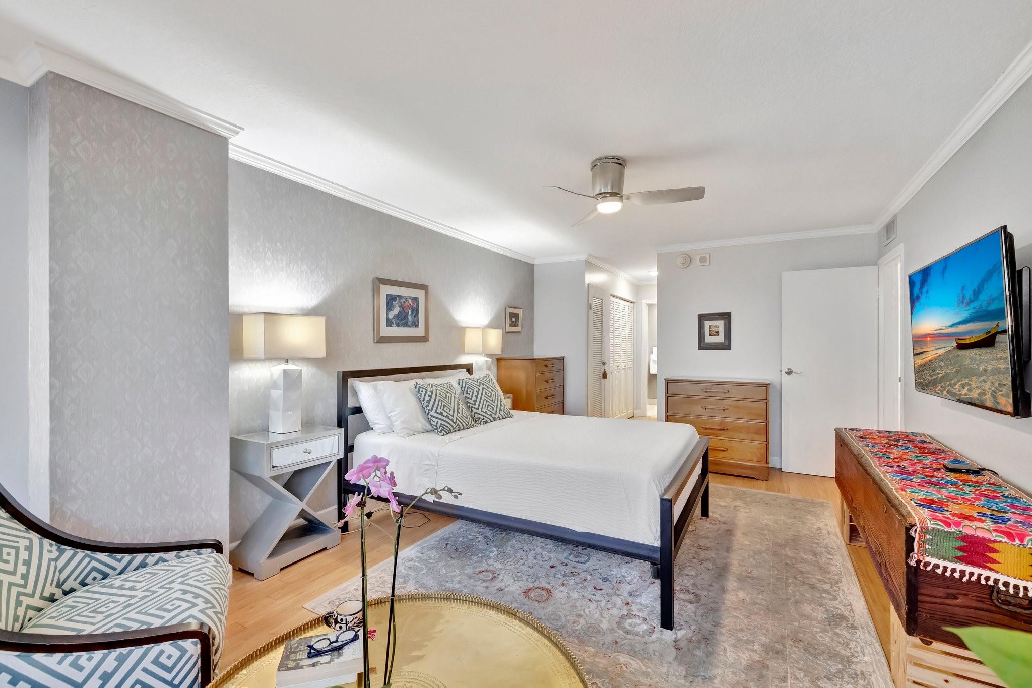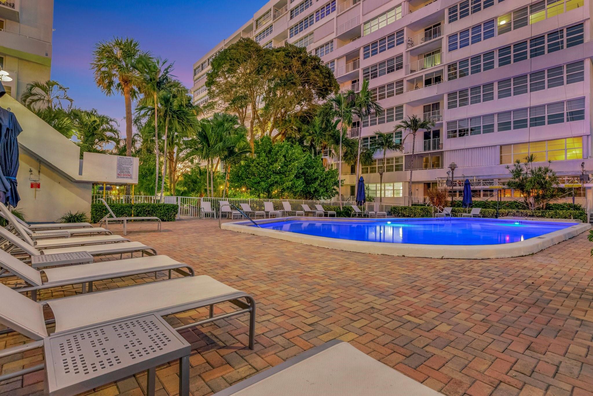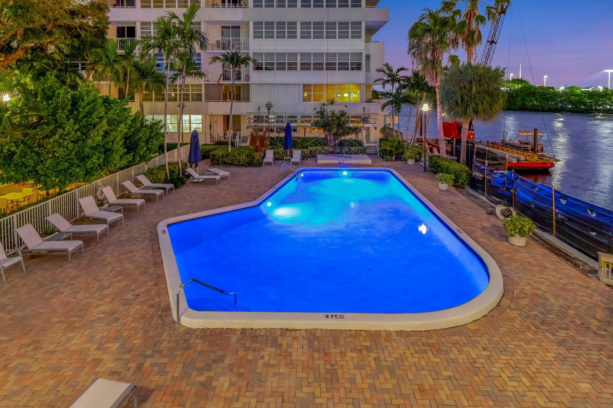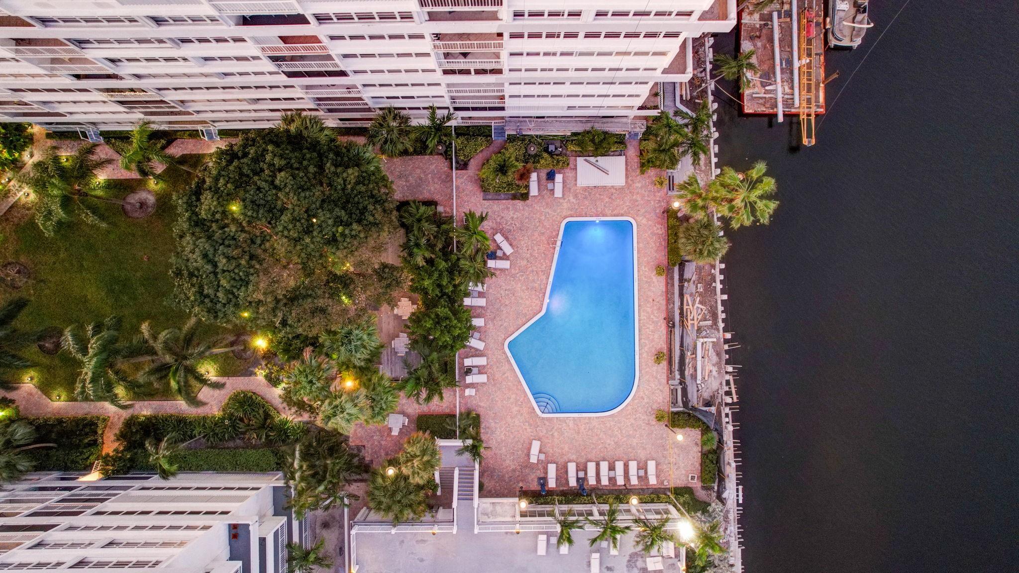 Discover this elegant 2-bedroom, 2-bathroom corner unit in a prime location. Bright and spacious, the unit features impact windows and sliding doors, freshly painted interiors, crown moldings, and a private balcony offering breathtaking sunsets. The oversized primary suite boasts a custom walk-in closet and stylishly updated bathrooms. Amenities include a saltwater pool overlooking Middle River, an updated gym and clubroom, a nearly finished seawall, and plans for a kayak area and dog path. Enjoy covered parking, grilling by the water, and access to nearby parks, beaches, a boat ramp, Galleria Mall, fine dining, and Whole Foods. This vibrant community offers the ultimate waterfront lifestyle. Call today for your private tour!
