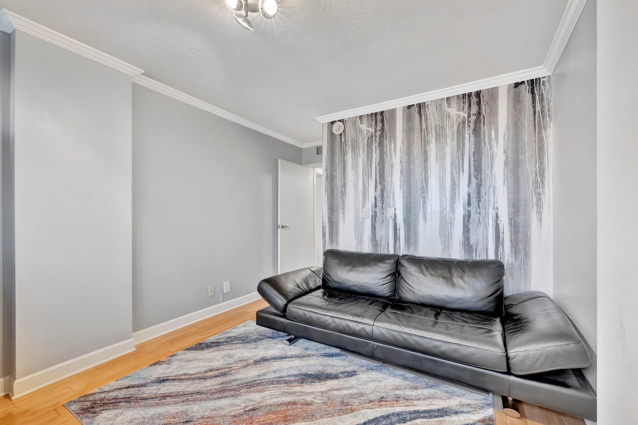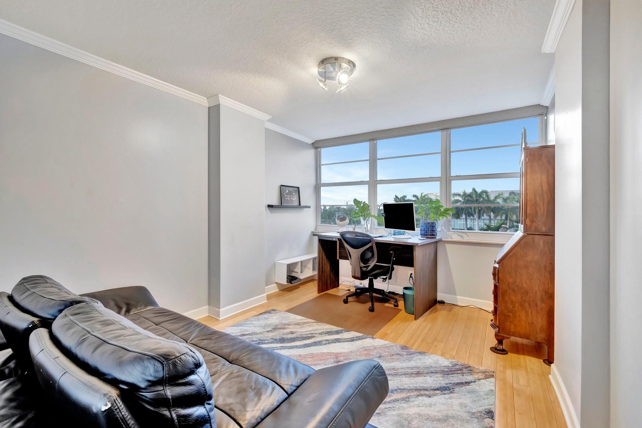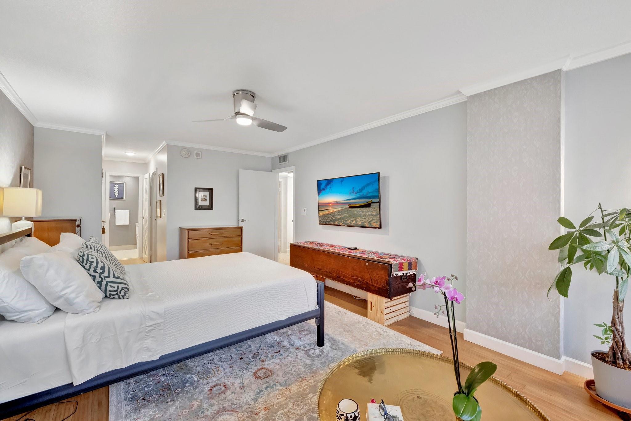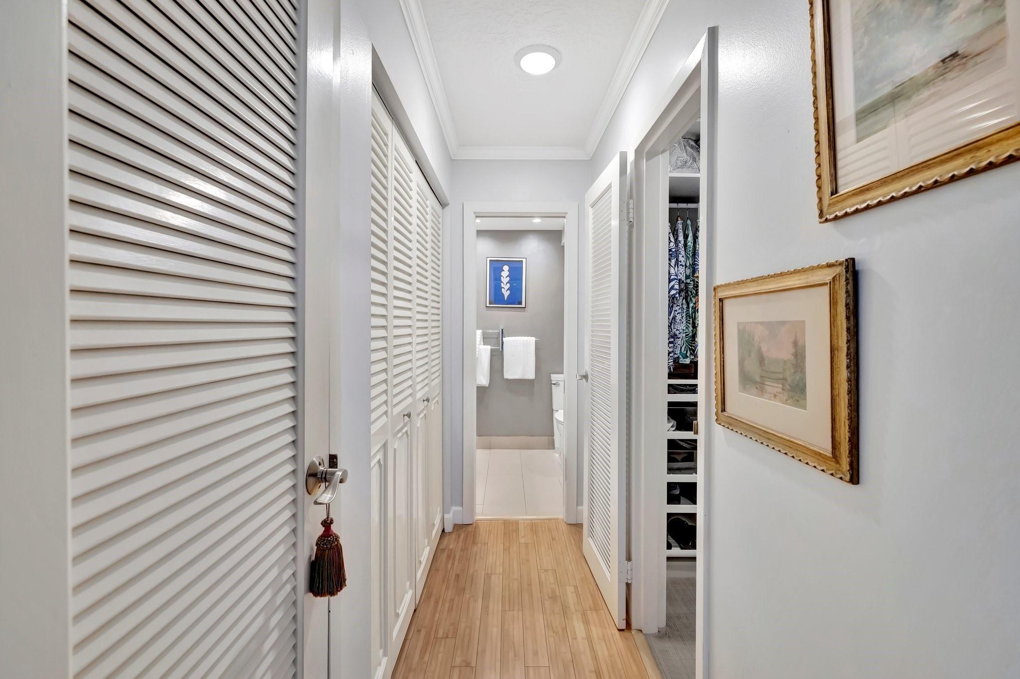 Discover this elegant 2-bedroom, 2-bathroom corner unit in a prime location. Bright and spacious, the unit features impact windows and sliding doors, freshly painted interiors, crown moldings, and a private balcony offering breathtaking sunsets. The oversized primary suite boasts a custom walk-in closet and stylishly updated bathrooms. Amenities include a saltwater pool overlooking Middle River, an updated gym and clubroom, a nearly finished seawall, and plans for a kayak area and dog path. Enjoy covered parking, grilling by the water, and access to nearby parks, beaches, a boat ramp, Galleria Mall, fine dining, and Whole Foods. This vibrant community offers the ultimate waterfront lifestyle. Call today for your private tour!