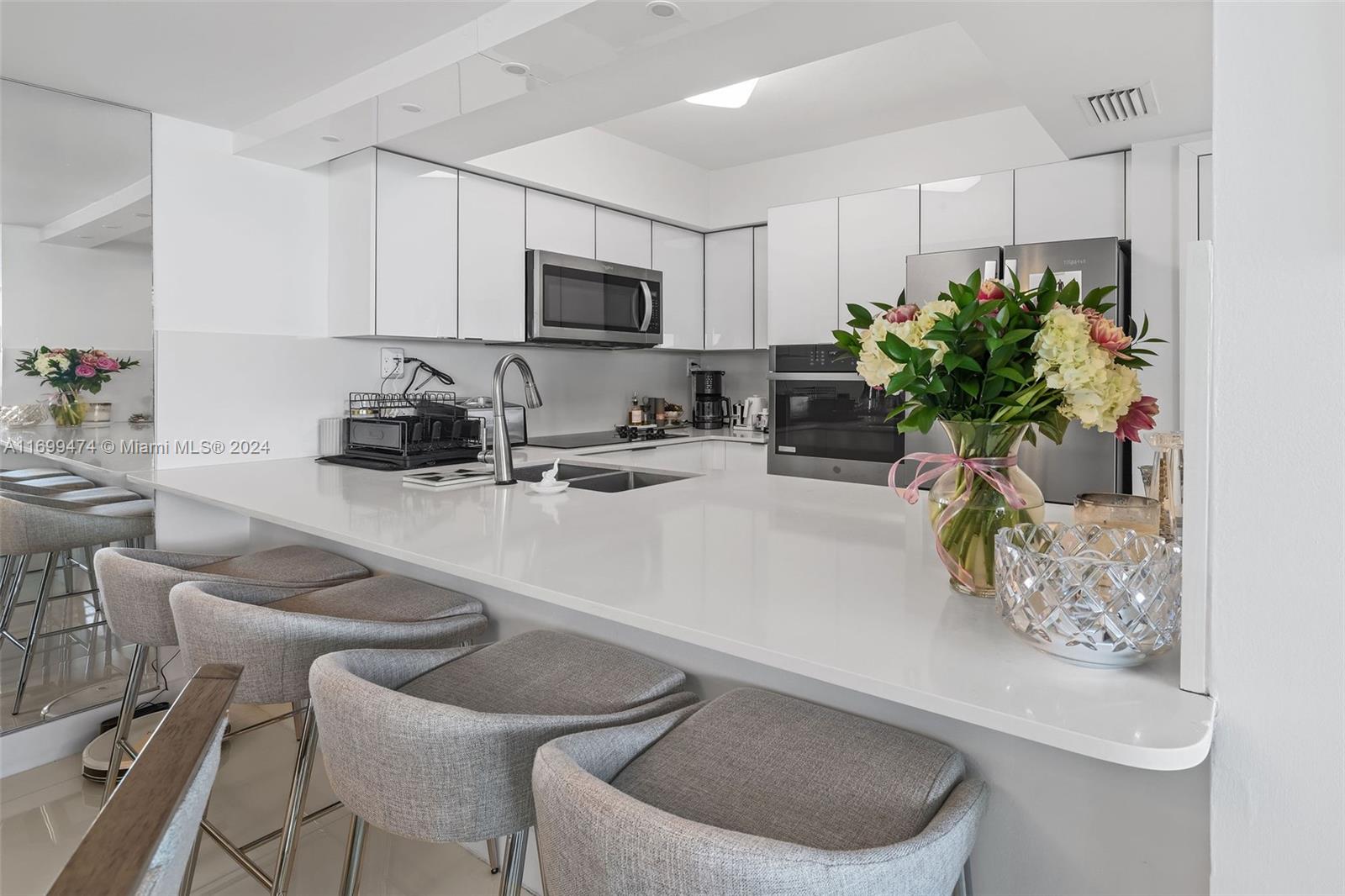 Enjoy unbeatable sunset and Miami skyline views from this 3 Bedroom / 2 Bathroom unit at The Floridian. Boasting 1,372 sqft, this spacious unit is perfect for entertaining with a counter height bar that opens to a bright living space with stunning views. Beautifully renovated, the unit has quartz counter tops, stainless steel appliances, full size washer/dryer, and 1 assigned parking space. The Floridian is an amenity rich building located on the bay. Amenities include 2 bay front pools, jacuzzi, tennis court, concierge, salon, gym & onsite gourmet market. Conveniently located near Shops on Lincoln Road, Whole Foods, South of Fifth, and more!
