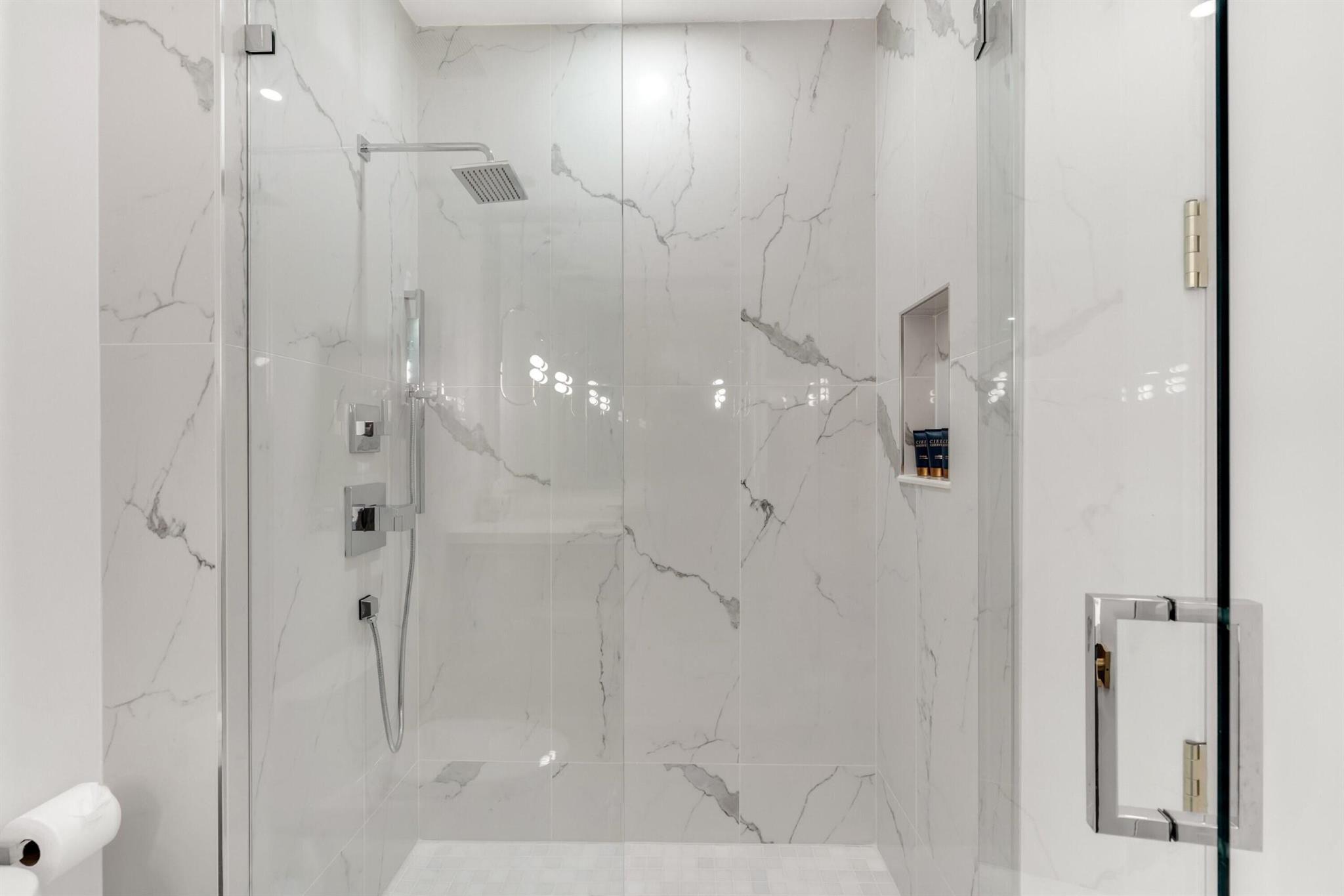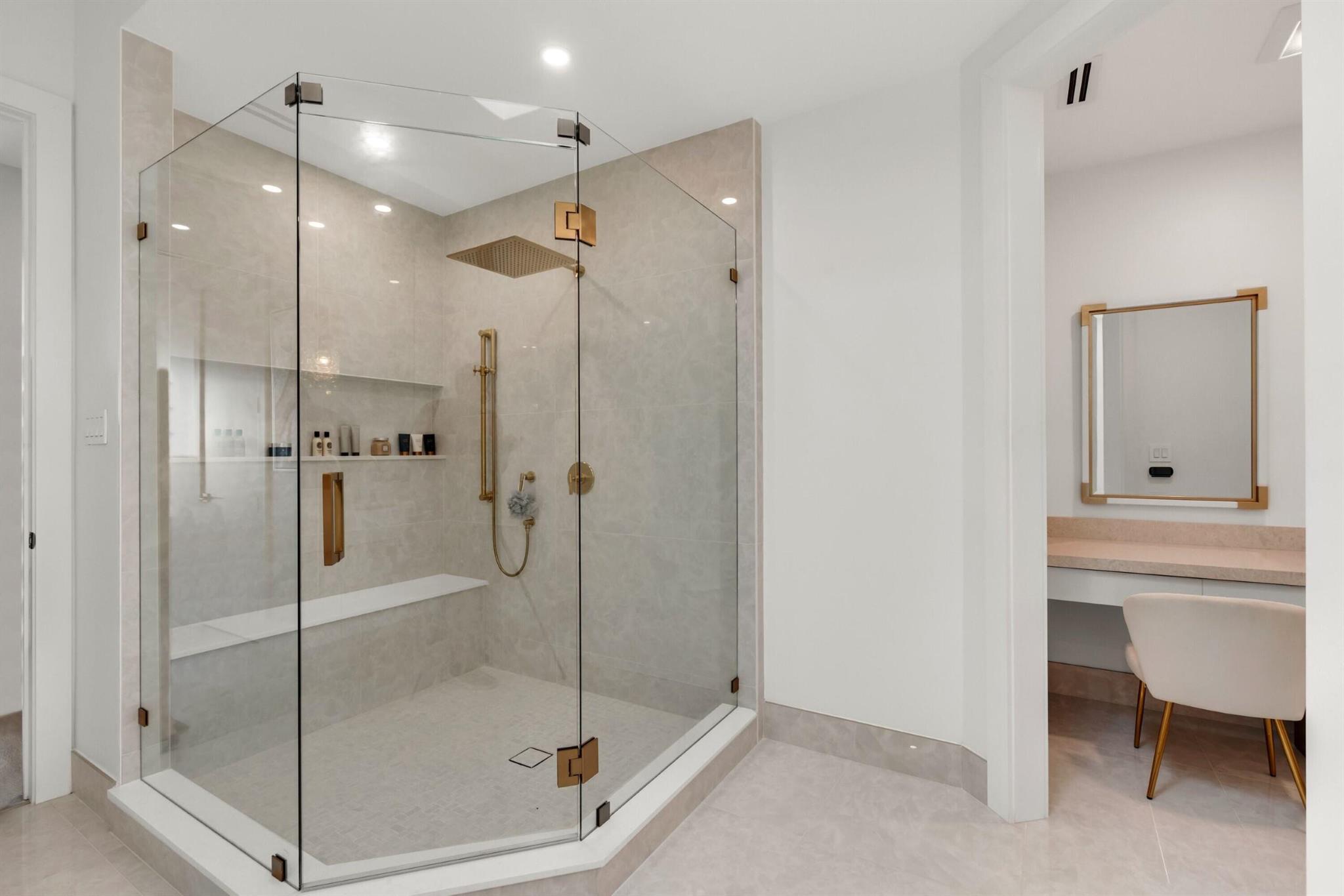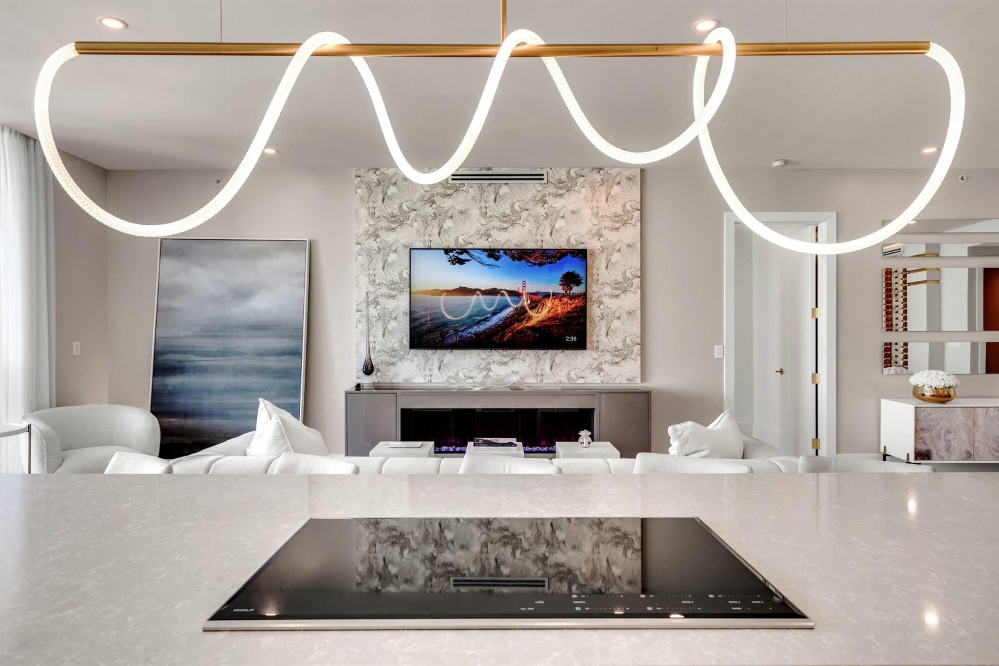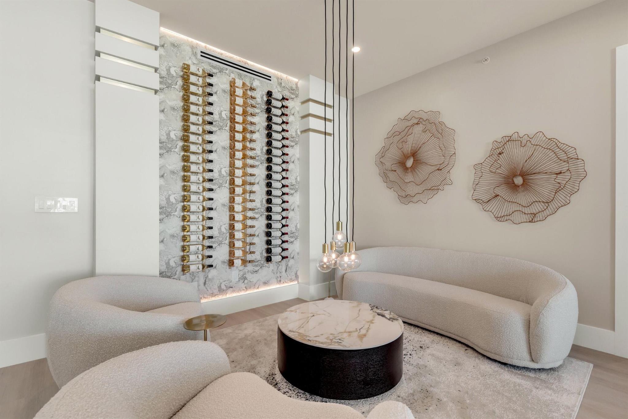This renovated Townsend Place penthouse features a sleek ultra-modern aesthetic that fits the downtown Boca Raton lifestyle. Details include an open floorplan with soaring 10-foot ceilings, a spacious terrace accessible from every room, a minimalist design with a neutral monochromatic palette accented by gold, and bold-statement light fixtures that combine to create the ultimate in modern luxury.