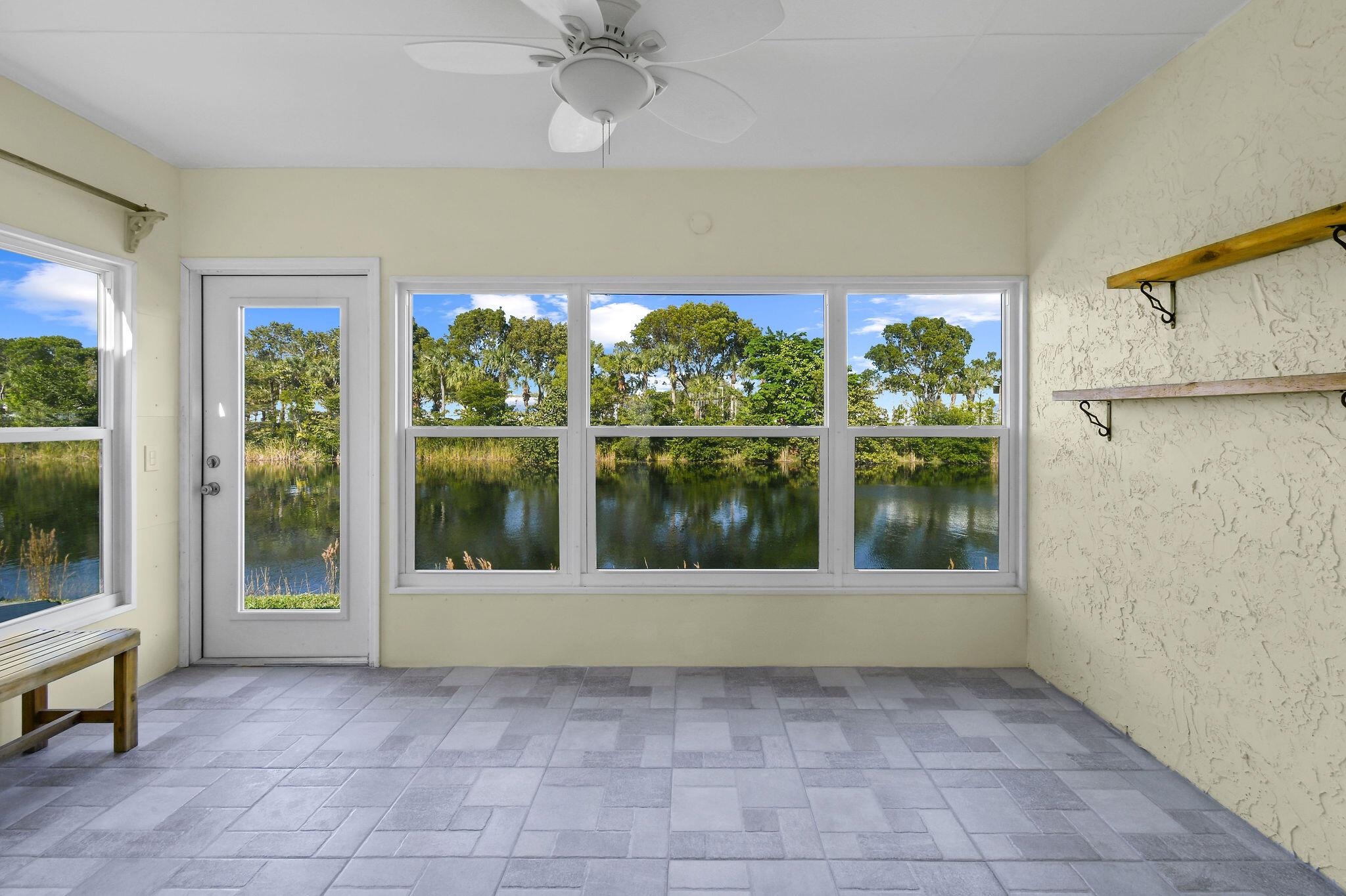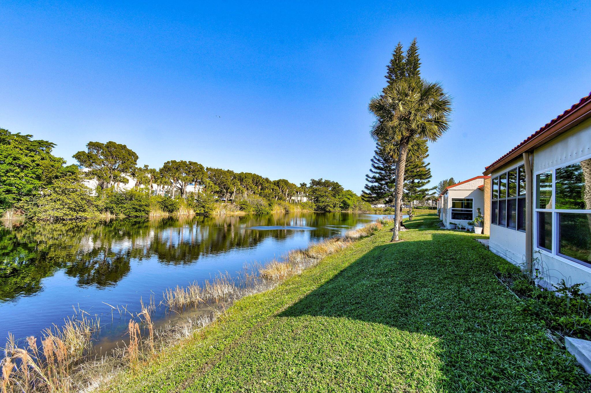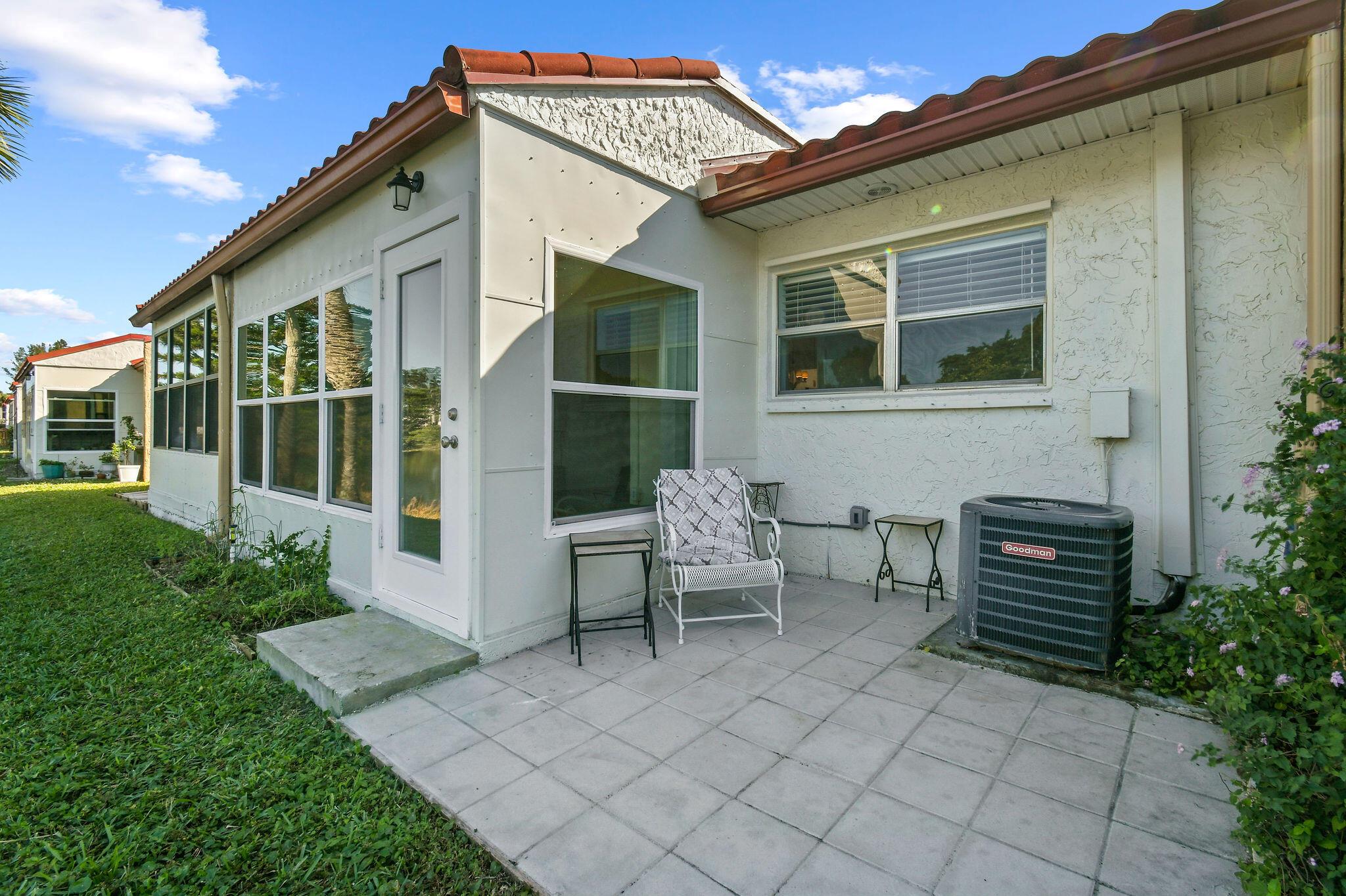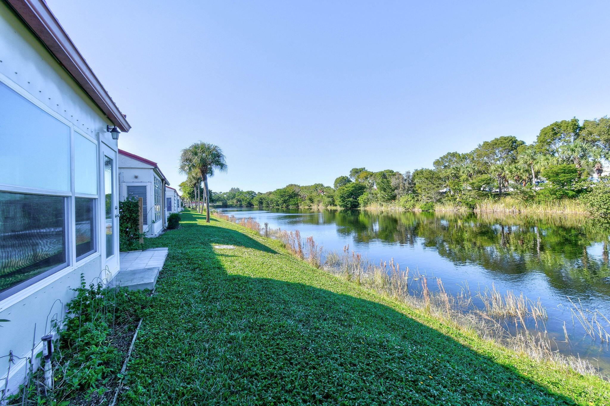 Totally renovated 2/2 Villa. Interior just painted. New A/C, IMPACT windows, porcelain tile floors. Enclosed Patio with A/C overlooking waterway. 24/7 Guard gated, full time social director schedules trips, shows and many events. Pool, Gym, Hot tub, Billiards, Bocce Ball court and so much more. Inside washer/dryer installed. Great location, close to shopping, dining, airport and approx 20 min to downtown West Palm Beach. Come discover Golden Lakes Village.