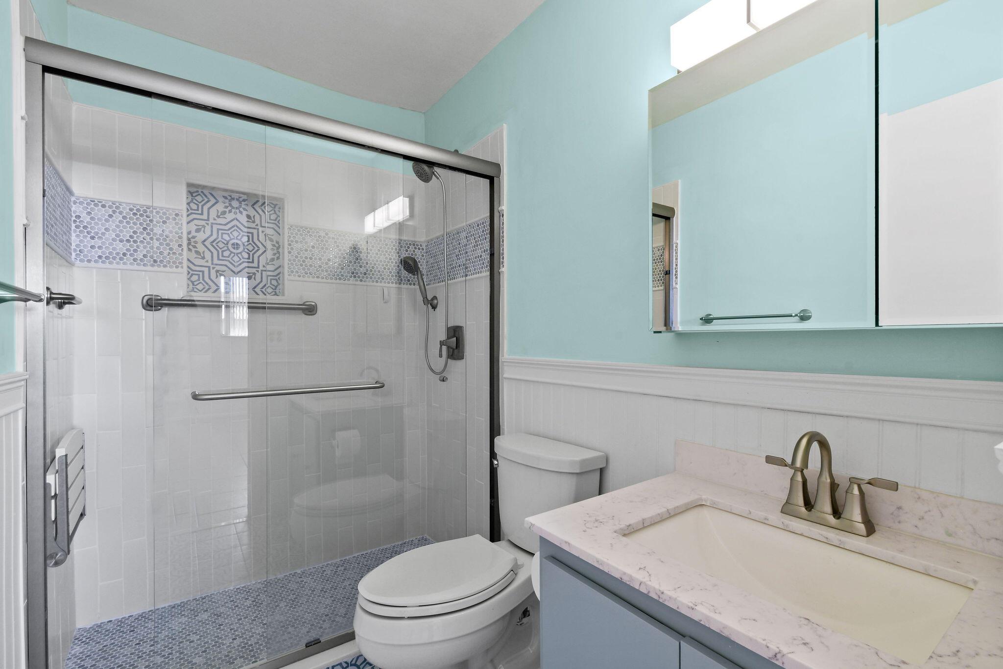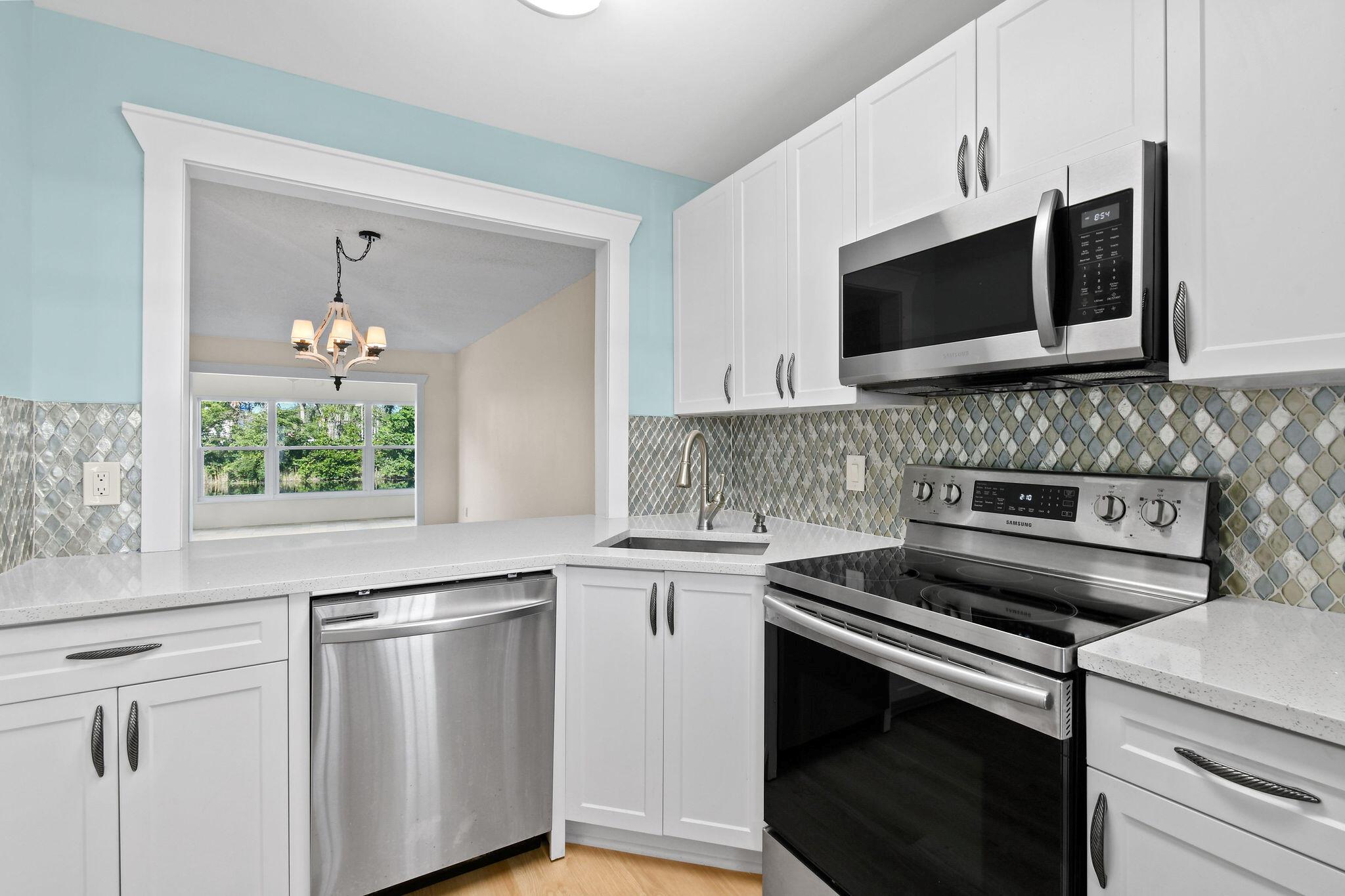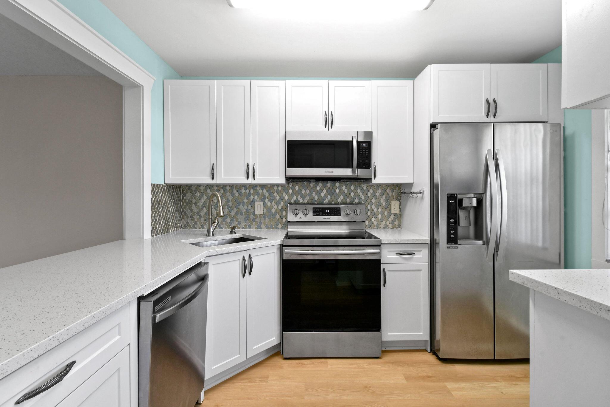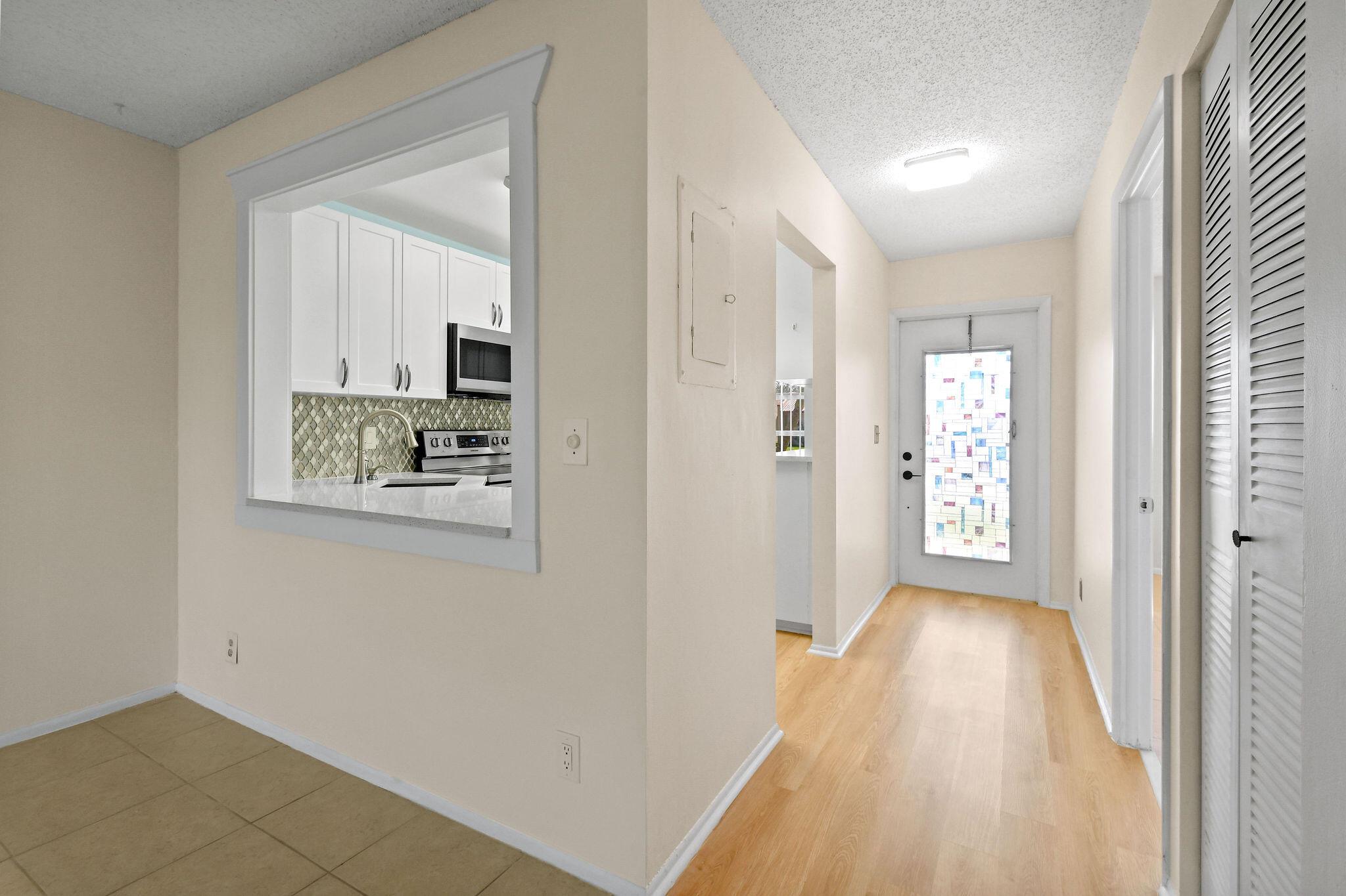 Totally renovated 2/2 Villa. Interior just painted. New A/C, IMPACT windows, porcelain tile floors. Enclosed Patio with A/C overlooking waterway. 24/7 Guard gated, full time social director schedules trips, shows and many events. Pool, Gym, Hot tub, Billiards, Bocce Ball court and so much more. Inside washer/dryer installed. Great location, close to shopping, dining, airport and approx 20 min to downtown West Palm Beach. Come discover Golden Lakes Village.