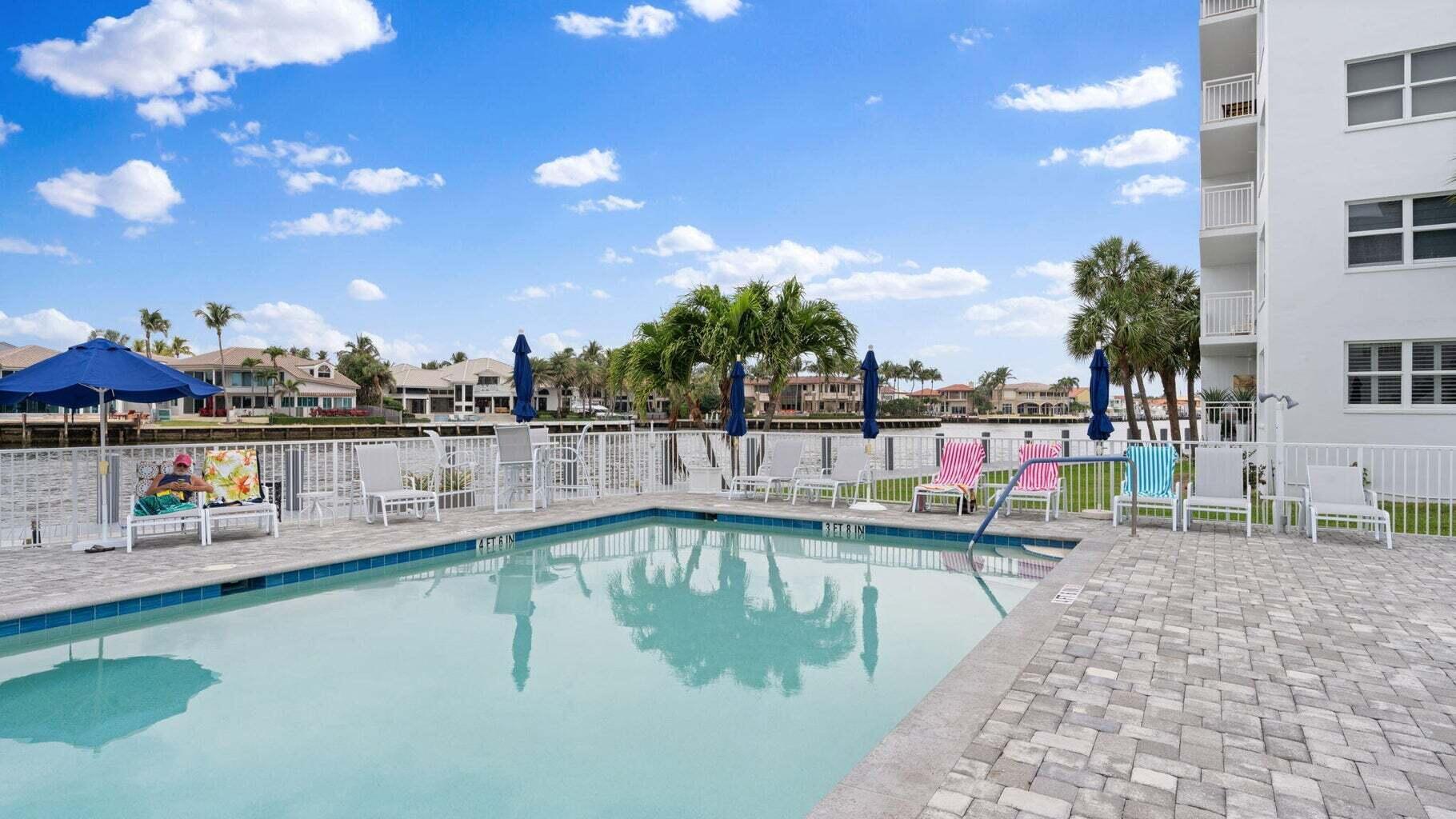 Beautiful Condo (only 1 available) in Monterey House in desirable Highland Beach, steps to your own Private Beach and right on the Intercoastal with views of the passing boats. This unit, in a boutique building, offers an abundance of Natural Light, Hurricane Impact Windows & Doors and modern bathrooms. Intracoastal and Garden views right from your sitting room, bedrooms , kitchen and patio. Heated pool , and private beach access with beach chairs and a shower. The Club house is fully appointed for your entertainment needs and has has WIFI and a Large Screen TV along with a great lending library and right nearby , there are 3 Barbecue grills for when the mood takes you. Fully funded reserves, MILESTONE/Engineering inspection completed and no Special Assessments , a well managed building.
