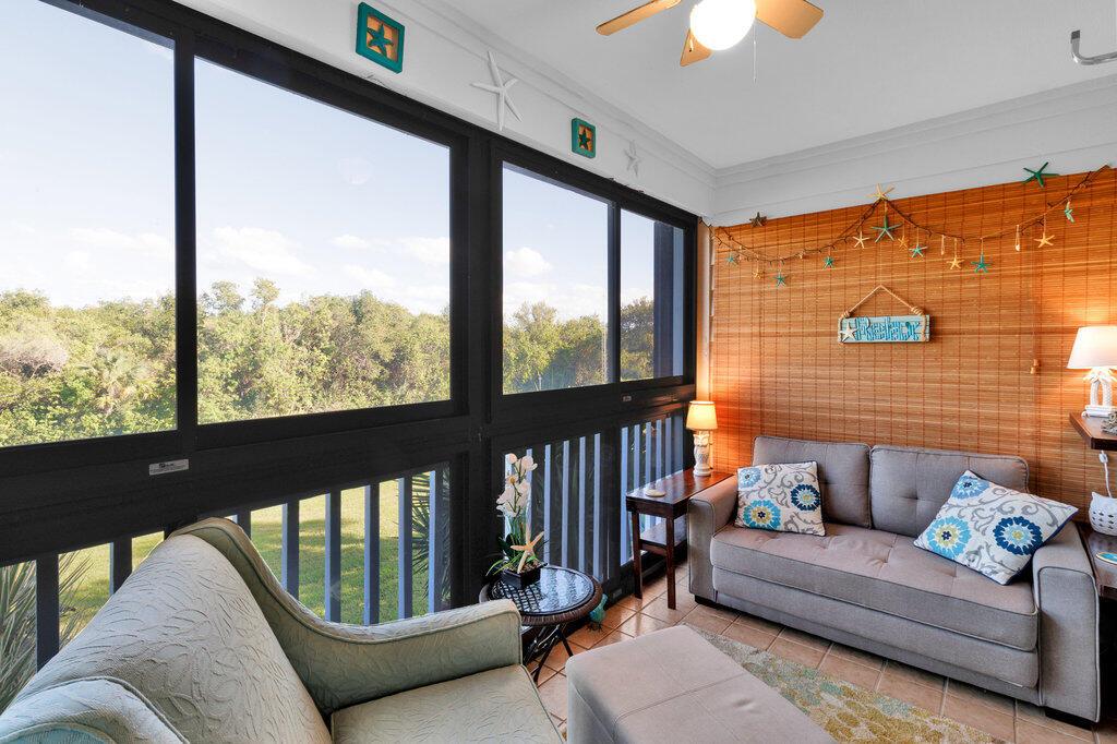 MOTIVATED SELLER and you do not want to miss out on this Condo! Seriously, this 2nd floor condo has views of the Golf Course off your private balcony+ the front view is a fantastic setting under a majestic oak tree adorned with orchids + view of the pond full of fish, turtles, birds and the occasional fun antics of the carefree otters. Unit is being sold TURN-KEY & I must say, it is simply GORGEOUS! The owners of this condo have impeccable decorating skills and have taken EXCELLENT care of their winter retreat. Will this be your new home or winter retreat? It can be yours IF you act quickly.