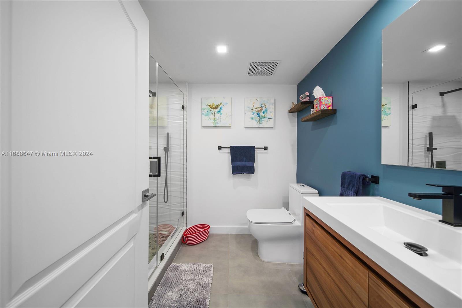 This thoughtfully designed condo at Skyline on Brickell offers a sophisticated yet family-friendly space ideal for a growing family. Floor-to-ceiling windows bring in natural light, showcasing bay views, lush greenery, and the vibrant Miami skyline. Equipped with a Nest A/C controller and a new unit from July 2024, it ensures energy efficiency year-round. The open living area features LED recessed lighting, and the modern kitchen boasts stainless steel appliances plus an in-unit washer and dryer. Both bedrooms offer spacious walk-in closets with custom doors, and bathrooms have elegant Spanish tile floors. Skyline amenities include covered parking, a tennis court, private marina, fitness center with sauna, pool, BBQ areas, a dog park, EV chargers, 24/7 concierge, and valet.