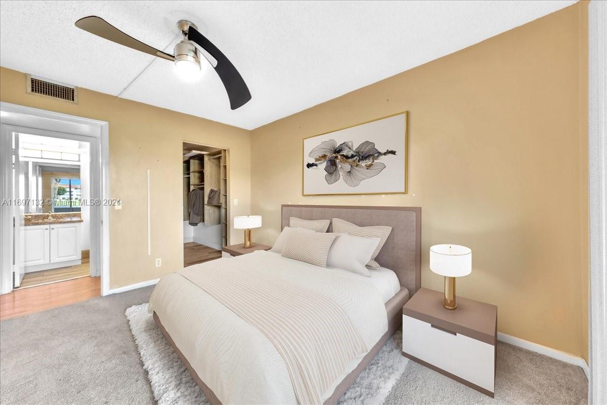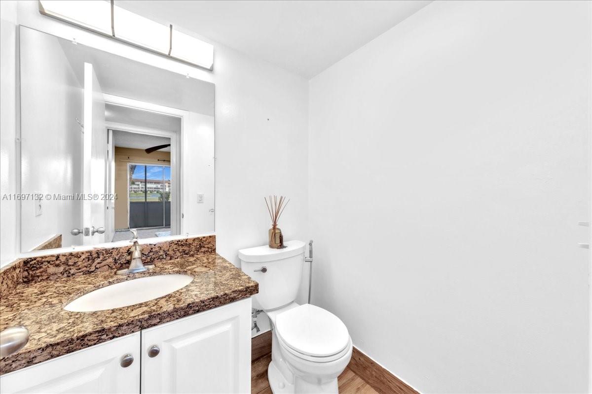 This beautifully updated 2 bed, 1.5 bath unit features modern cabinets and elegant granite countertops. Enjoy the spacious laminate floors throughout, with plush carpeting in the bedrooms for added comfort. The unit offers a peaceful golf course view and is conveniently located within walking distance to the community pool. This vibrant 55+ community offers an exceptional lifestyle with a range of amenities, including a clubhouse, golf course, tennis and pickleball courts, card room, billiards, sauna, multiple pools, gym, library, theater, and much more. Perfect for those seeking an active and social lifestyle!