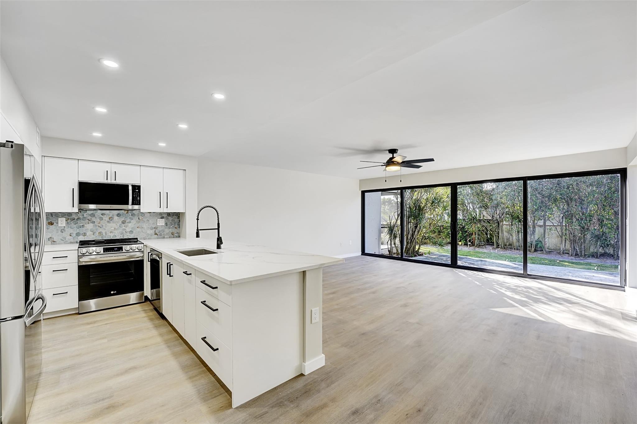 BRING YOUR BOAT. CORNER UNIT, NEWLY RENOVATED GROUND FLOOR HAS BEEN TOTALLY RENOVATED IN 2024 WITH SMOOTH TEXTURE THROUGHOUT. ALL NEW CABINETRY, QUARTZ COUNTERS, STAINLESS STEEL APPLIANCES, ALL NEW PLUMBING FIXTURES, LIGHTING, TRIM, INTERIOR DOORS WITH NEW HARDWARE, NEW IMPACT ENTRY DOOR AND ALL NEW IMPACT SLIDING GLASS DOORS AND WINDOWS THRU OUT. BOTH BATHROOMS HAVE LED LIGHTED MIRRORS. NEW KITCHEN OFFERS STORAGE PANTRY. WATERPROOF, STONE-BACKED LAMINATE HARDWOOD FLOORING THROUGHOUT, NEW WATER HEATER. ASSIGNED PRIVATE DOCK RIGHT OUTSIDE YOUR PATIO. DOCK MAINTAINED BY THE HOA. COMMUNITY IS WELL MAINTAINED, HEATED POOL, HOT TUB, CLUB HOUSE WITH STEAM SAUNA, TIKI HUT AND GRILL AREA. 2 PARKING SPACES, 1 COVERED. COMMUNITY IS FINALIZING THE 40 YEAR INSPECTION REPAIRS & PAINTING.
