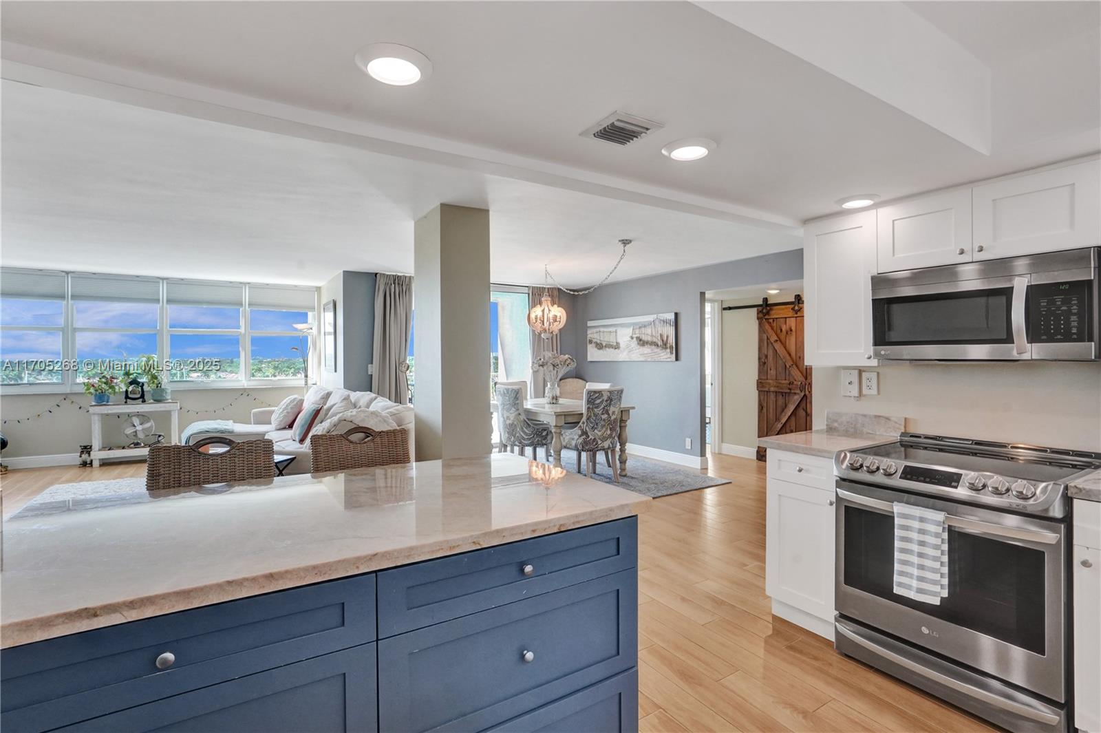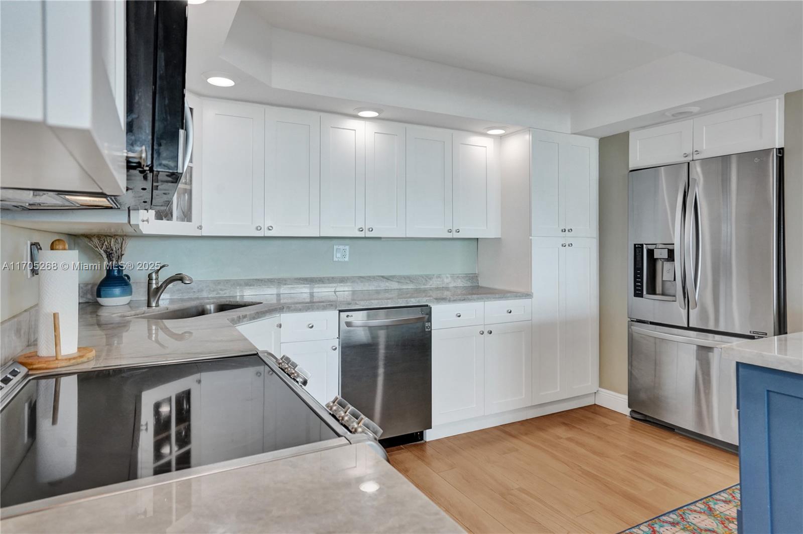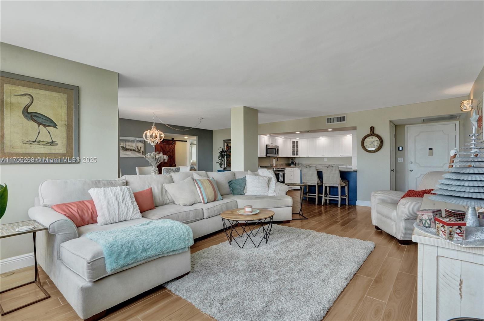Water view from every room! No expense spared, completely renovated, open concept, neutral colors. All impact windows & doors. Walk in showers w/glass doors. Walk-in closets, huge windows. Deeded, covered parking space!!! New electric service. 50 yr inspection complete. Roof 11.5 yrs new. Pool is completely redone. Cable TV & wi-fi included. Walk across the street to the beach and Hollywood Broadwalk with music, food, shopping, festivals. Maintenance just went down to $634/mo. Secured lobby. New exercise room, BBQ area, extra storage. Lease after first year, min 90 days, once every 2 year period. 25% minimum downpayment if financing. No persons under 13 can reside on the property.