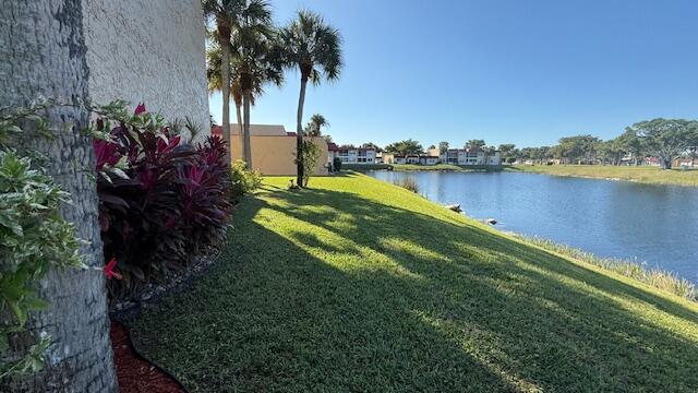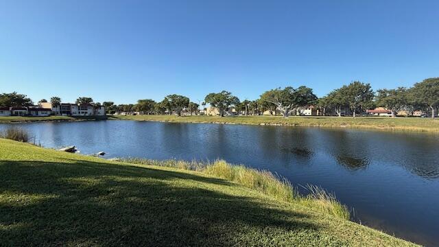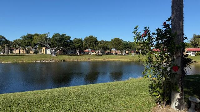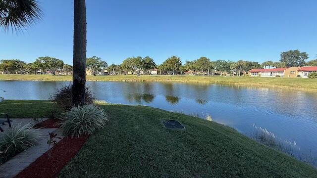 Immaculate 1st floor corner unit on cul-de-sac of Lake Dora boasts gorgeous rap around views off the back yard, updated kitchen cabinets, walk in pantry with extra storage fully furnished with indoor and outdoor furnishings. Just bring your tooth brush. The laundry room is just a block away, around the next block to the clubhouse and pool area. The community boasts lots of activities, exercise & dance classes, gym, card room, bingo, and parties. Just minutes to two Publix and walmart . Close to highways and Palm Beach airport, minutes to the beaches.