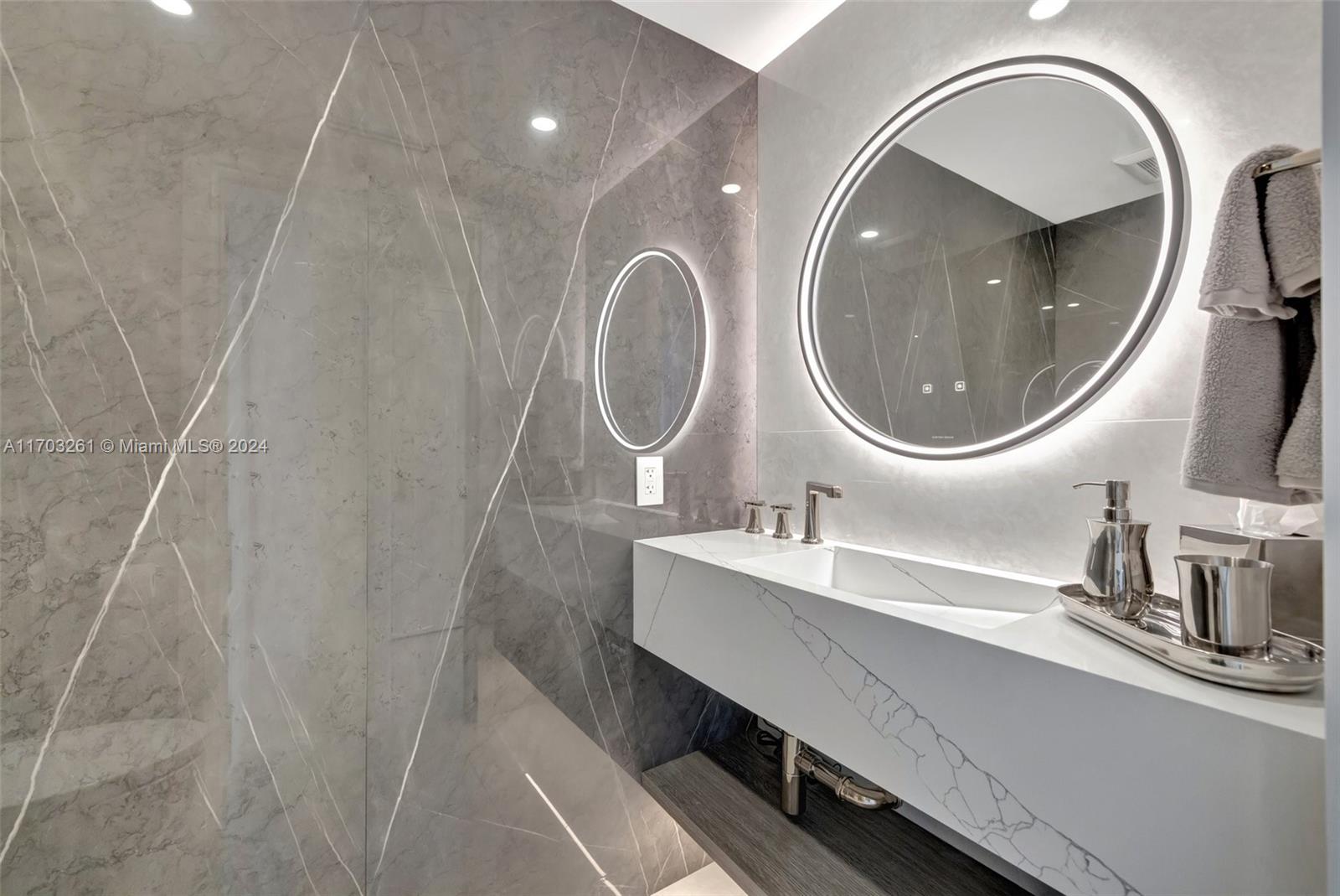 Completely updated in 2024, this luxurious residence in the highly sought-after Bella Mare Condominium on Williams Island offers unmatched elegance. Private elevators lead to a spacious 3-bedroom, 2.5-bath, 2,180 sq. ft. home featuring soaring ceilings, a custom two-tone kitchen with quartz waterfall counters, & top-of-the-line finishes. Enjoy electric shades, 4x4 rectified porcelain floors, LED lighting, & custom closets throughout. Bathrooms boast stunning backlit vanities. Bella Mare delivers 5-star amenities, including a daily News Café, state-of-the-art gym, theater, lap pool, BBQ area, guest suites, and more. Relish the Williams Island lifestyle with a world-class spa, tennis and pickleball courts, gourmet dining, and the soon-to-be-upgraded Island Club pool and restaurant.