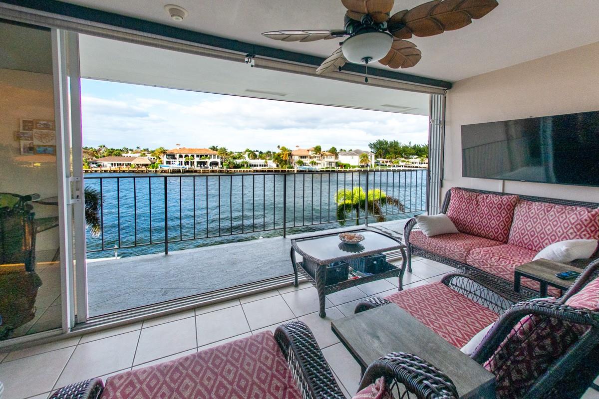 It's a REAL DEAL! Serious Buyer opportunity!! BUYER TO RECEIVE CREDIT FROM SELLER FOR BALANCE OF MONTHLY 2025 HOA PAYMENTS. PLUS ALL ASSESSMENTS PAID AT CLOSING. Located 1 block from beach, w/Direct panoramic Intracoastal views from the screened & glass patio. Fully furnished, turnkey 2/2 condo, meticulously updated kitchen, 2nd open balcony off the main bedroom. Spa tub in 2nd bath. Enjoy morning coffee on the patio while watching mega yachts float by. Entertain friends with spectacular sunset views. Just a two-minute drive to the Pompano Municipal Golf Course & a mile to the Pompano Beach Fishing Pier, offering multiple beachfront restaurant options. Since the condo is move-in ready, you'll have plenty of time to explore and enjoy all that Pompano Beach has to offer!