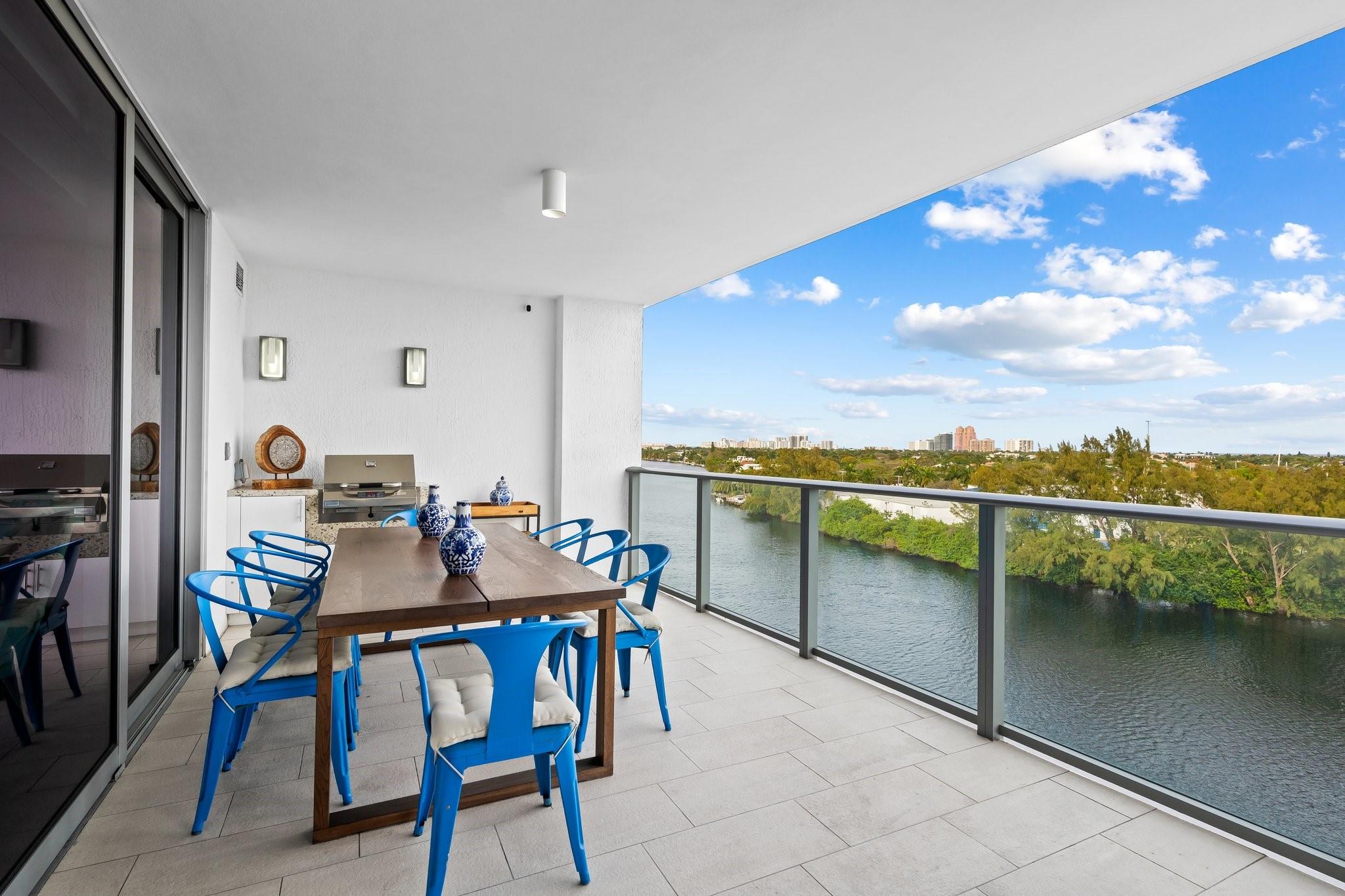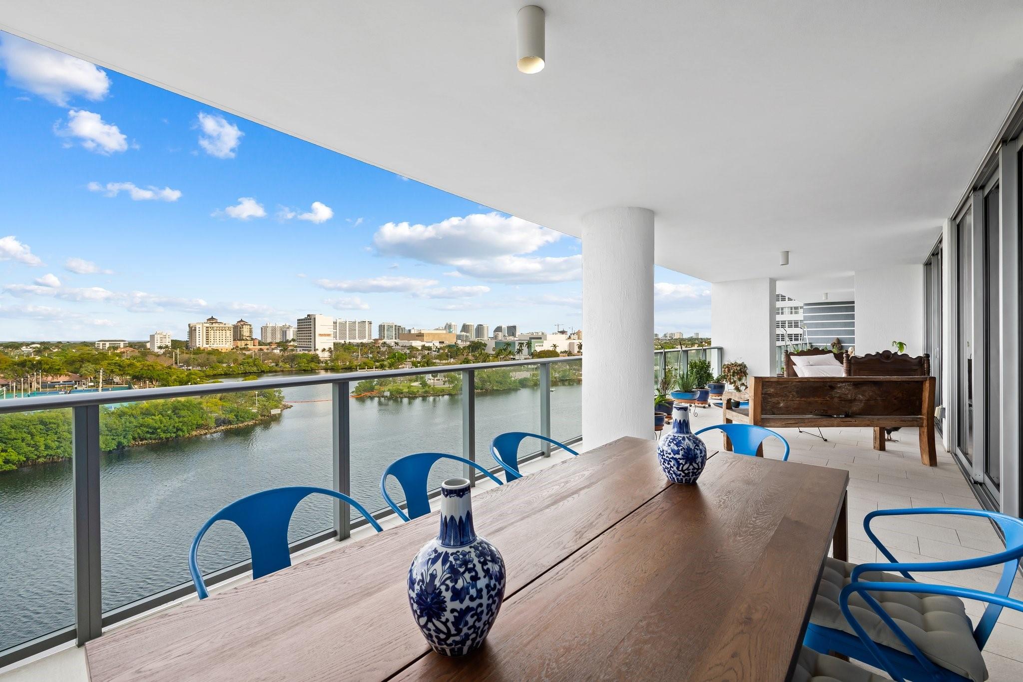 Situated in the best line of units, the 04's are in the center of the building with great views. RIVA residences offer the ultimate luxury waterfront living, facing directly East with panoramic views and stunning scenery, 72’ long terrace with a BBQ grill, a separate dining area for twelve people, two side to side parking spaces a few steps to the elevator, additional storage unit, kitchen is equipped with Italian cabinetry, Wolf & Sub-Zero appliances, pantry/laundry room with sink, soaking tub with jet streams and rain shower, resort style amenities include heated pool overlooking the Middle River, excellent gym with yoga room, sauna, steam & treatment rooms, 2-story resident’s lounge, 3 guest suites, 24/7 front desk attendant and valet parking for guests. Sunset deck with hot tub, etc.