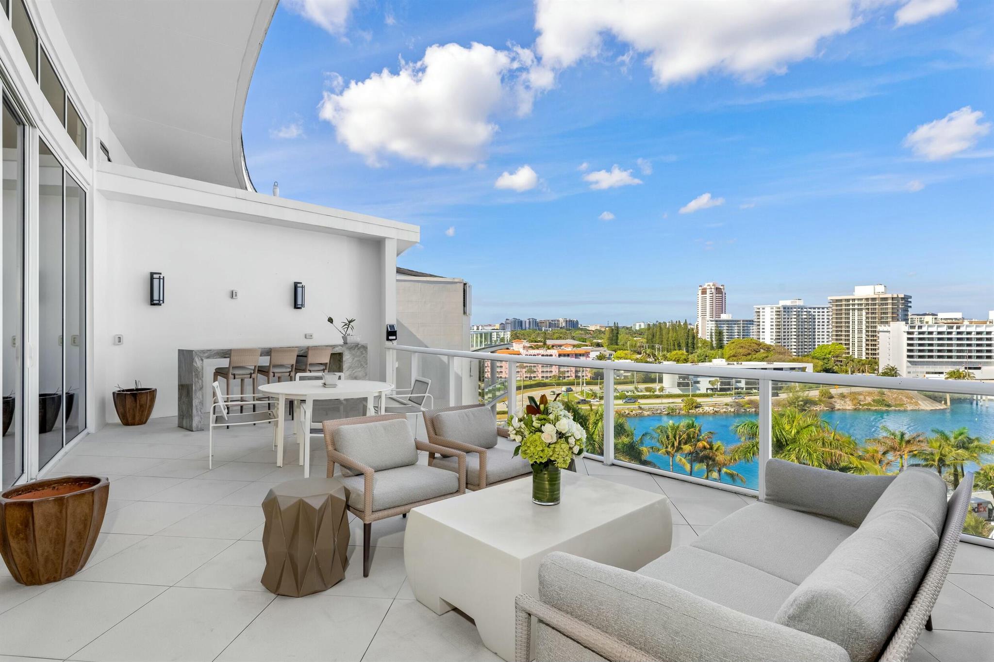 The Sky Penthouse at One Thousand Ocean in Boca Raton is a rare and exceptional residence, blending architectural grandeur with unparalleled luxury. Conceived by Garcia Stromberg Architecture, masterfully executed by Cudmore Builders, and elegantly curated by Shuster Design Studio, this breathtaking penthouse spans 9,303 total square feet, with 6,037 square feet under air. Offering the most extraordinary panoramic views in Boca Raton, the Sky Penthouse boasts unobstructed vistas of the Atlantic Ocean to the east and the Intracoastal Waterway to the west, framing the landscape with breathtaking natural beauty.
