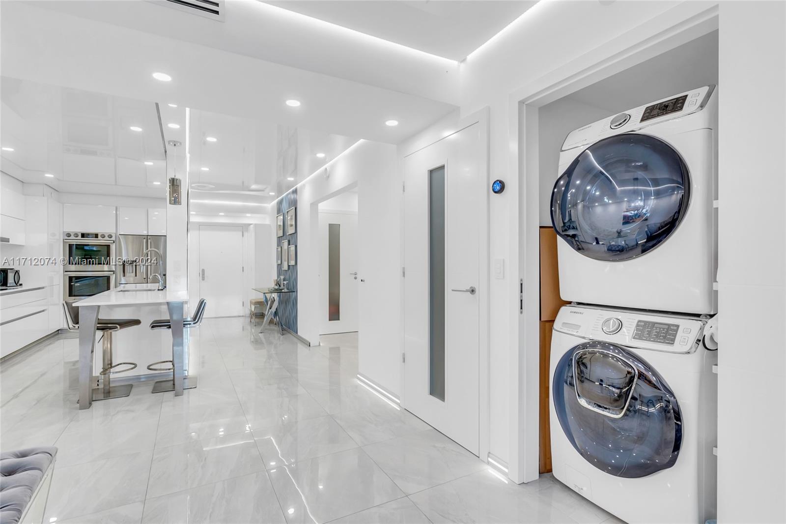 Welcome to this stunningly remodeled condo featuring over $300,000 in upgrades—truly unmatched in the market. Every aspect has been enhanced, including new plumbing, electrical, insulation, and flooring. The gourmet kitchen boasts top-tier appliances and custom cabinetry, while the bathrooms feature premium Porcelanosa tile. This smart home includes built-in LED lighting, electric shades, and a Nest thermostat for modern convenience. Enjoy the added benefits of a dedicated parking space and storage unit, both located on the same floor. The Beach Club offers resort-style amenities, including a restaurant, a 50,000 sq. ft. gym/spa with breathtaking ocean views, 24-hour security, and valet parking. This unit is truly one-of-a-kind—don't miss your chance to own it!