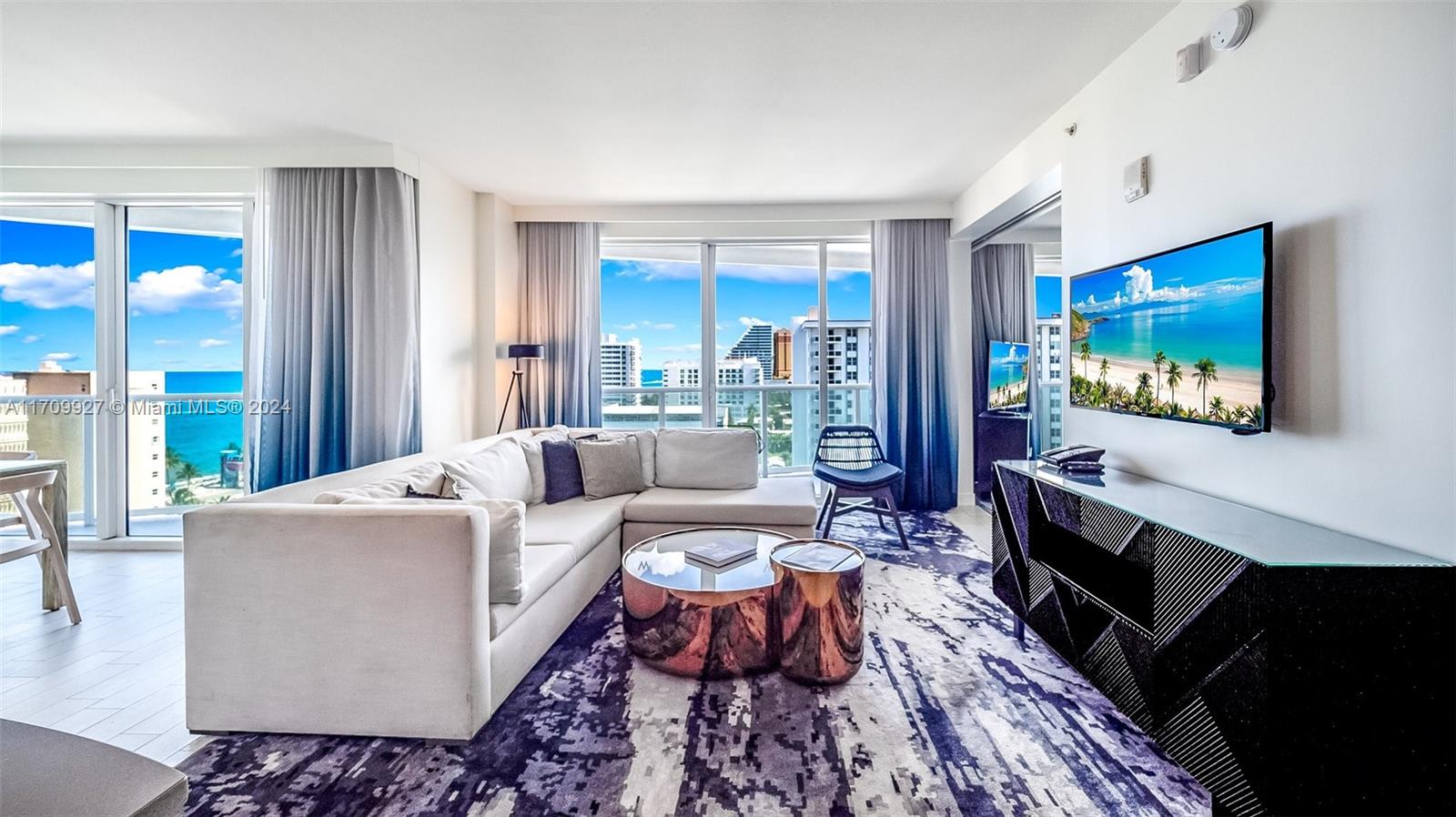 Stunning OASIS Model and ADA compliant one of few in the building. This is the largest two bedroom with two baths corner unit closest to the beach Southeast corner of the building. Open layout, spacious balconies and stylish design round out this turnkey condo, complete with washer/dryer, full size kitchen and appliances. Sleeps up to six with pull out sofa. Resort style amenities including two pools, AWAY Spa, fitness center, Living Room Bar, Steak 954 and El Vez Restaurants by Stephen Starr, NO rental restrictions the perfect vacation home or short term rental property all-in-one, The W Beach Club will have you relaxing in the sand with chairs, towels and umbrellas.