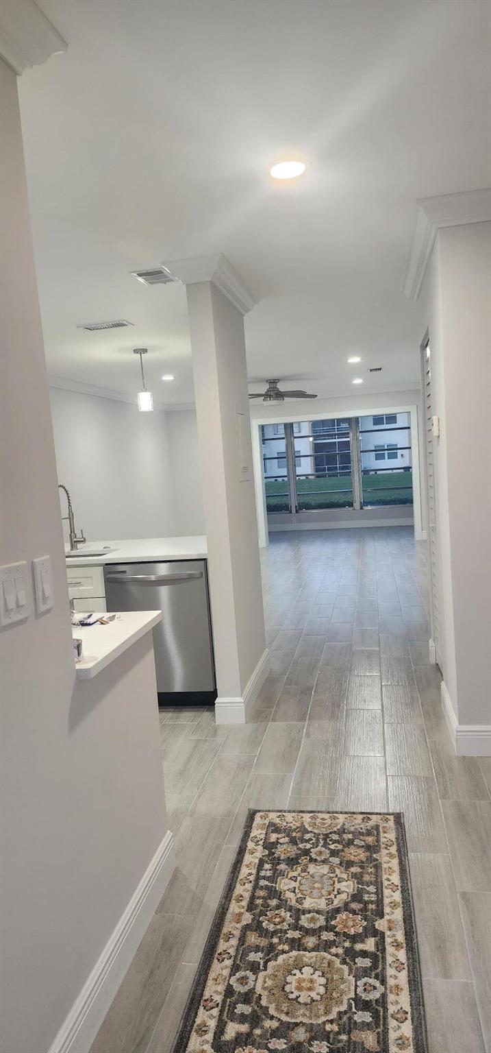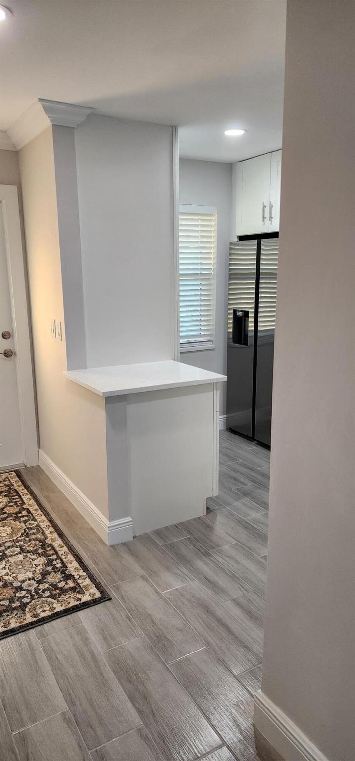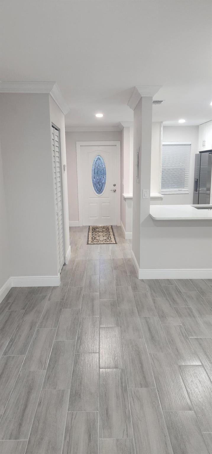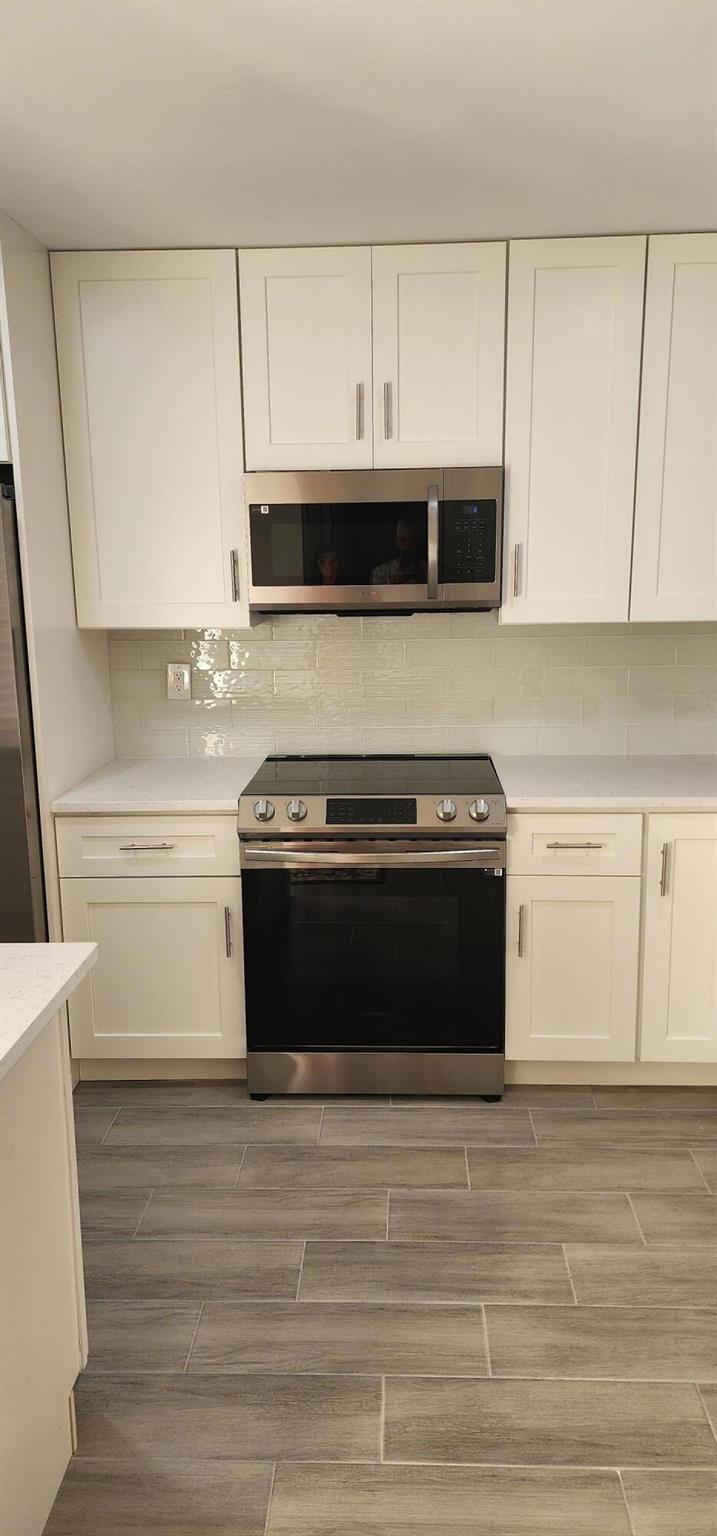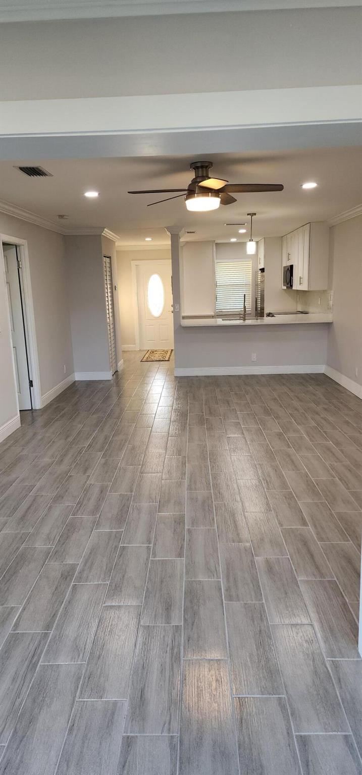 This villa has been totally renovated with a fresh modern look and feel. This villa offers ceramic tile flooring throughout the unit. Beautiful white wooden kitchen cabinets/Quartz countertop. New stainless steel kitchen appliances. The bathrooms have the latetest fixtures and barn glass doors. Hurricane impact windows throughout the unit and Hurricane shutters for the porch. Relax with a peaceful lake view from the porch. This villa is centrally located to restaurants, shopping, and Florida's Turnpike. A Courtesy bus is scheduled twice a week to transport residents for their shopping needs. The Community also offers a full time Social Director to coordinate resident activities. This gated community has 24 hour manned security. Come see it for yourself and start living the Florida Life!