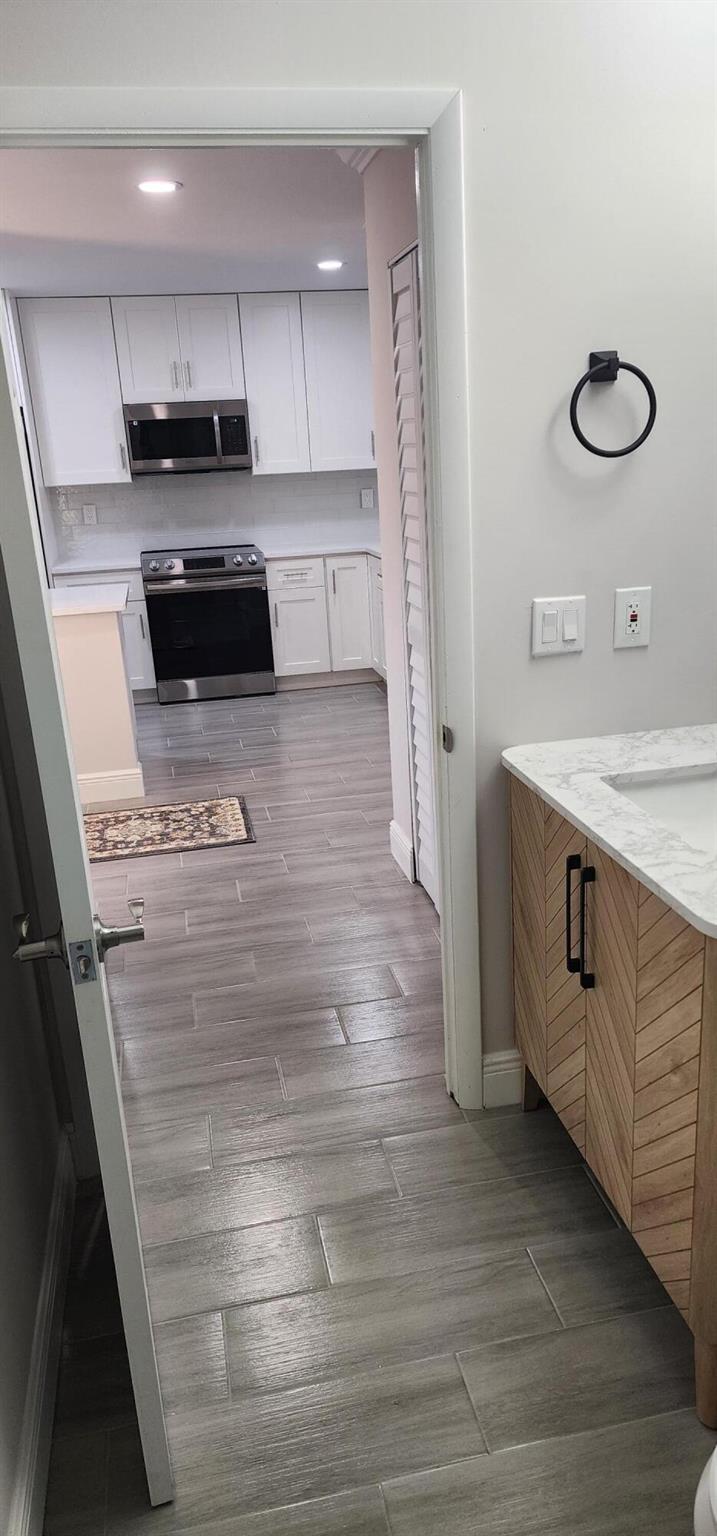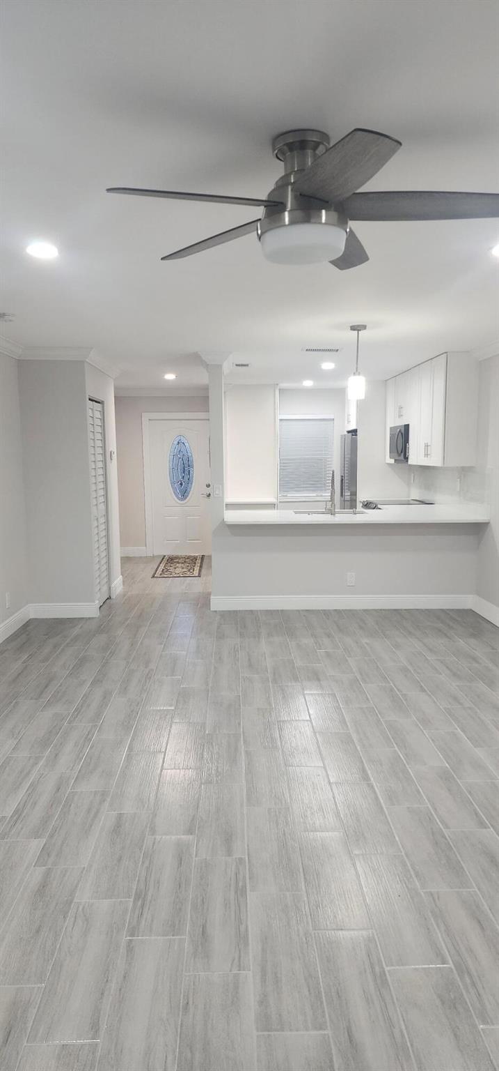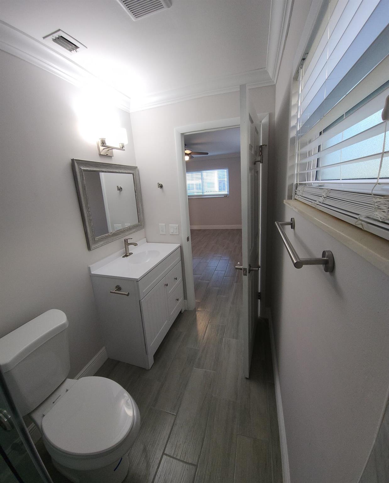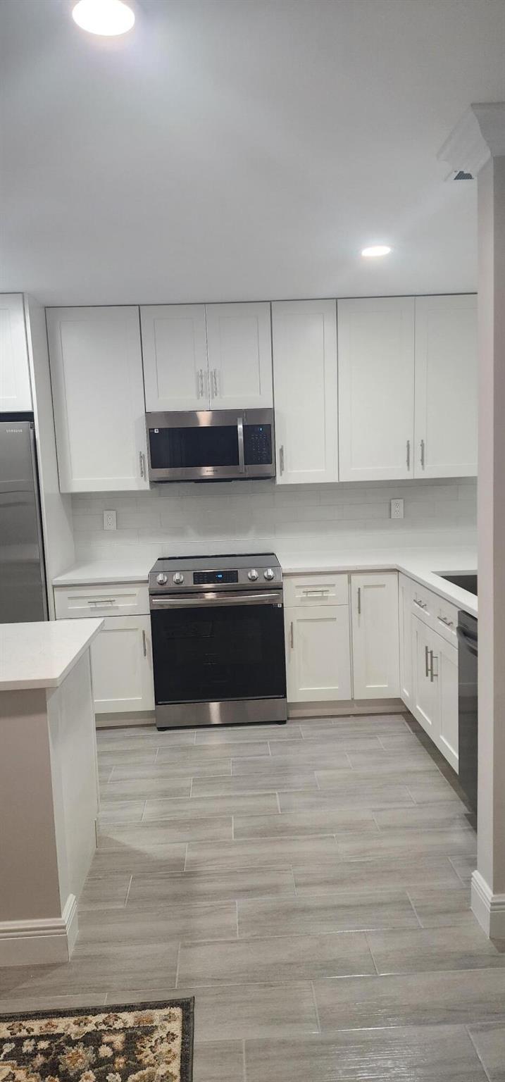 This villa has been totally renovated with a fresh modern look and feel. This villa offers ceramic tile flooring throughout the unit. Beautiful white wooden kitchen cabinets/Quartz countertop. New stainless steel kitchen appliances. The bathrooms have the latetest fixtures and barn glass doors. Hurricane impact windows throughout the unit and Hurricane shutters for the porch. Relax with a peaceful lake view from the porch. This villa is centrally located to restaurants, shopping, and Florida's Turnpike. A Courtesy bus is scheduled twice a week to transport residents for their shopping needs. The Community also offers a full time Social Director to coordinate resident activities. This gated community has 24 hour manned security. Come see it for yourself and start living the Florida Life!