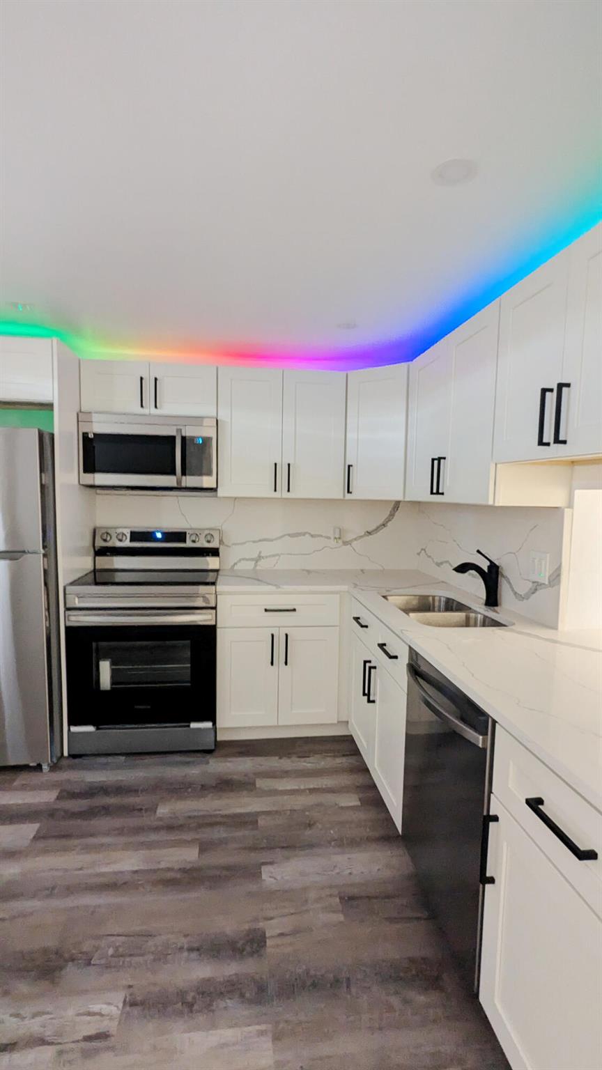 Fully renovated 2-bedroom, 2-bathroom condo at 2601 NE 3rd Ct, Boynton Beach. This home boasts a bright and airy open floor plan, complemented by new luxury flooring that flows seamlessly throughout. The brand-new kitchen is a showstopper, featuring stunning white shaker cabinets, sleek countertops with a marble-inspired design, and LED lighting that adds an extra touch of sophistication.The spacious living area leads to a serene balcony, perfect for enjoying your morning coffee while taking in lush views. The remodeled bathrooms are designed with contemporary flair, ensuring both comfort and style. Major updates, including a new water heater and electric panel, provide modern convenience and peace of mind.