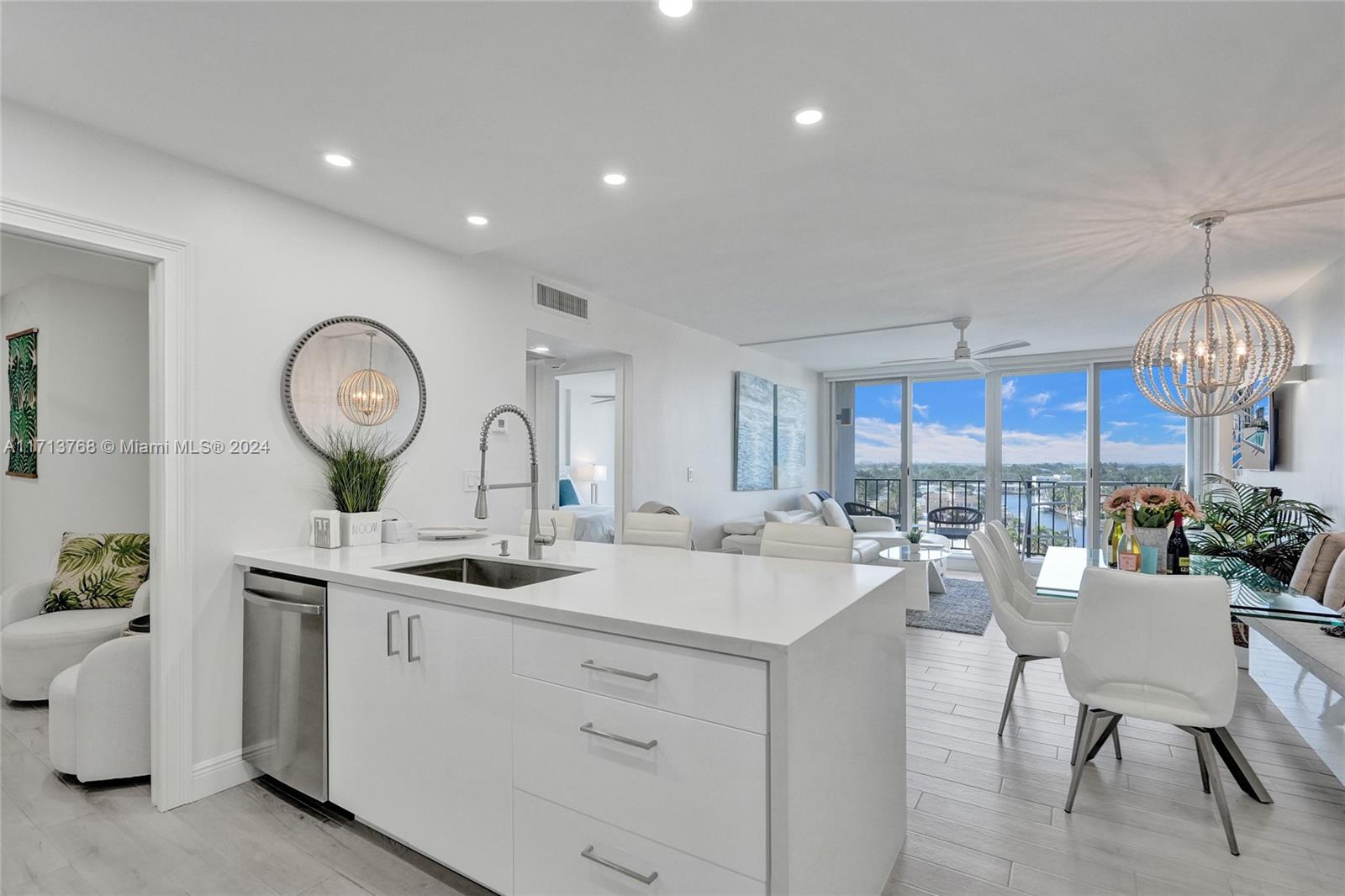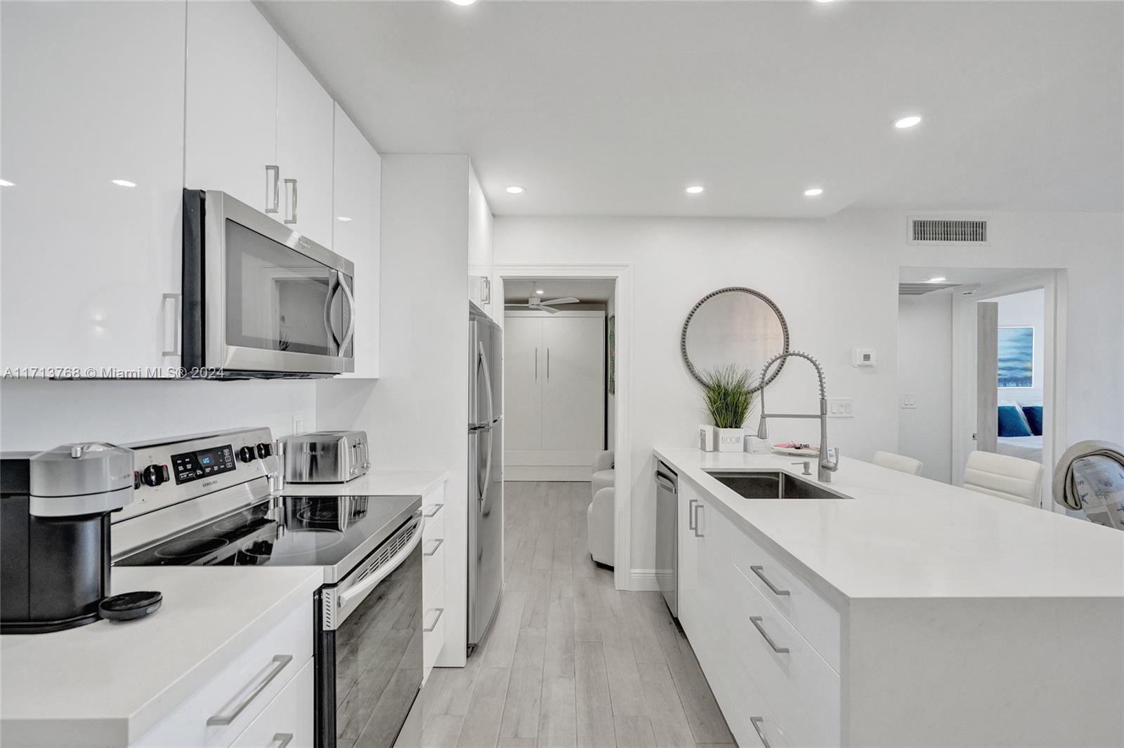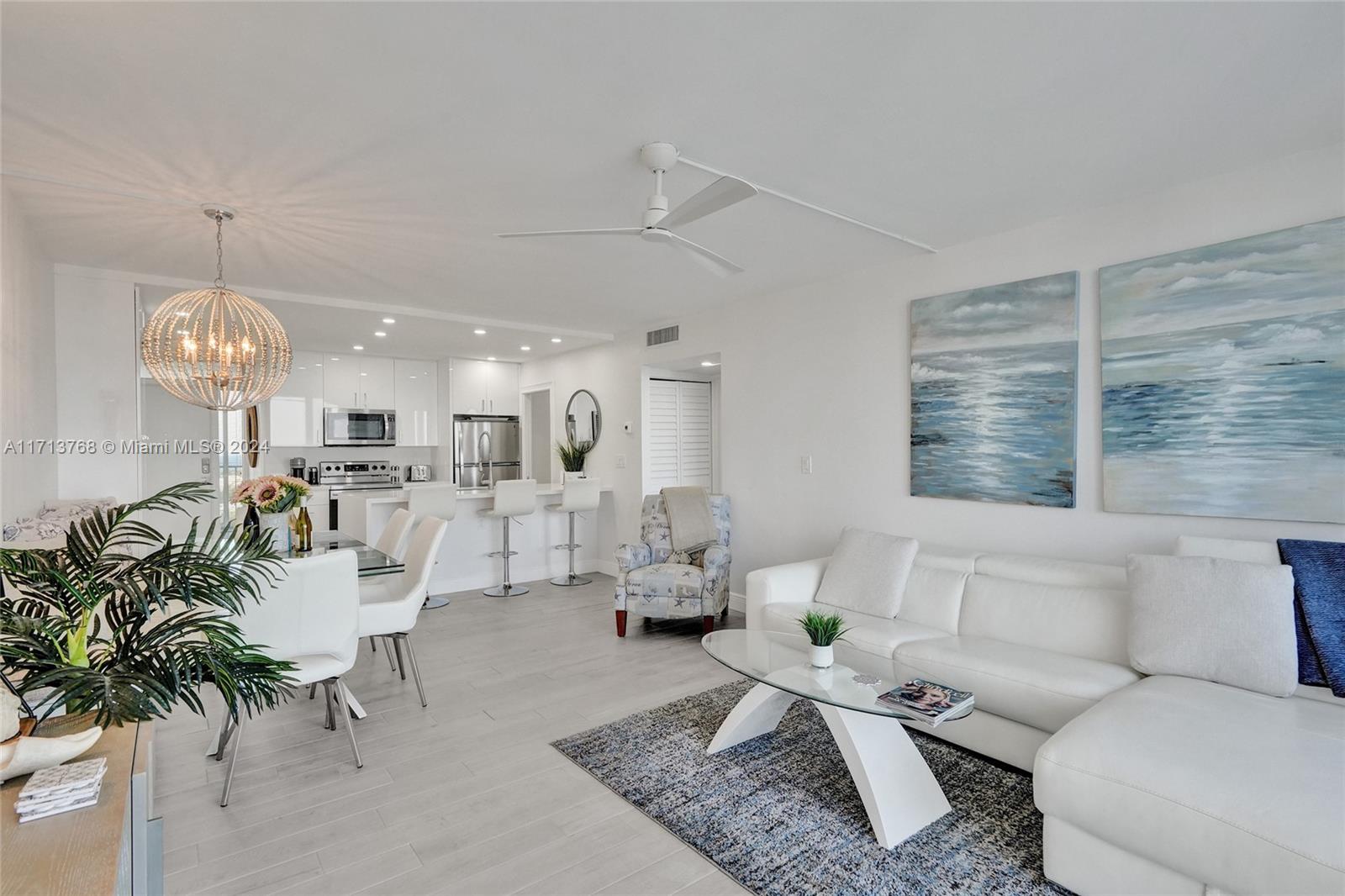 Fall in love with this beautifully renovated condo, designed for coastal living.The versatile den has been transformed into a cozy second bedroom with a Murphy bed, perfect for hosting guests. Featuring hurricane-impact windows and elegant ceramic floors throughout, this unit exudes modern style. The living room and master bedroom both boast patio doors opening to breathtaking views. The open-concept kitchen is a centerpiece, complete with stainless steel appliances and stylish finishes.Just one block from the beach, this desirable community offers incredible amenities: a waterfront pool, BBQ area, gym, clubhouse, and garage parking. Situated in a prime location close to restaurants, shopping, and entertainment, this condo blends luxury, convenience, and charm. Don’t miss out!