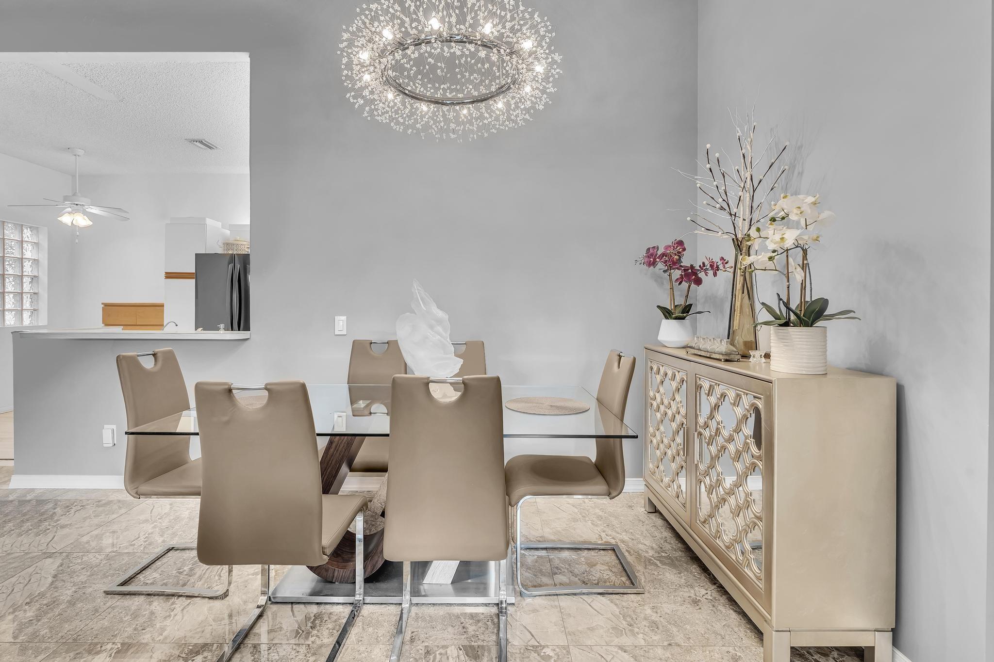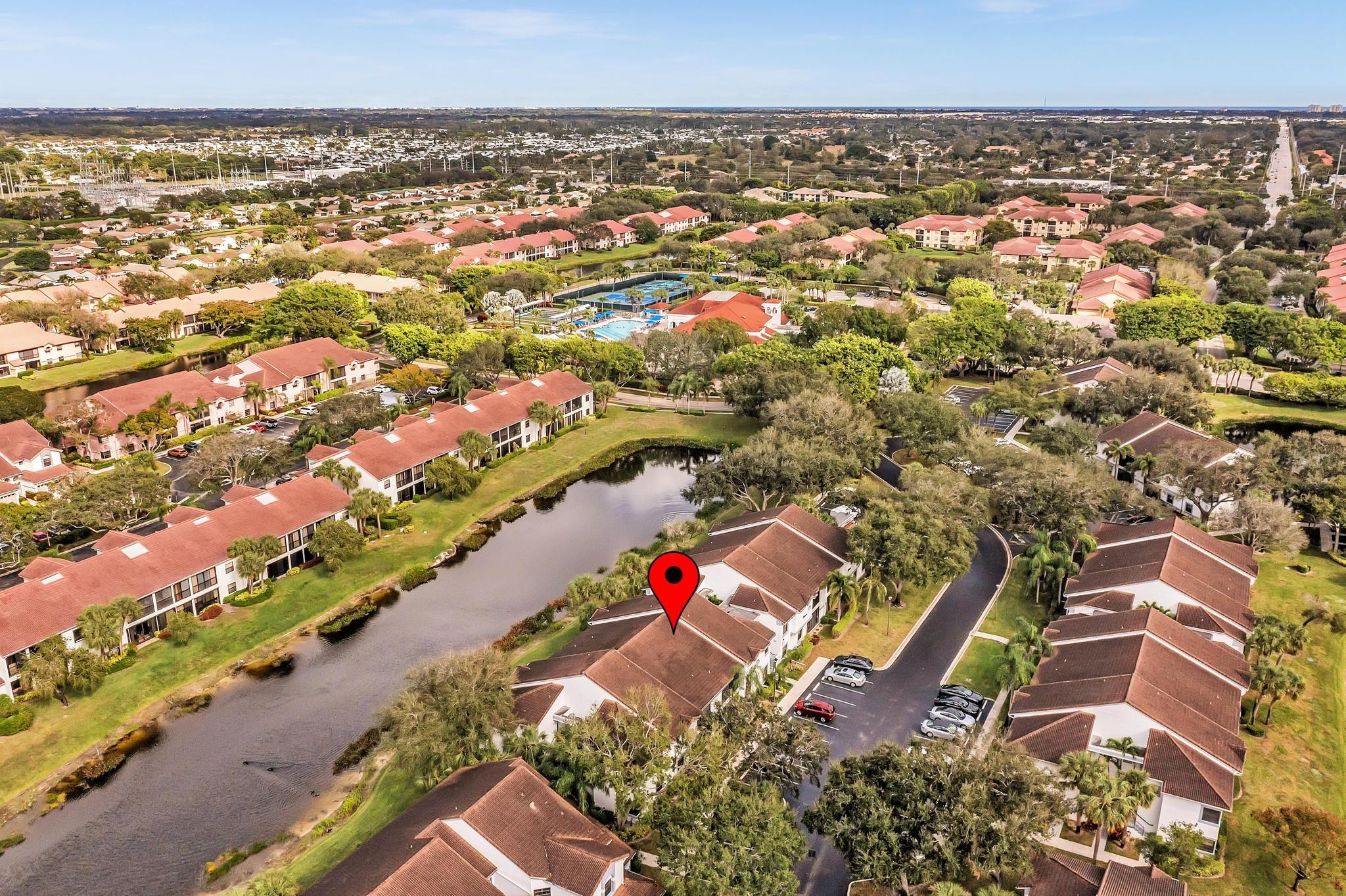 Welcome to this charming 2-bedroom, 2-bathroom second-floor unit, featuring a newer AC (2021), The home boasts stylish porcelain tiles, vinyl flooring in the bedrooms, and fresh paint with updated lighting and fans. Enjoy the convenience of an in-unit newer washer and dryer. Step outside to your private balcony, complete with newer screens and shutters, perfect for relaxation. Modern beautiful accent wall in the living room adding even more charm to this gorgeous property. Residents can take advantage of resort-style amenities, including a large pool, jacuzzi, and stunning views from a fully-equipped gym. This unit is perfect for those seeking comfort and convenience in a vibrant community! HOA fees paid quarterly.