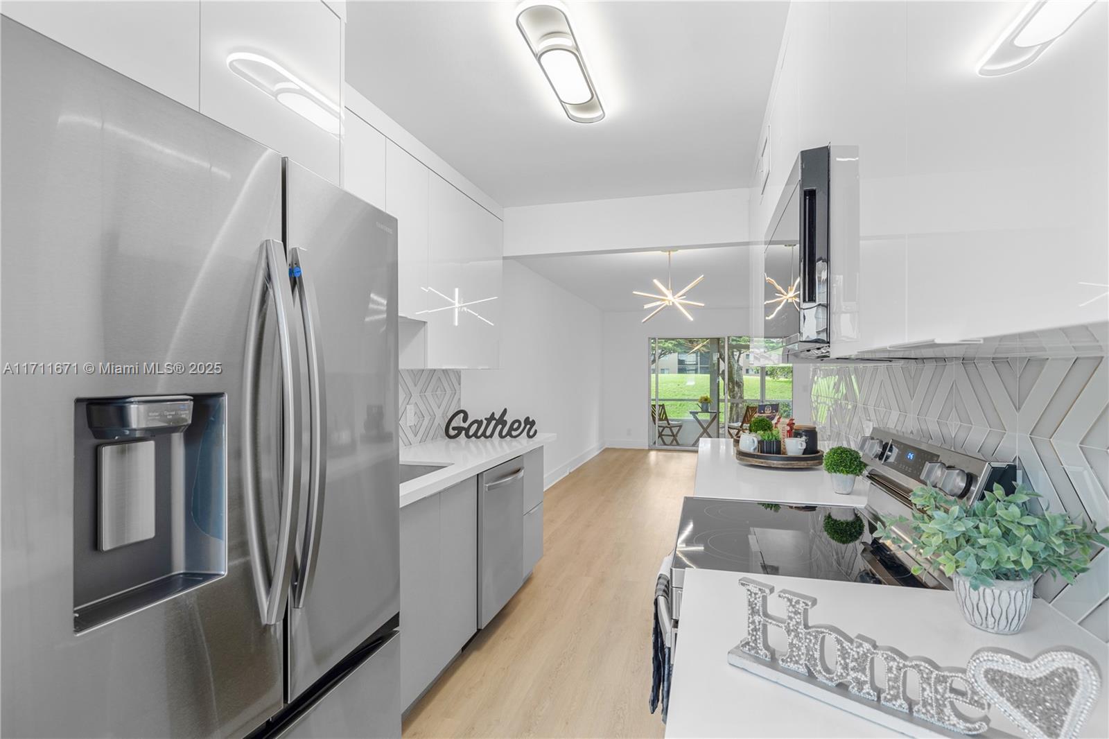 Charming Fully Remodeled Condo in Century Village, Pembroke Pines. First-floor, offering unparalleled convenience and modern elegance. Every detail has been thoughtfully updated to provide a luxurious living experience. The kitchen boasts sleek, modern cabinets that reach the ceiling, offering ample storage and a contemporary aesthetic. Brand new AC, Washer/Dryer. Stylish vinyl flooring, freshly painted, LED lighting. The bathrooms have been completely modernized. Accordion shutters. Located in Pembroke Pines, a vibrant 55+ community, residents enjoy a wealth of amenities including a golf course, swimming pools, fitness centers, and a bustling clubhouse with social activities. This condo offers easy access to shopping, dining, and entertainment, making it the perfect place to call home.