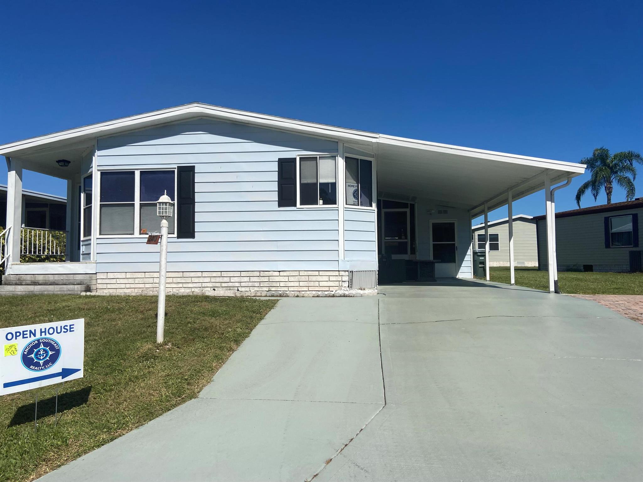Look now! Seller is motivated and considering ALL STRONG OFFERS! Here is your new home for 2026! Located in a great 55+ community with clubhouse, pool and lots of activities. This 2-bedroom, 2 bathroom offers a large custom kitchen with breakfast area, separate formal dining, a large Livingroom and a Florida room with attached shed. All appliances remain as well as TV and fireplace. Ample storage throughout. New Exterior paint and driveway sealed, new central air and breaker box. This most sought-after community is close to beaches, shopping, entertainment, sporting activities and fishing! LOW LAND LEASE!! Call today to schedule your private showing and relax in 2026! Call ME today for application!