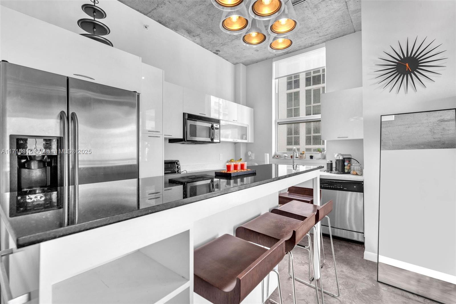 STUNNING SOUTH-FACING CORNER UNIT WITH GORGEOUS WESTERN VIEWS! This stylish 2-bedroom, 2-bathroom residence on the 25th floor features a modern open floor plan, 10-ft high ceilings, and sleek polished concrete floors. Being sold partially furnished, including custom-made desks and beds in both bedrooms—move-in ready! Currently rented until March, this unit is an excellent income property with strong rental potential. Enjoy a well-managed building with strong reserves and low condo fees. Fees include Wi-Fi, cable, water, trash, and 24-hour security. Amenities include a rooftop pool, lap pool, gym with panoramic views, club room, sauna, and hot tub. Optional garage parking for $60/month. Located in a vibrant neighborhood with trendy cafes—perfect for modern living!