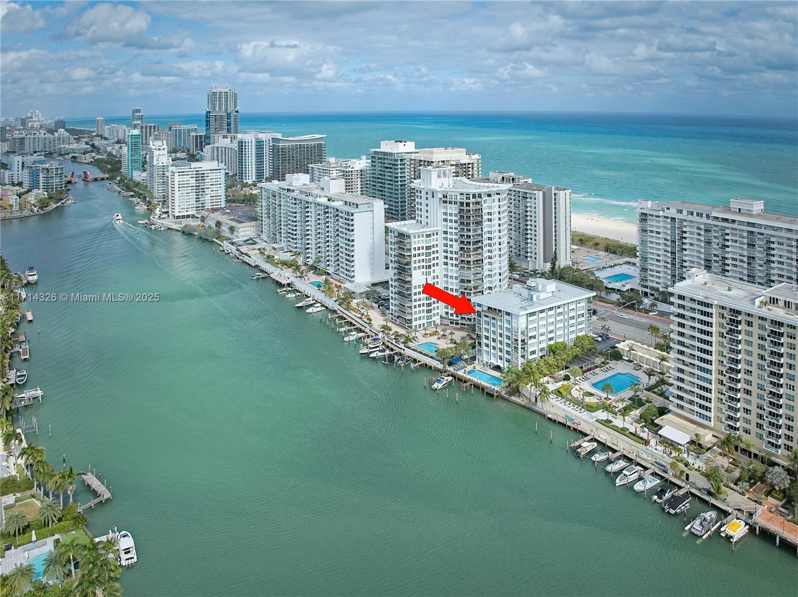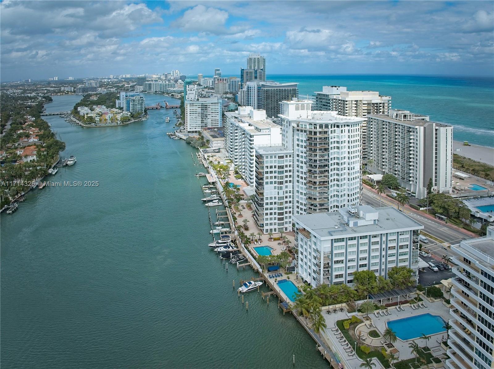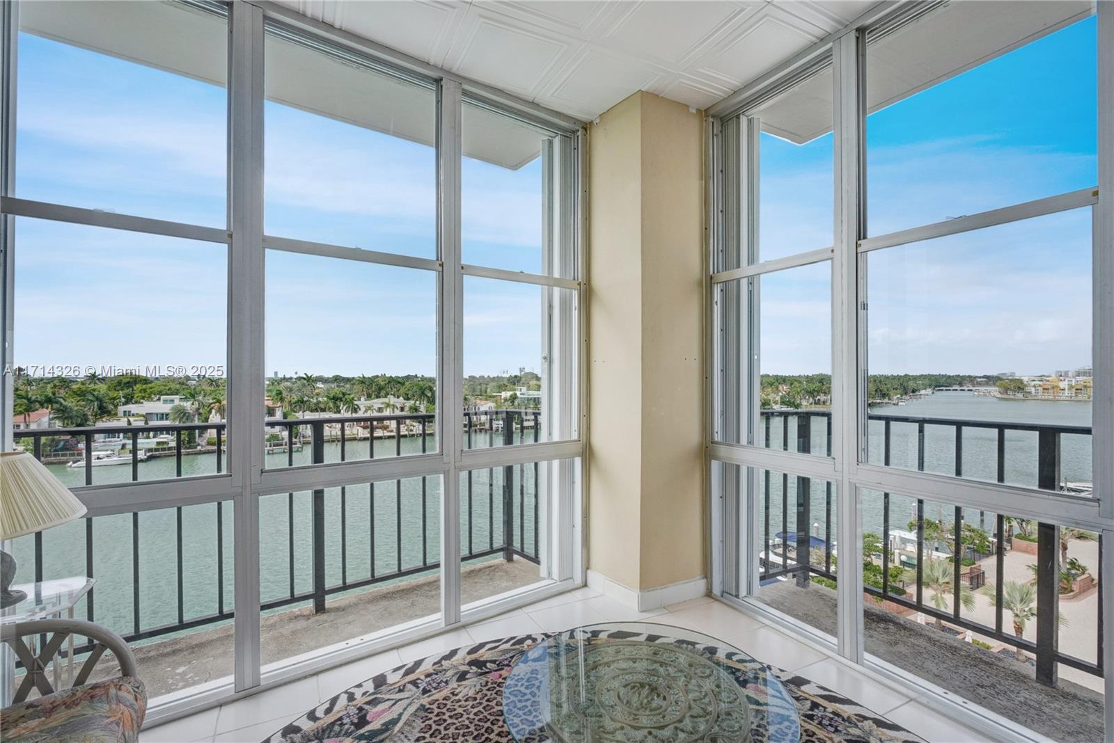 Spectacular Ocean and Intracoastal Views from Exclusive Corner Unit on Millionaire's Row in Indian Creek Located on prestigious Millionaire's Row. This residence was loved and used sparingly by the same family for over 35 years. Offering sweeping vistas of multi-million-dollar estates along the Intracoastal, the glassed-in balcony, living room, and dining room provide the perfect backdrop for both sunrises & sunsets. It is only 1 of 2 units with enclosed balconies, the HOA will allow it to be converted back to an open balcony. With only 27 units in the building & just 4 condos per floor, this boutique building offers unparalleled privacy. The building is financially and structurally sound, 50-year cert, reserve study, and structural reports are completed. Boatslips are available for lease.