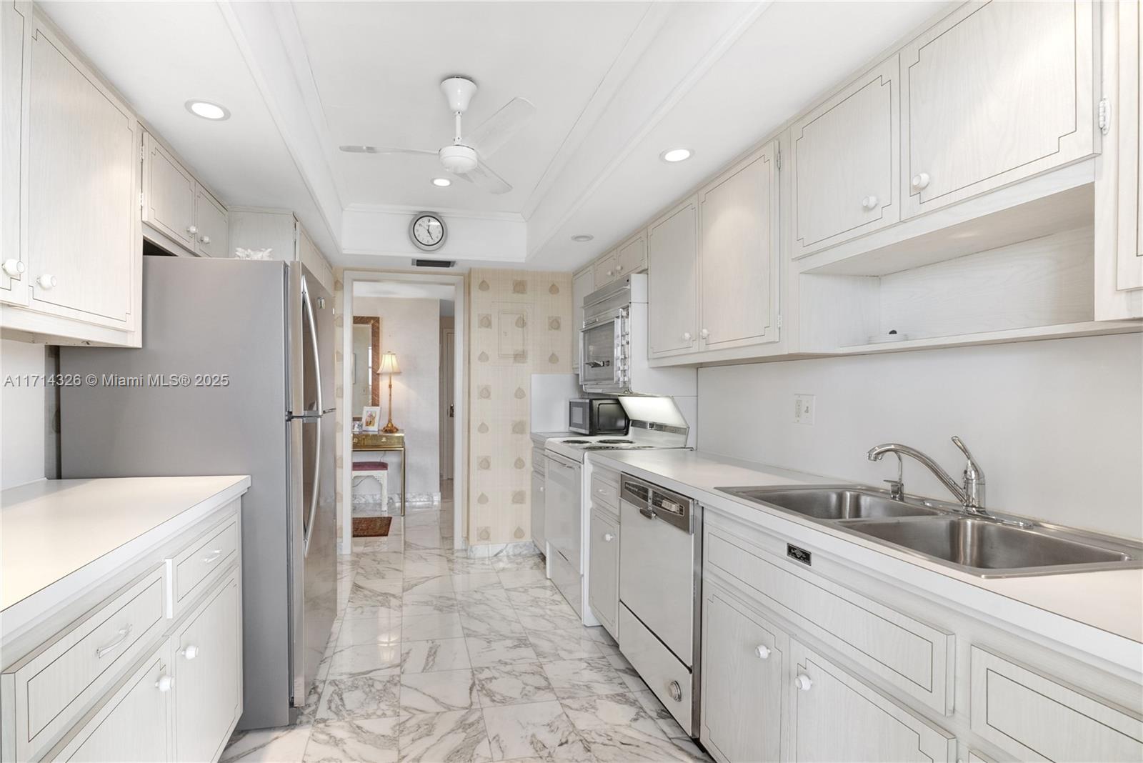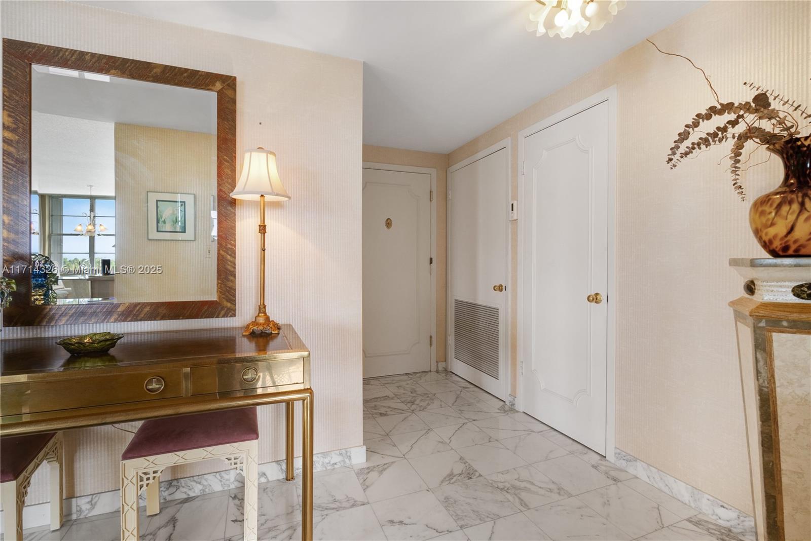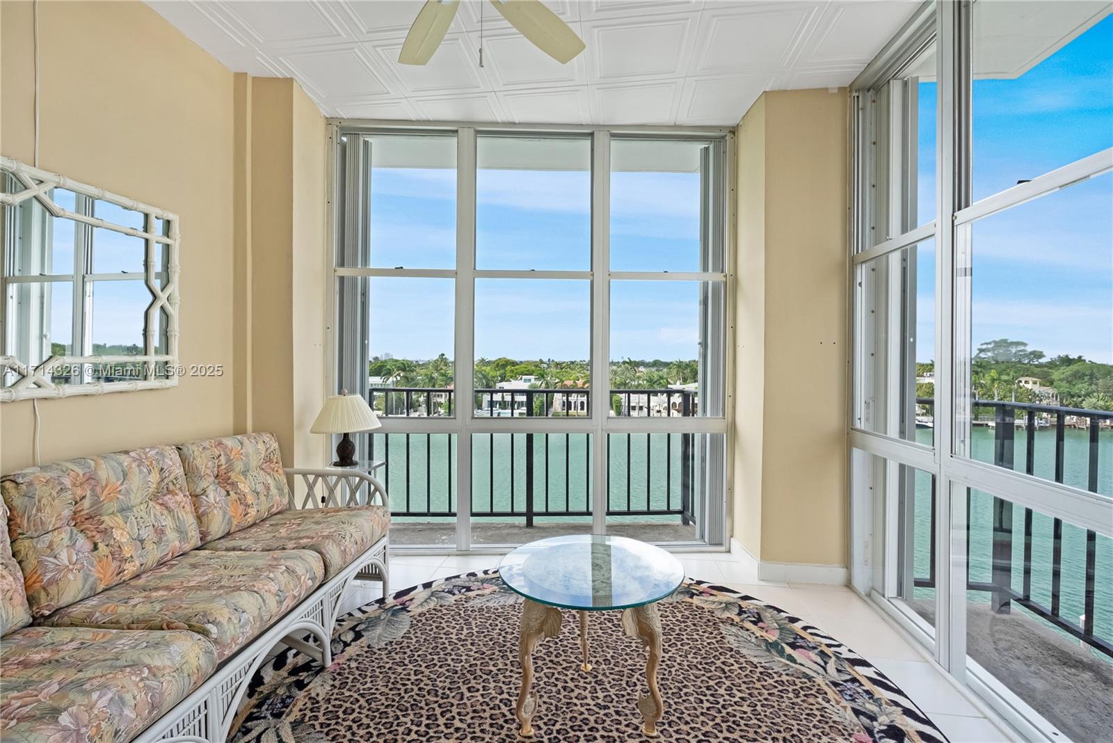 Spectacular Ocean and Intracoastal Views from Exclusive Corner Unit on Millionaire's Row in Indian Creek Located on prestigious Millionaire's Row. This residence was loved and used sparingly by the same family for over 35 years. Offering sweeping vistas of multi-million-dollar estates along the Intracoastal, the glassed-in balcony, living room, and dining room provide the perfect backdrop for both sunrises & sunsets. It is only 1 of 2 units with enclosed balconies, the HOA will allow it to be converted back to an open balcony. With only 27 units in the building & just 4 condos per floor, this boutique building offers unparalleled privacy. The building is financially and structurally sound, 50-year cert, reserve study, and structural reports are completed. Boatslips are available for lease.