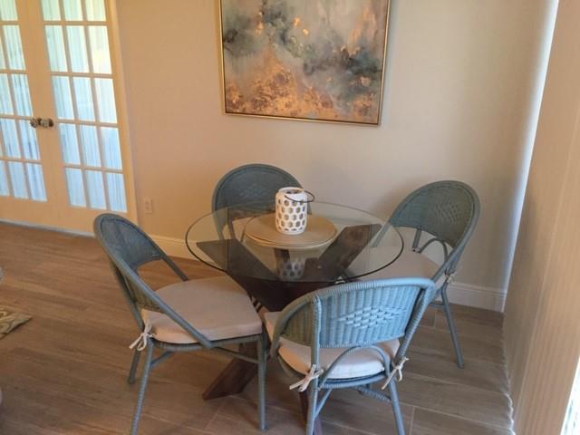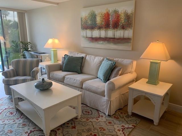 Beautiful TOTALLY Updated condo on the first floor. No stairs to Climb ! The patio has been enclosed for additional interior AC area. This Unit comes COMPLETELY FURNISHED ! TURN KEY !! EVERYTHING you see in the unit comes with the sale and includes all pots, pans, towels, bed, sofa, sheets, art work, beach chairs, small electrical appliances, cooler etc.. This unit can be rented IMMEDIATELY with a minimum of 7 days. View is of the putting green. Next to the NEW Clubhouse and VERY Close to the Ocean. Closest condo within walking distance to the Main pool, Tiki Bar, Restaurant, 1st golf tee and tennis courts. New roof 2023. There's a 9 hole executive golf course, 10 lighted tennis courts, 4 heated pools, jacuzzi, pool side Tiki and Ocean front dining on premise. Washer and Dryer in Unit.