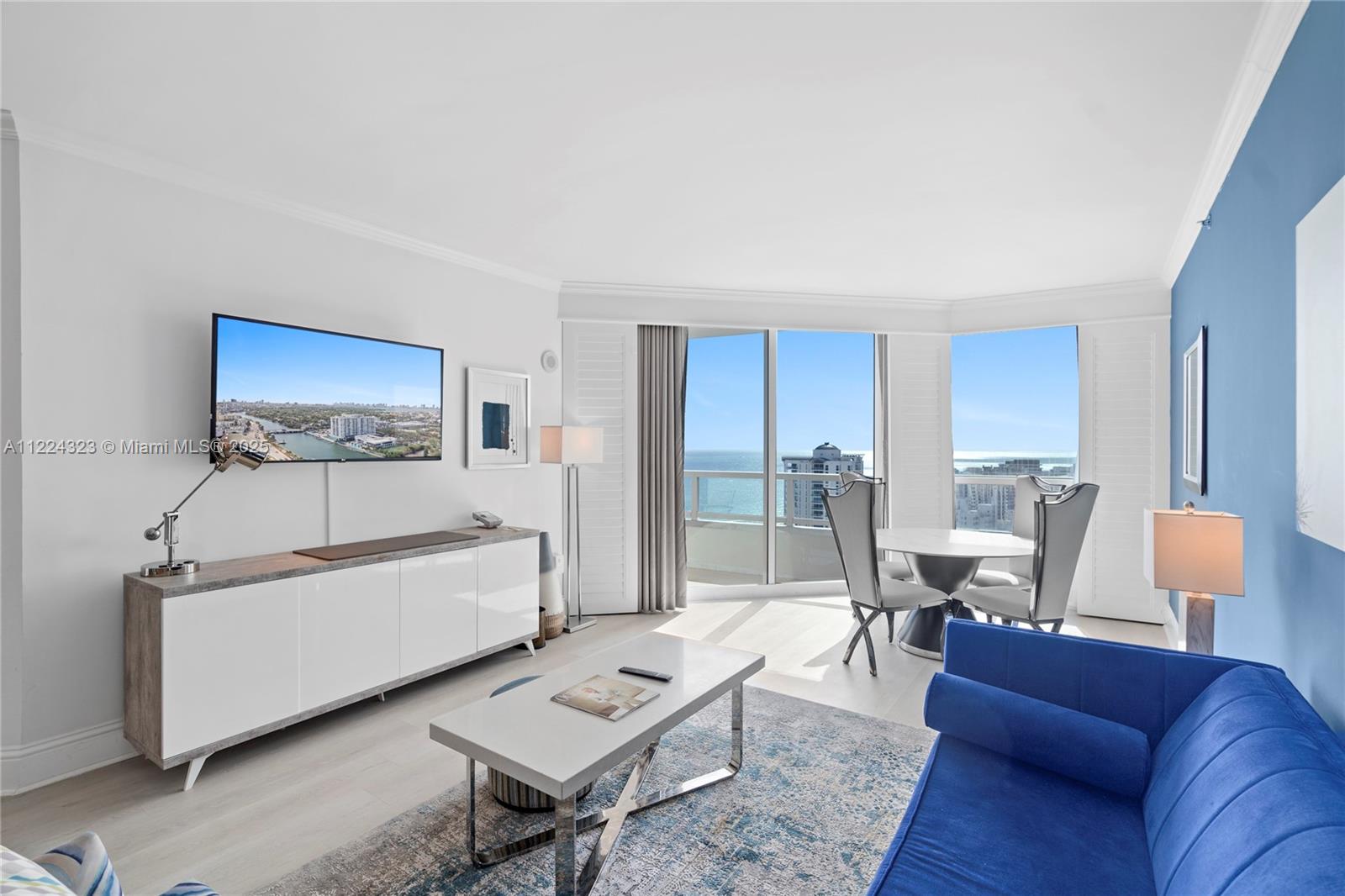 Indulge in spectacular southern-facing views of the ocean, bay, and intracoastal from this exquisite 2-bedroom, 3-bathroom unit in Fontainebleau II. This beautifully designed double unit includes a private entrance foyer, two balconies, and turnkey furnishings, featuring two king beds, two sleeper sofas, a fully equipped kitchen, and a washer/dryer. Enjoy full-service, vacation-style living! The Fontainebleau resort offers luxury amenities on 22 oceanfront acres, including award-winning restaurants, LIV night club, Lapis spa, and state-of-the-art fitness center. Maintenance includes: AC, local calls, electricity, valet + daily free breakfast in the owner’s lounge. Please click the virtual tour link to see a video of the property & contact me directly for more info.