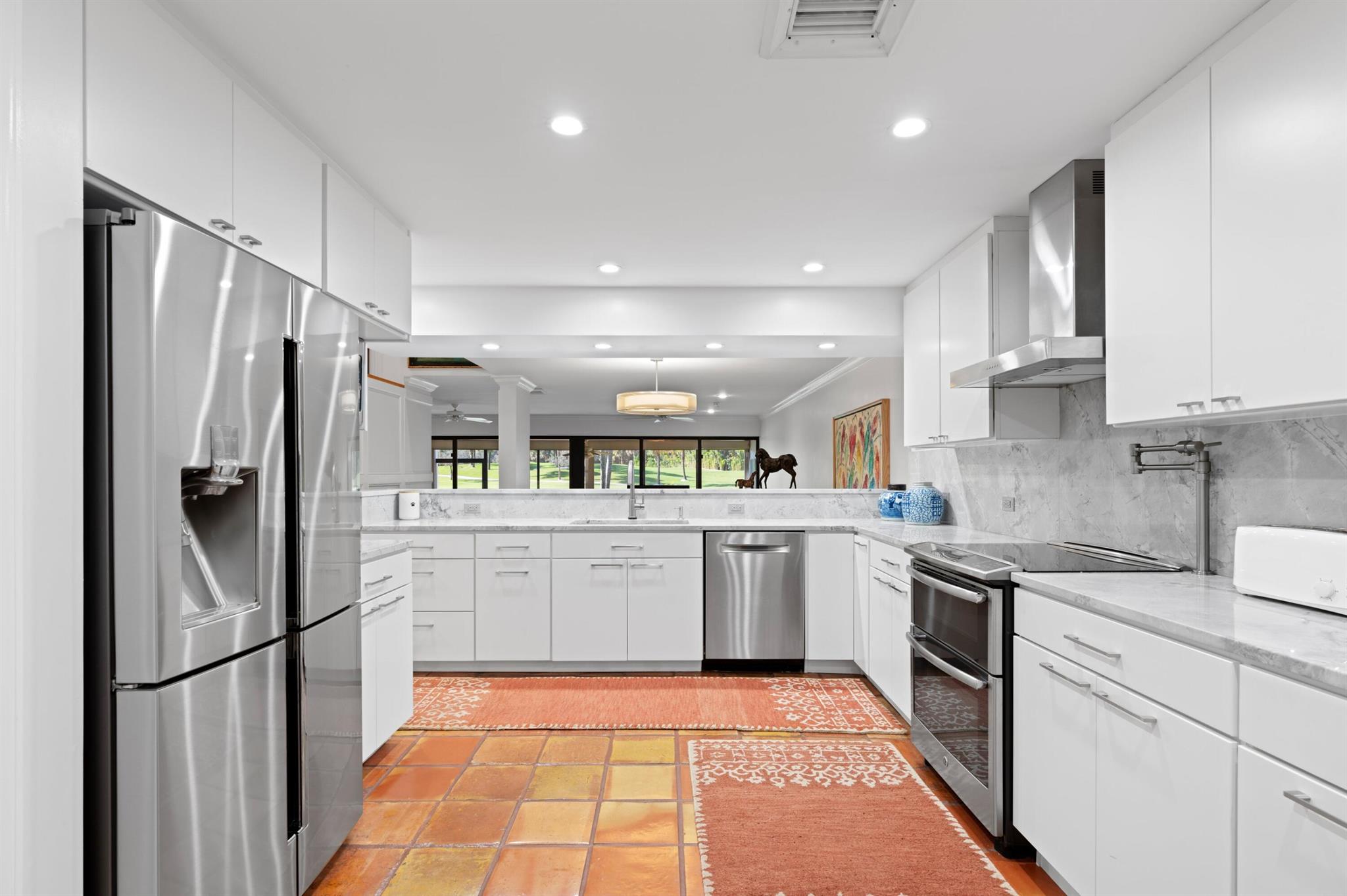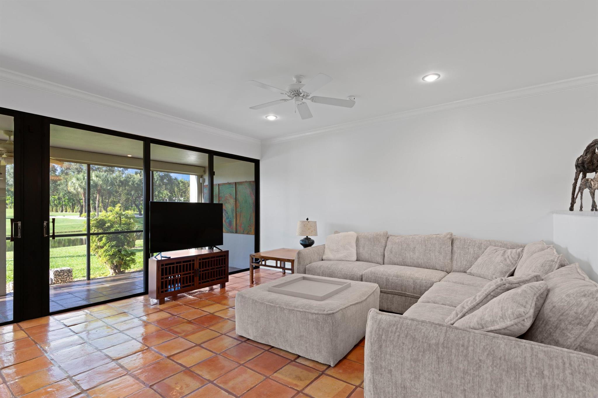 Showstopper!! Come and be captivated by this stunning townhome offering breathtaking golf course and serene lake views. Nestled in a tranquil neighborhood, this home combines elegance with nature's beauty. The open concept design maximizes natural light, highlighting spacious living areas and large windows that frame picturesque outdoor scenes. Enjoy relaxing on one of two patios or entertaining guests while overlooking some of the most sought after views in the county. With modern finishes, a gourmet renovated kitchen, and a luxurious master suite, this is the ideal retreat for those seeking comfort, style, and incredible vistas. All big ticket items 2020-2024. Electric accordion hurricane shutters throughout for convenience and safety. No assessments. Truly one of a kind. A must see!