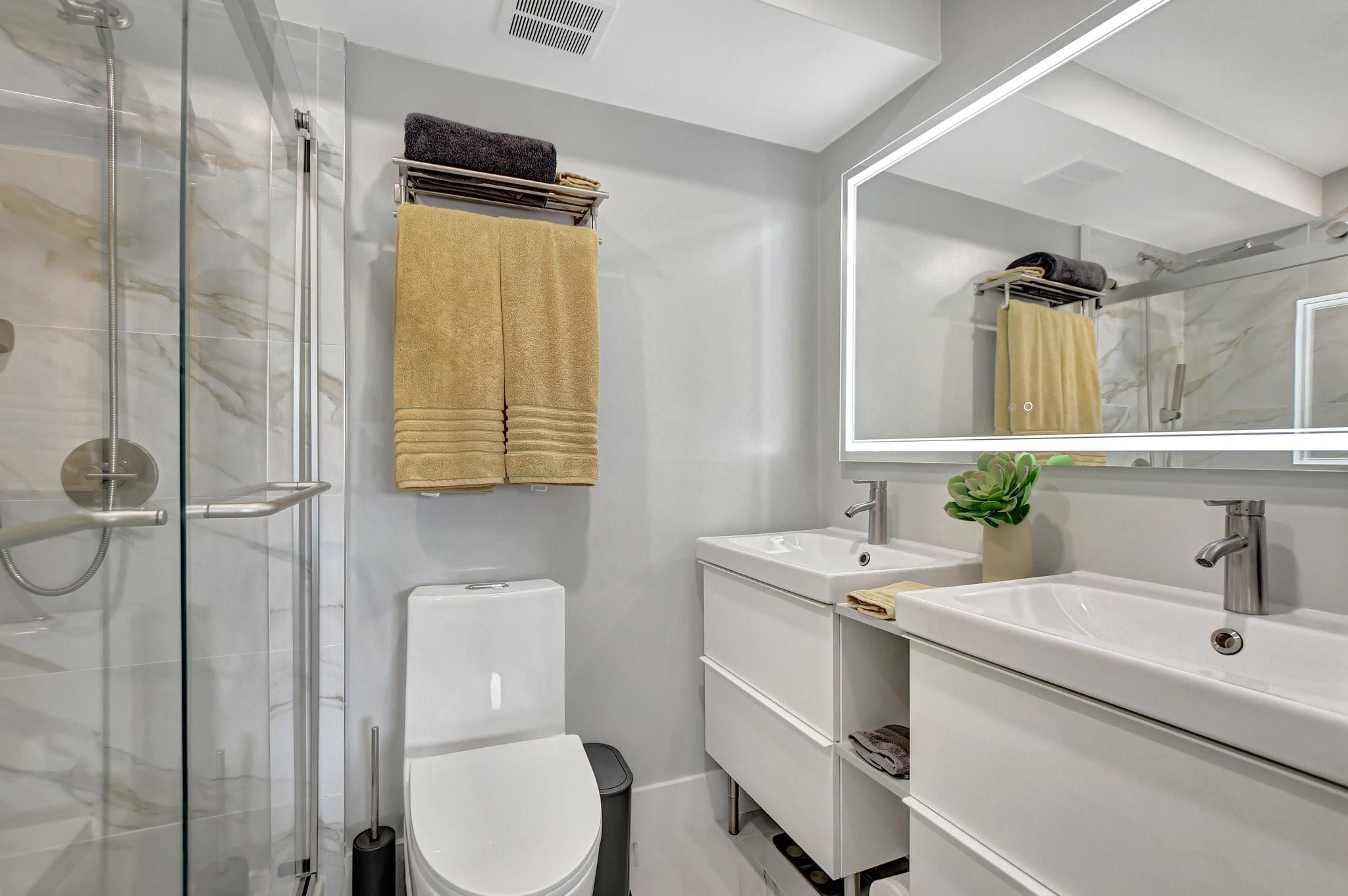 PENTHOUSE STYLE FULLY RENOVATED AND RARE FIND, 3RD FLOOR UNIT WITH MAGNIFICENT LAKE VIEW IN THE MOST DESIRABLE ARE OF CENTURY VILLAGE EAST!! This beautiful fully renovated and remodeled unit is one in a million in the community, open concept kitchen with custom cabinetry and quartz countertop and bar. New Stainless Steel appliance. Master Bedroom extended into patio, increasing square footage, with panoramic windows for view of the entire lake. Hurricane impact windows throughout. Close to the club house and shops. Century Village East has an array of amenities including clubhouse, theater, tennis court, indoor/outdoor pickleball courts, game rooms, courtesy shuttle and SO MUCH MORE!!!
