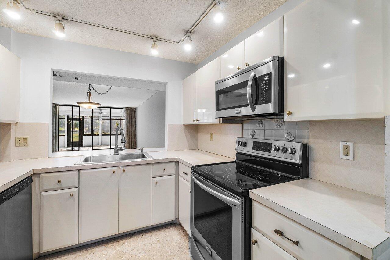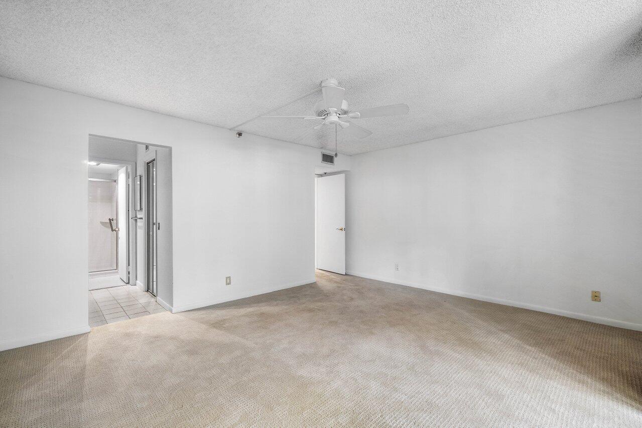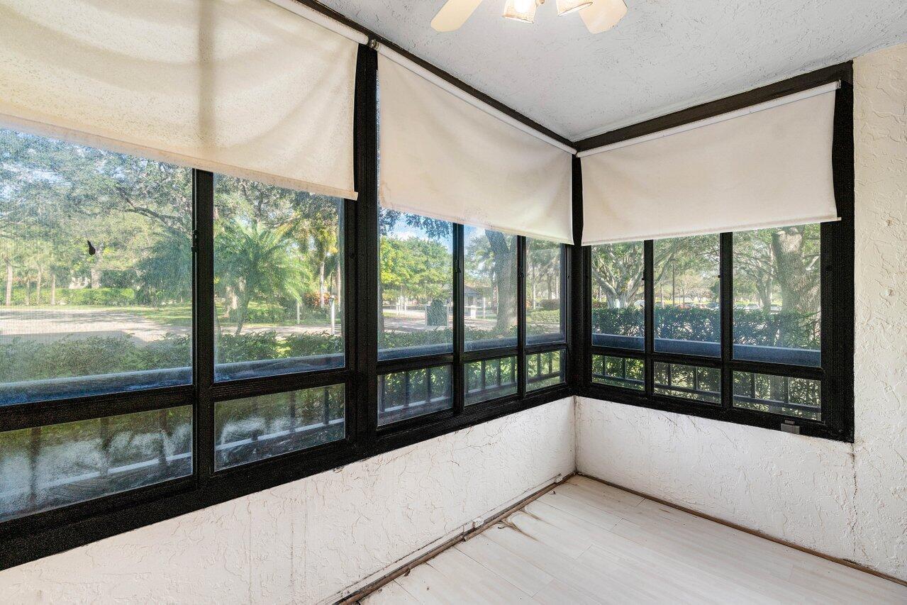 Welcome to this beautifully maintained first-floor corner condo located in the sought-after 55+ community of The Glens in Central Boca Raton. This spacious home offers a perfect blend of comfort and convenience, featuring a combination of tile and carpet flooring throughout. The inviting living area is filled with natural light, creating a warm and welcoming atmosphere. The well-appointed kitchen comes complete with a large pantry and stainless-steel appliances. The primary suite is a true retreat, boasting a generously sized walk-in closet with built-in shelving and an ensuite bathroom, plus an enclosed patio. The split-bedroom layout ensures privacy for both residents and guests. This home also features a walk-in laundry room with ample storage space. The large open dining and living