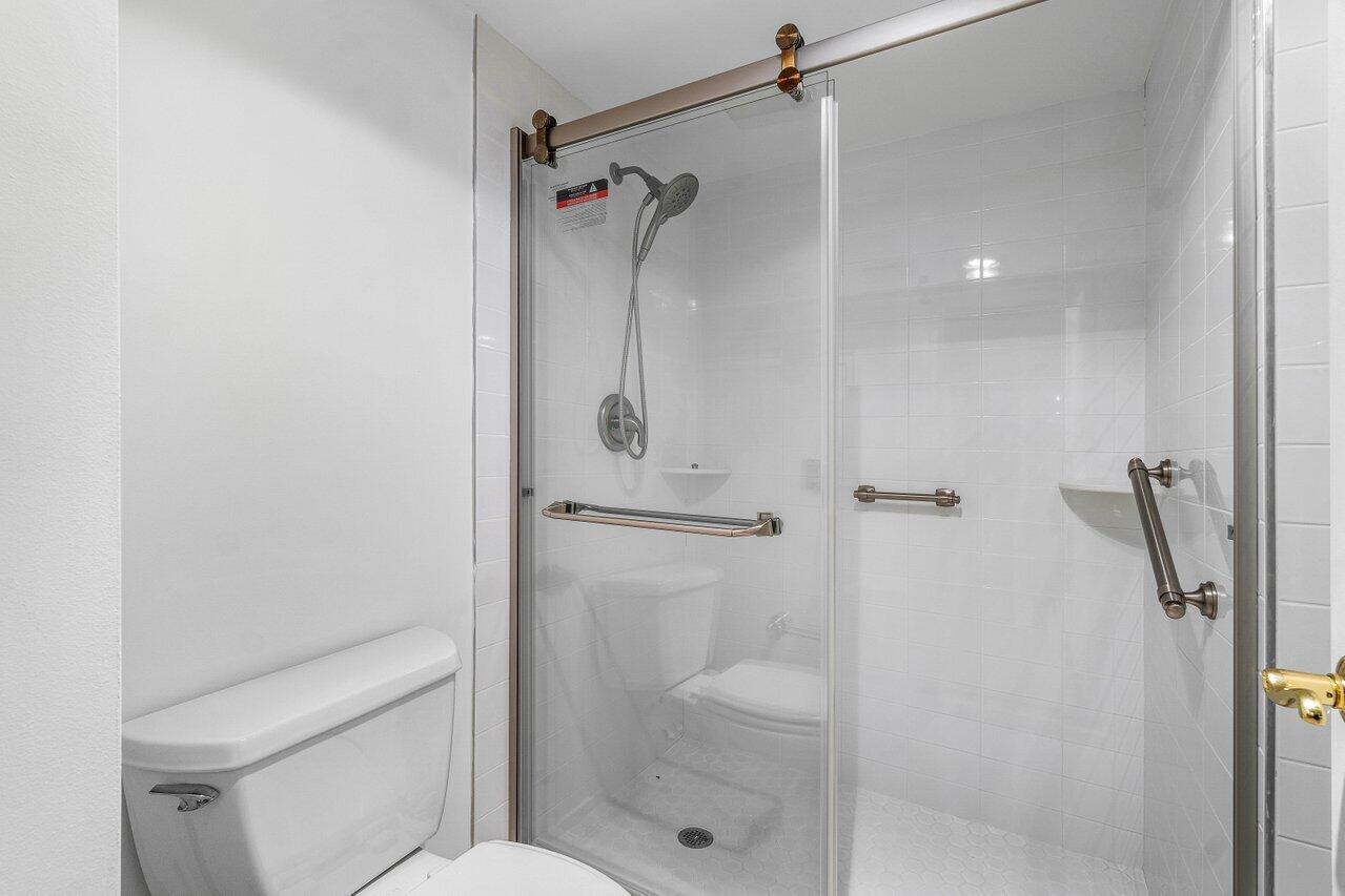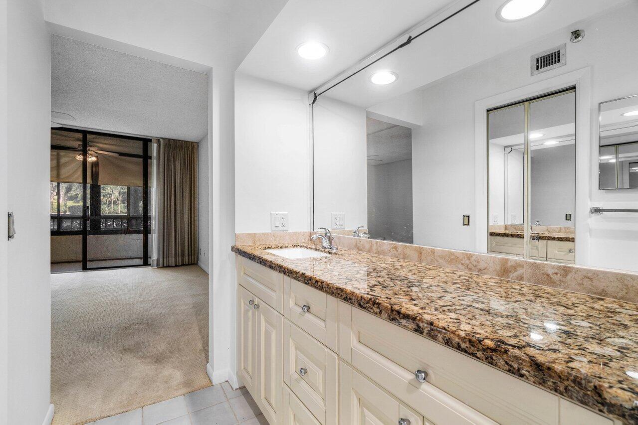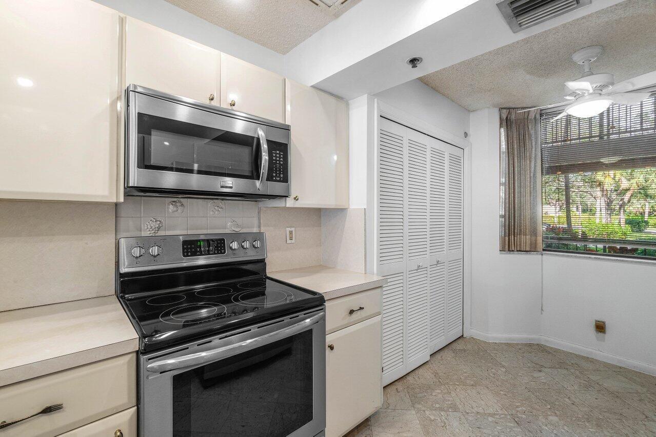 Welcome to this beautifully maintained first-floor corner condo located in the sought-after 55+ community of The Glens in Central Boca Raton. This spacious home offers a perfect blend of comfort and convenience, featuring a combination of tile and carpet flooring throughout. The inviting living area is filled with natural light, creating a warm and welcoming atmosphere. The well-appointed kitchen comes complete with a large pantry and stainless-steel appliances. The primary suite is a true retreat, boasting a generously sized walk-in closet with built-in shelving and an ensuite bathroom, plus an enclosed patio. The split-bedroom layout ensures privacy for both residents and guests. This home also features a walk-in laundry room with ample storage space. The large open dining and living