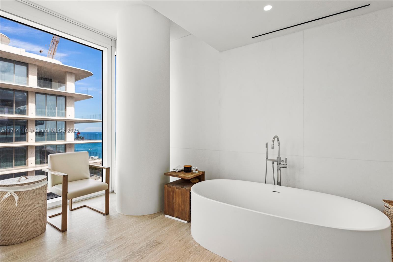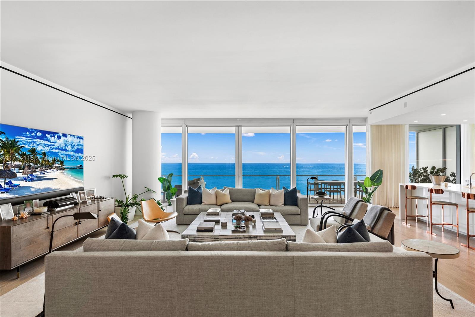 Timeless Elegance of the historic Surf Club and the modern architecture of Pritzker Award-winning architect Richard Meier. This ultra-high-floor NE Corner unit boasts 5,321 interior sq. ft. with over 1,600 sq. ft. on its Ocean Front wraparound balcony (10-11 ft. deep). Enjoy this East-West flow-through unit with 5 Bedrooms, 6.5 Bathrooms, Full Staff Quarters, an Office, and a Crestron Full Smart Home system. The kitchen features Boffi cabinets, Meile appliances, and a Sub-Zero refrigerator. Life at The Surf Club extends beyond the stunning unit. Relish award-winning dining at The Surf Club Restaurant by Thomas Keller, Lido Restaurant, 4 pools, the famed Champagne Bar, a 5-star spa, in-room dining, housekeeping, 24-hour concierge, and 2 dedicated parking spots.