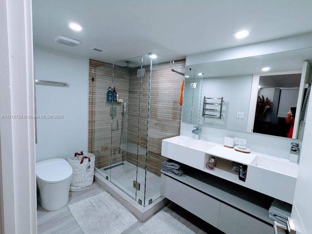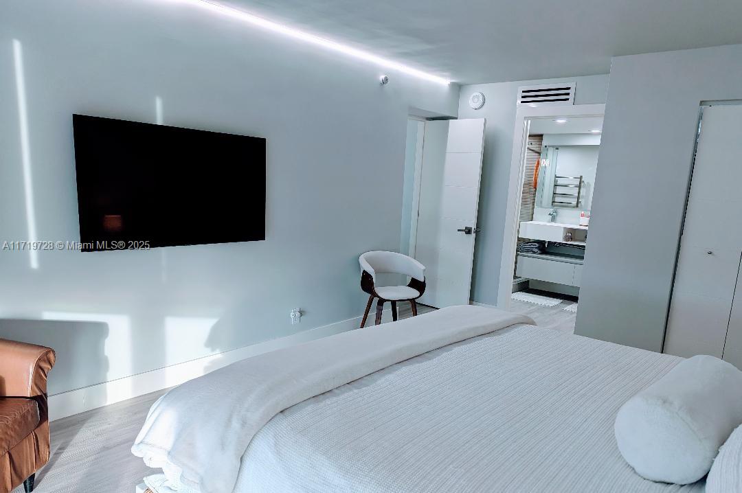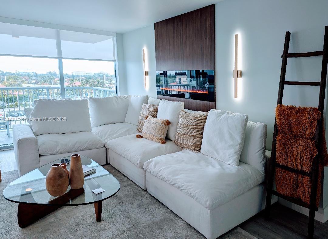 Unique floor plan fully renovated to perfection! Luxury 2/2+den, balcony, open concept living, dining, white quartz kitchen counters, top of the line s/s appliances, decorative fireplace & Ruvati sink. Big master bedroom, walking closets, electric blinds & 2 full baths w/smart toilets. 3rd room w/closet ideal as a small guest bedroom/office. Enjoy amazing views & sunsets of SOBE/Downtown skyline & the bay from this modern, oceanfront building w/floor to ceiling high impact windows, walking distance to Lincoln Rd mall, Faena/Hotel 1 fine dining & vibrant SOBE entertainment. Building includes 24/7 concierge, pool, gym, sauna, social rooms, laundry p/floor, private access to ocean & boardwalk. Quarterly maintenance includes WIFI, cable, hot/cold water, extermination ss & 1 prkng. MUST SEE!!!