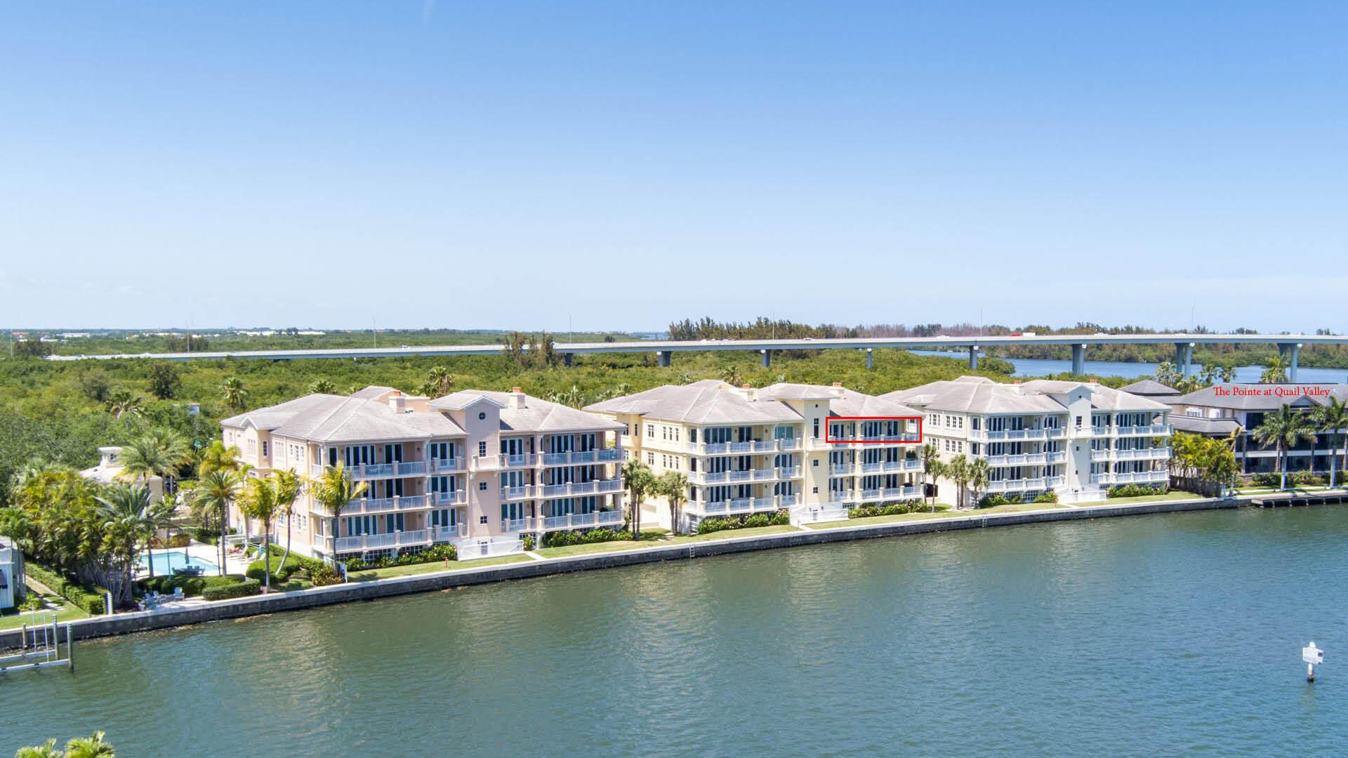 RARELY AVAILABLE! 3,500 sq ft riverfront Penthouse condo next to the Pointe at Quail Valley. Indulge in luxury living with panoramic views of the Intracoastal waters. The elevator whisks you away, delivering you directly to your private foyer, where sophistication meets convenience. This opulent residence features 3 bedrooms, 3 1/2 baths, living room, dining room, family room, and island kitchen each meticulously designed to provide the utmost comfort and style. Relax on your expansive balcony and watch the dolphins frolic, the boats cruise, and the birds soar by. Sizes approx. subj to error.Close