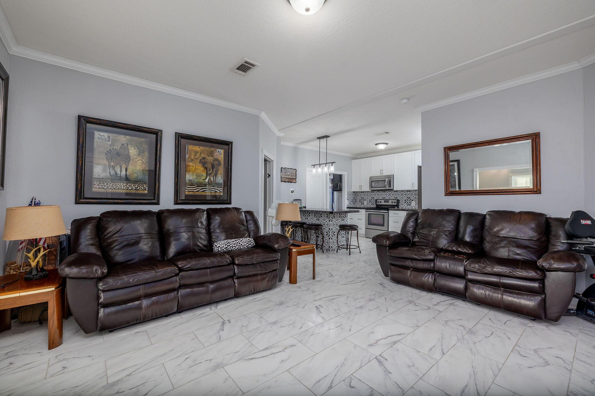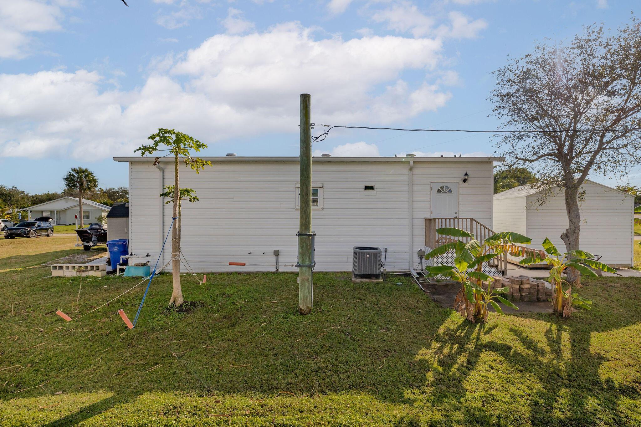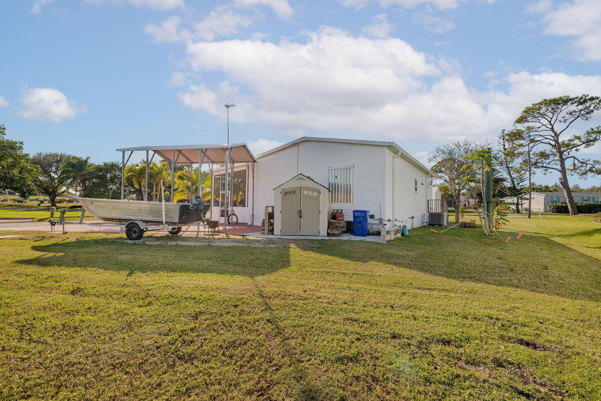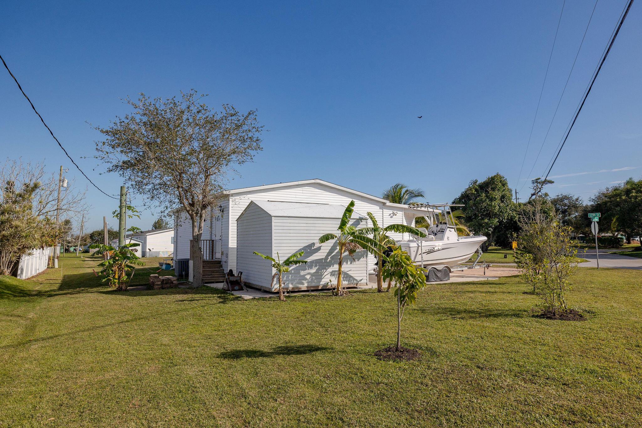 Discover this charming 2-bedroom, 2-bathroom home ideally located near the Indian River Lagoon and just minutes from the beaches! This unique community features a Community dock where homeowners can fish or keep a small boat, and two boat ramps are less than 7 minutes away for added convenience. Unlike many manufactured properties in the area, this home does not have a land lease--the land is owned. Enjoy the freedom of no HOA, allowing you to park your boat, RV, or other toys with ease. You're also within walking distance to the river and close to waterfront dining, shopping, and entertainment. Additional highlights include a 2016 roof, 2016 A/C, and a spacious yard with a shed for extra storage. Don't miss this fantastic opportunity to embrace the Florida lifestyle!