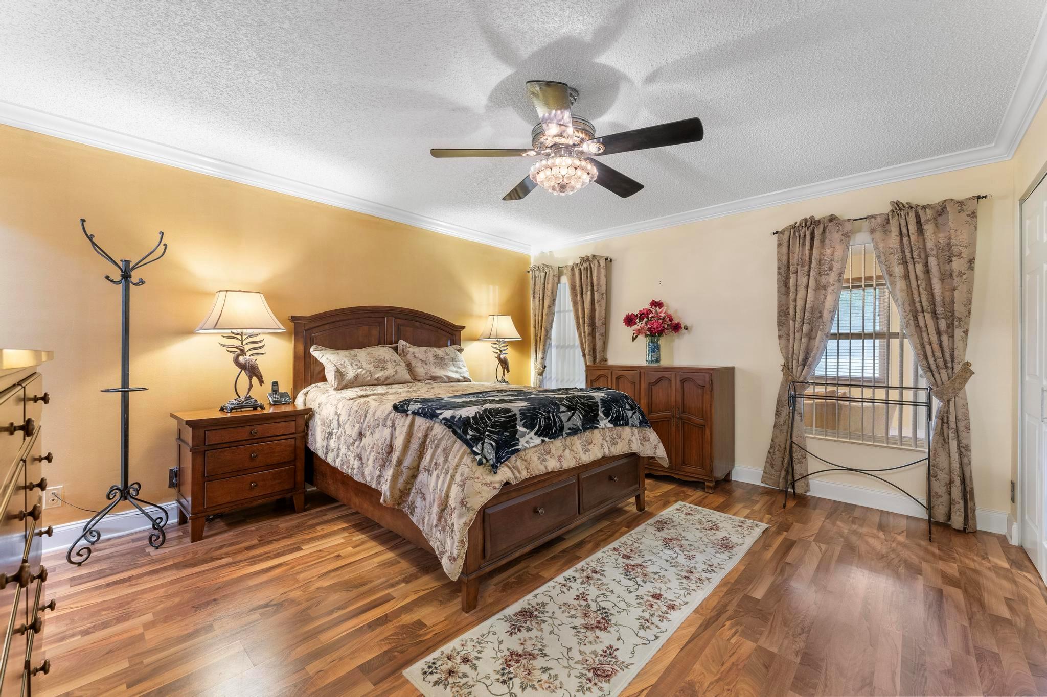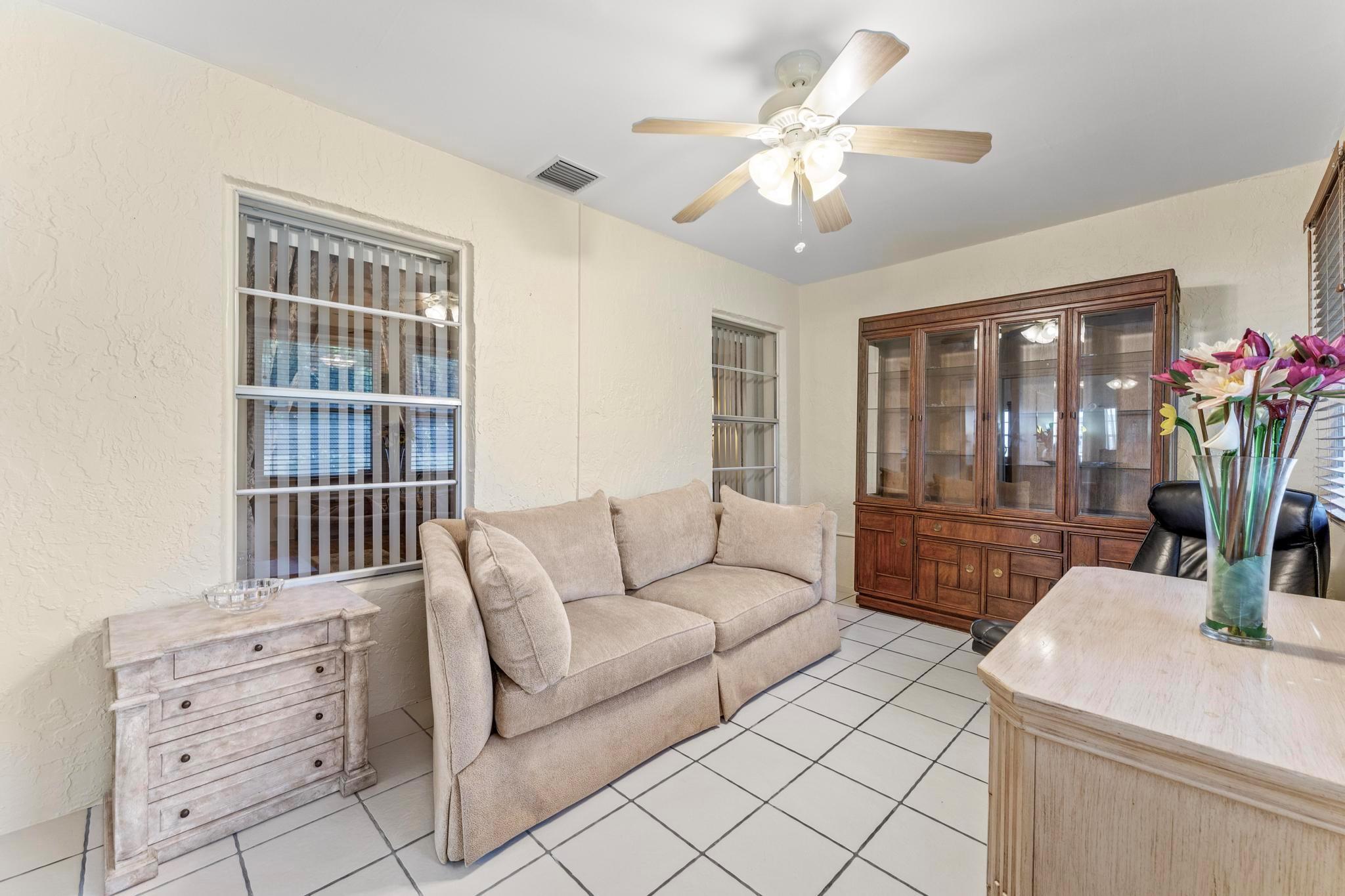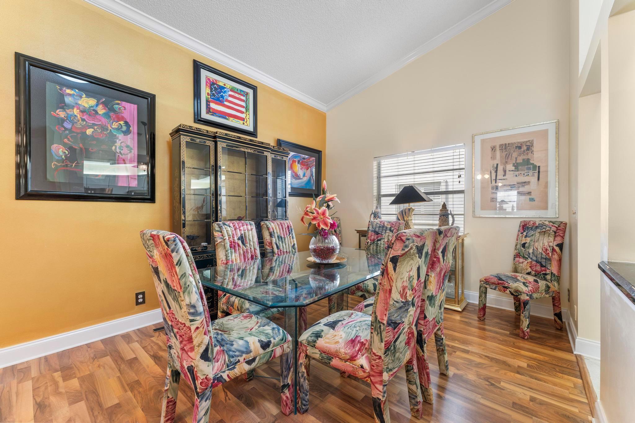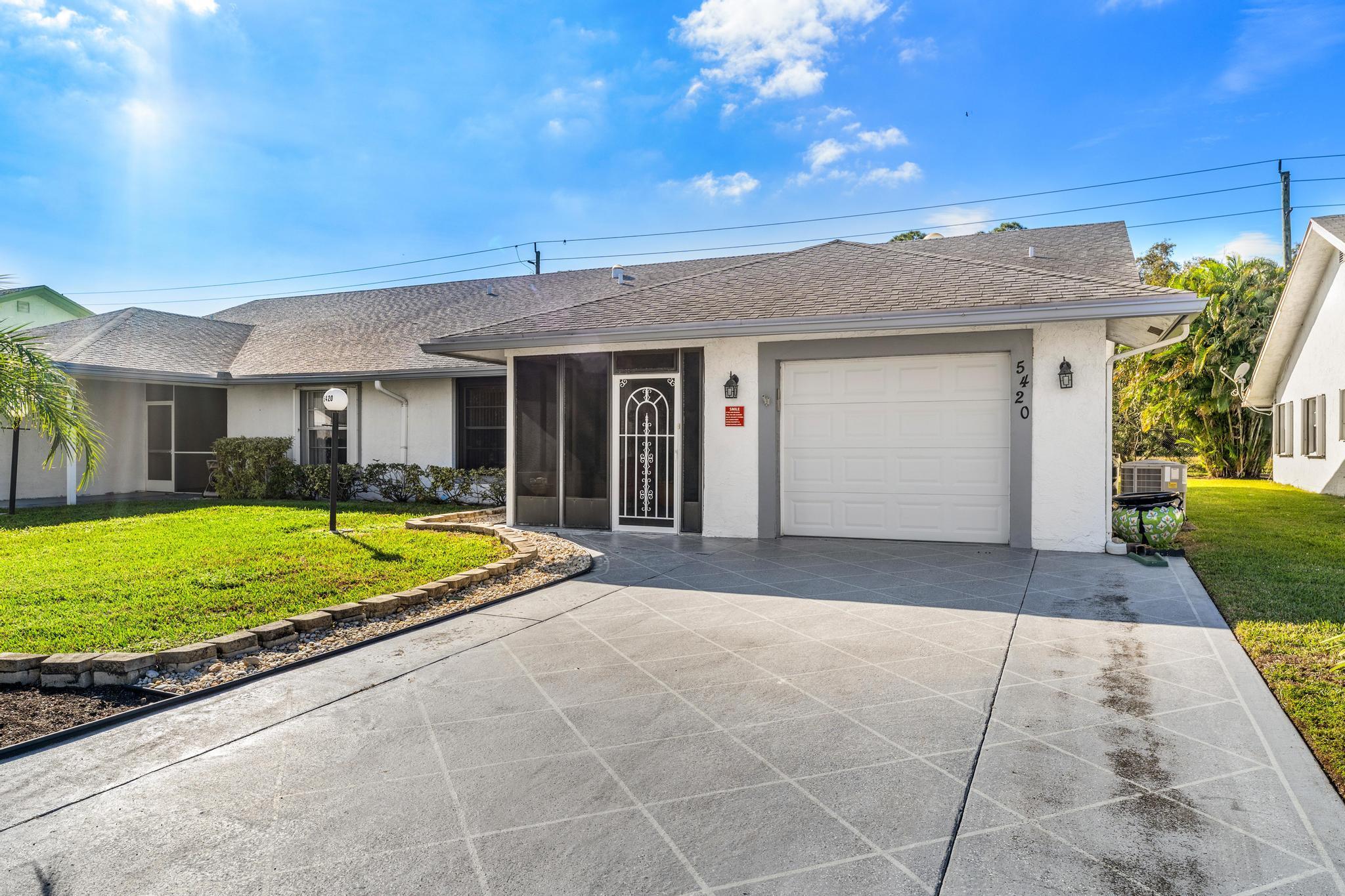 Welcome to this inviting 2 bedroom, 2 bathroom, 1 car garage home! The open floor plan features vaulted ceilings and crown molding, creating a bright and welcoming atmosphere throughout. The kitchen is equipped with white cabinetry, granite countertops, and stainless-steel appliances, along with a convenient snack bar for casual dining. The spacious primary bedroom provides plenty of room to relax and the updated primary bathroom includes a spacious shower for added convenience. Both bathrooms have been renovated with modern vanities and granite countertops. Additional living areas include a cozy family room, a sunroom for extra relaxation and a screened-in porch for outdoor enjoyment. This home offers the space and features you need for easy living.