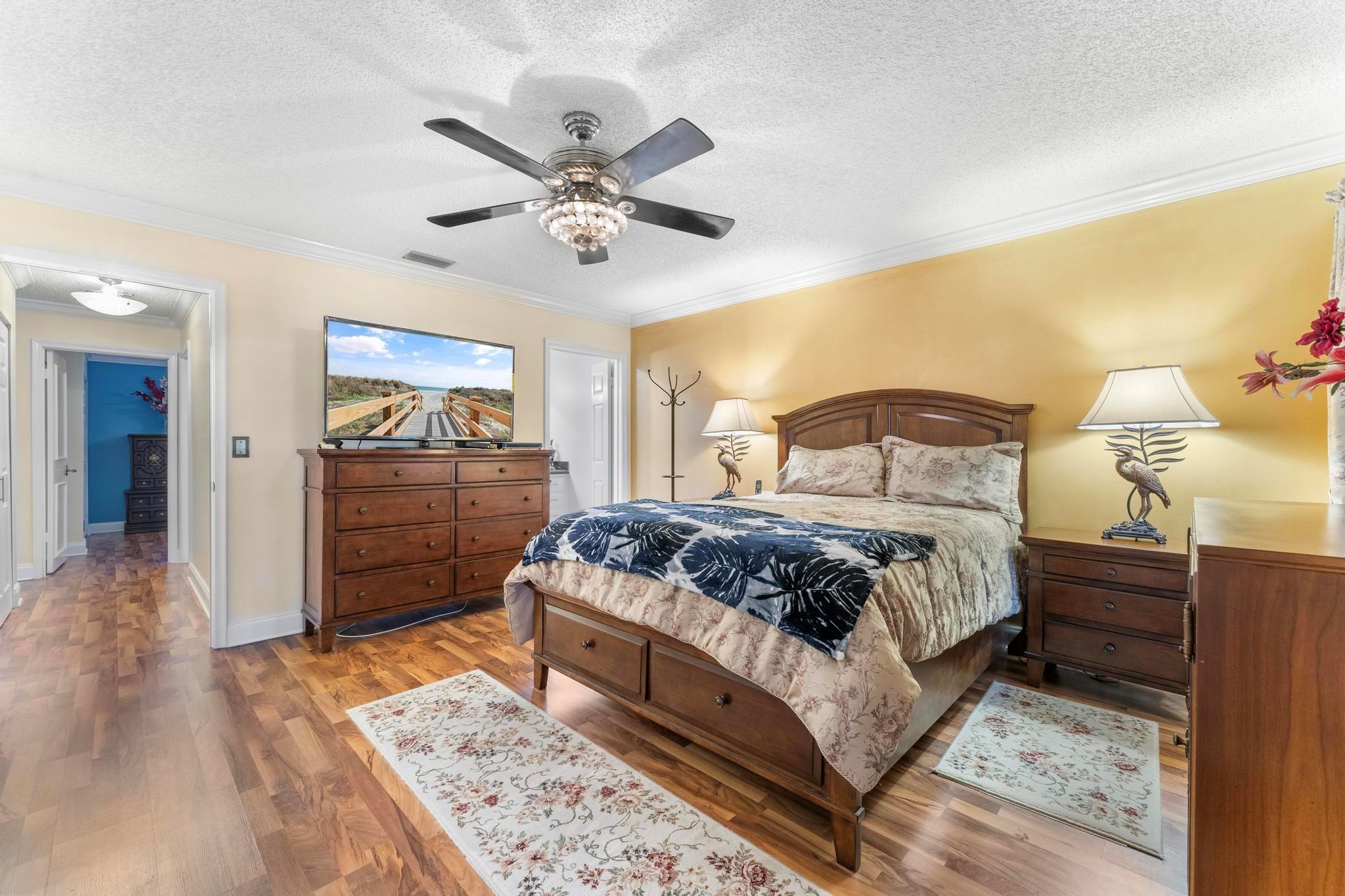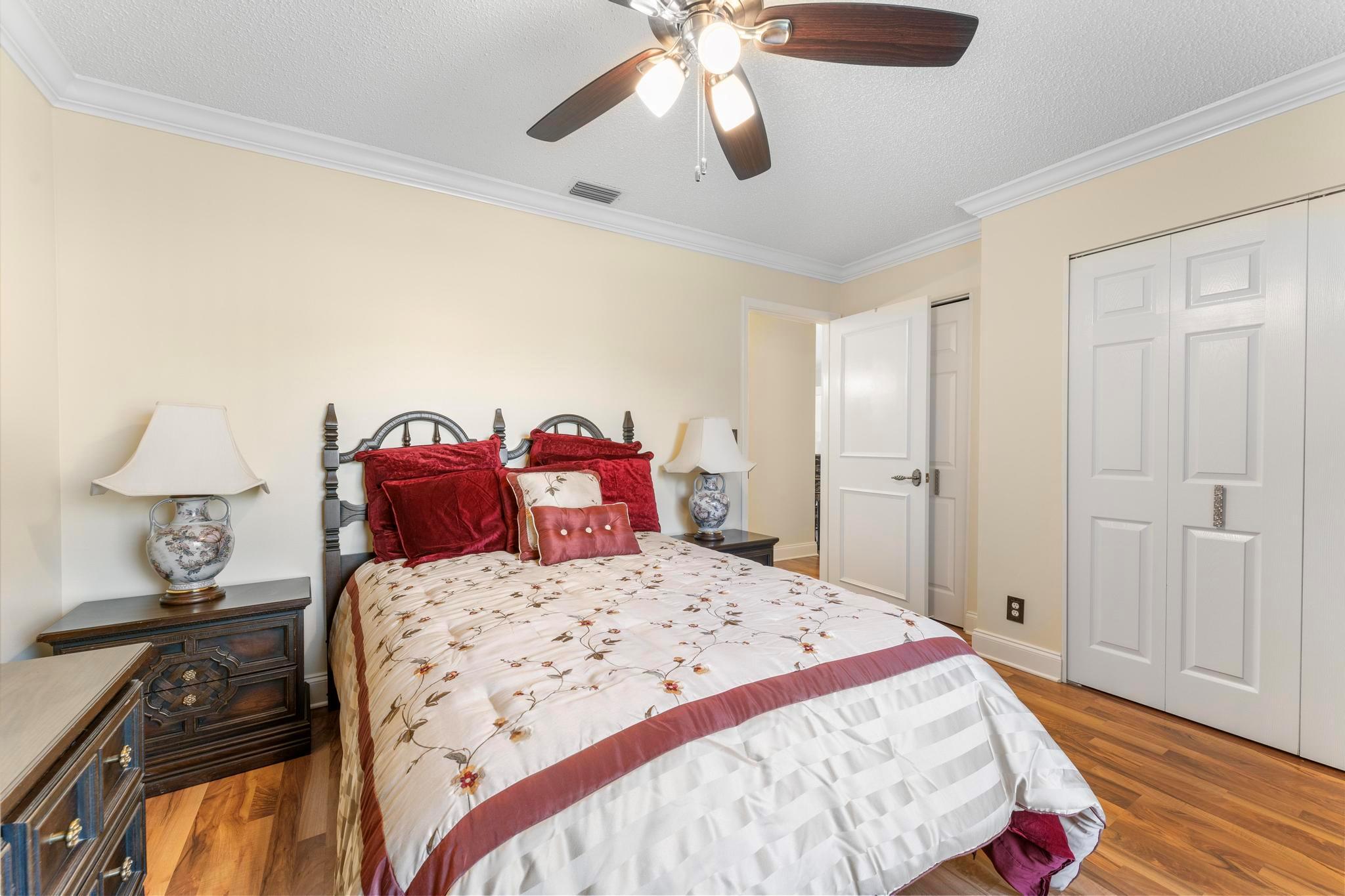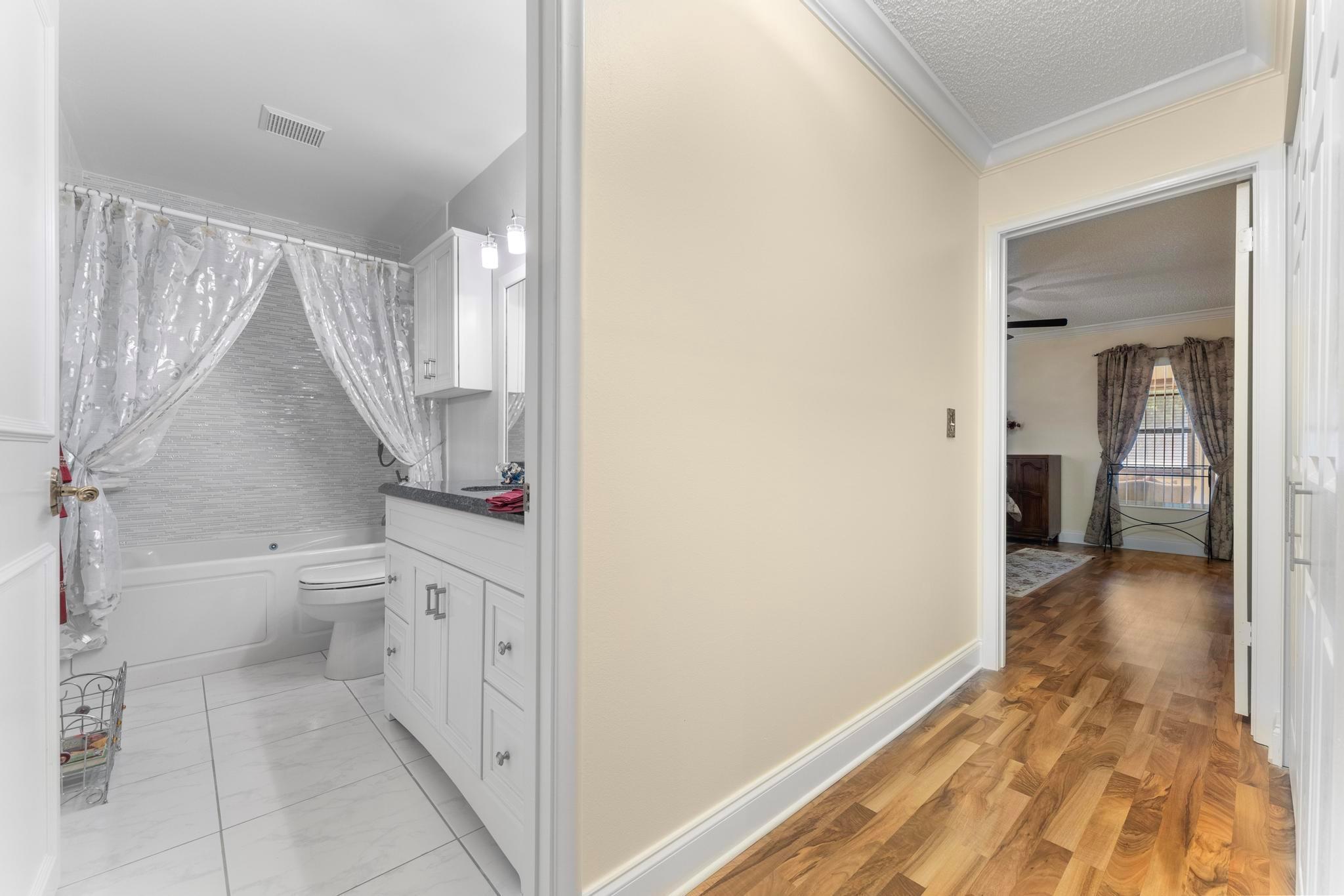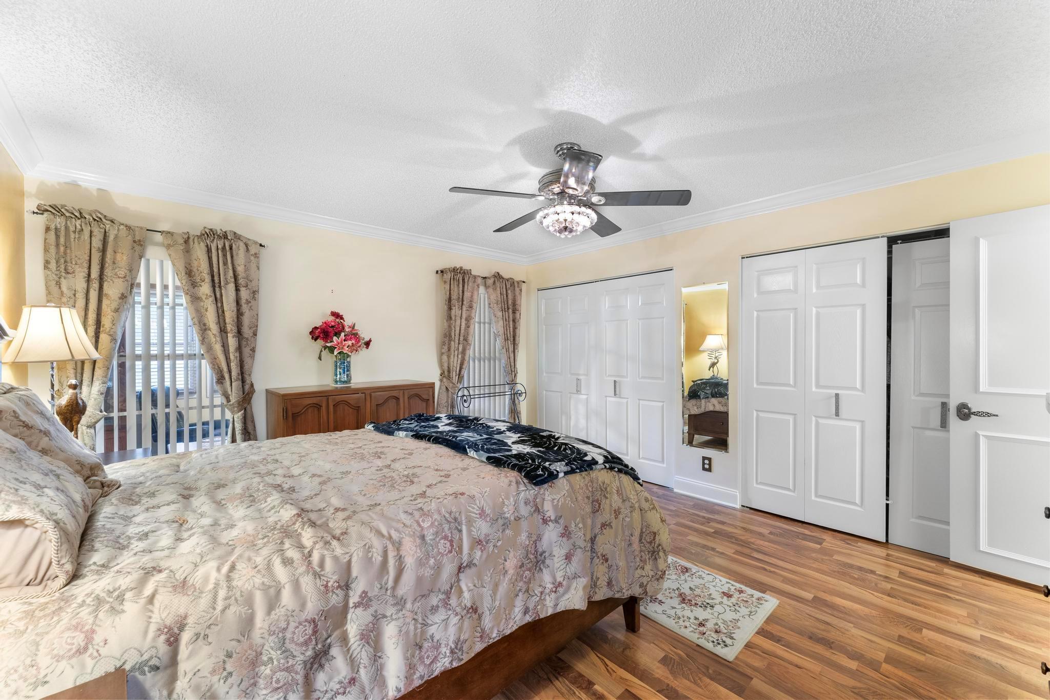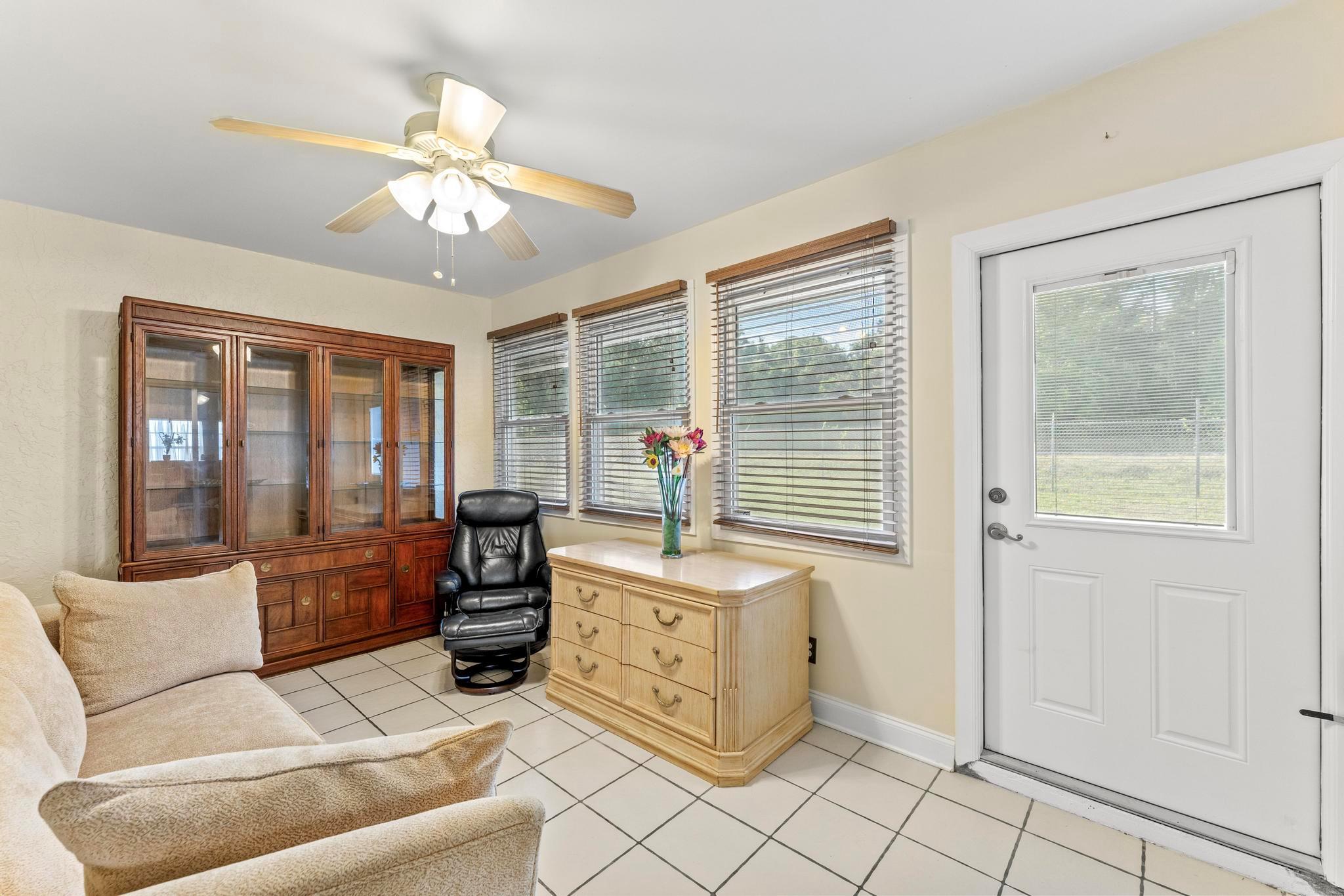 Welcome to this inviting 2 bedroom, 2 bathroom, 1 car garage home! The open floor plan features vaulted ceilings and crown molding, creating a bright and welcoming atmosphere throughout. The kitchen is equipped with white cabinetry, granite countertops, and stainless-steel appliances, along with a convenient snack bar for casual dining. The spacious primary bedroom provides plenty of room to relax and the updated primary bathroom includes a spacious shower for added convenience. Both bathrooms have been renovated with modern vanities and granite countertops. Additional living areas include a cozy family room, a sunroom for extra relaxation and a screened-in porch for outdoor enjoyment. This home offers the space and features you need for easy living.