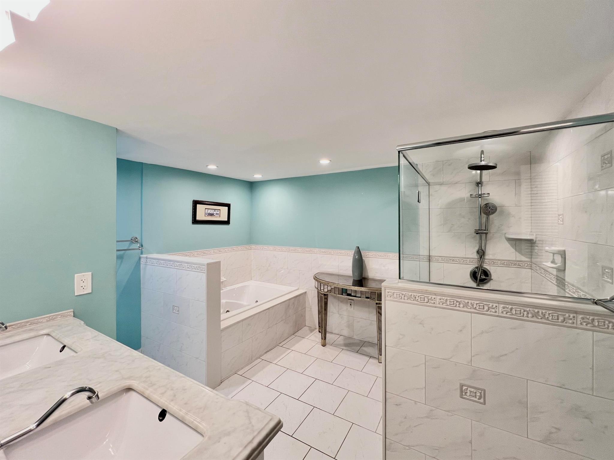 Welcome to this beautifully updated 2-bedroom, 2-bathroom, very spacious 1,650 sqft corner unit in The Barclay, where elegance meets coastal comfort. This bright home features an open layout with tile flooring throughout and seamless access to a generous wrap-around patio through impact-resistant doors, the perfect spot to enjoy the mesmerizing sunsets! The modern kitchen offers granite countertops, stainless steel appliances, and a sunlit breakfast room with direct balcony access. The primary suite boasts two walk-in closets and a spa-like bathroom with double sinks, a jacuzzi tub, and a glass-enclosed shower. The second bedroom features built-in storage, French doors, and a stylishly renovated bathroom.