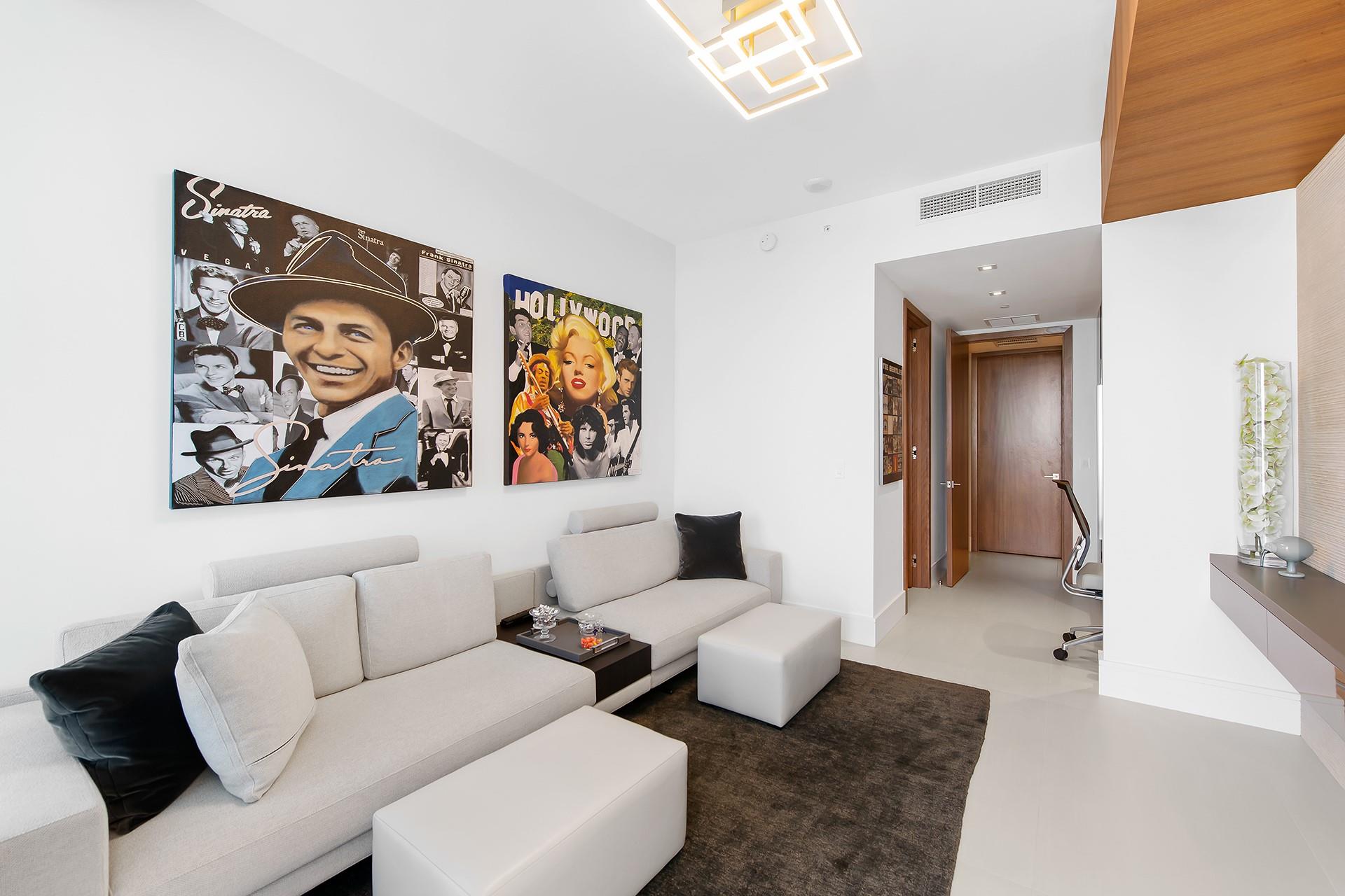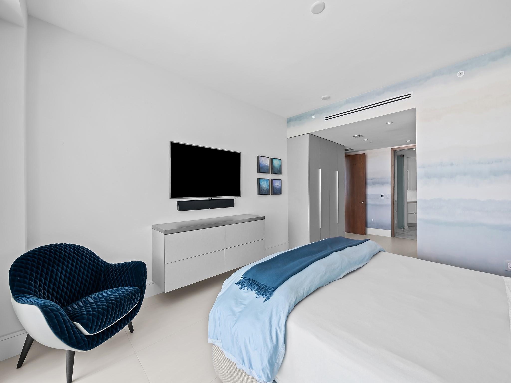One-of-a-kind junior penthouse with desired S.E. exposure and gorgeous ocean and city views. The extra-large balcony, only found on the 17th floor, allows for spacious dining and lounging—Italian porcelain tile, 60” x 30”, and custom 8’ walnut doors throughout. Automated features include a Control 4 system for lighting, shades, temperature, Apple TVs, and sound systems. The living area features LED mood lighting, a drop ceiling, and a custom wall unit. Redesigned foyer with paneling and chandelier; the kitchen offers a pullout pantry, a large island, and an under-sink reverse osmosis system. The main suite has built-in closets, dimmer switches, a custom dresser in the bathroom, a custom storage cabinet with a hamper, and a Toto Nexus Toilet—5-star amenities with pool & beach service.