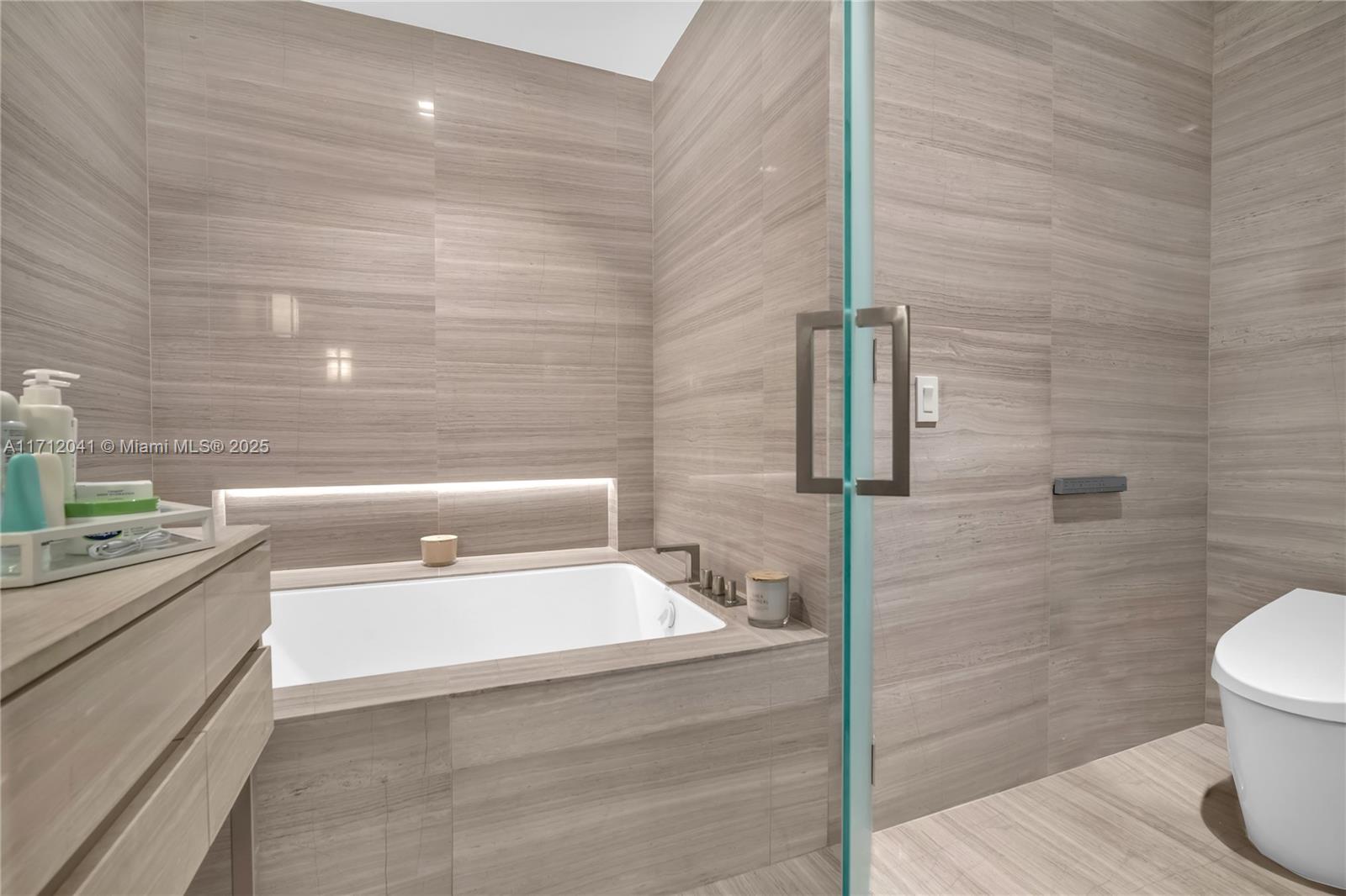 Experience the Luxury living at prestigious Residences by Armani an ocean-front unit offering unparalleled combination of elegance, comfort and breathtaking unobstructed views from the Atlantic and the Intercoastal, a 10' floor-to-ceiling windows with electric shade & blackouts , a split floor plan with 3 bed + Den + 3.5 bath. Spacious flow-thru residence, deep main-terrace facing directly to the ocean (with built-in grill) & sunset-terrace facing the bay/city. Direct ocean view from master bedroom, Elegant walk-in closets designed by Ornari in natural wood and elegant marble flooring (24" x 48"). 35,000 sqft of Style resort amenities with private restaurant, spa, pool, theater, gym, wine & cigar room, hair saloon, full beach services and kids area. Kitchen Appliances by SubZero & Wolf.